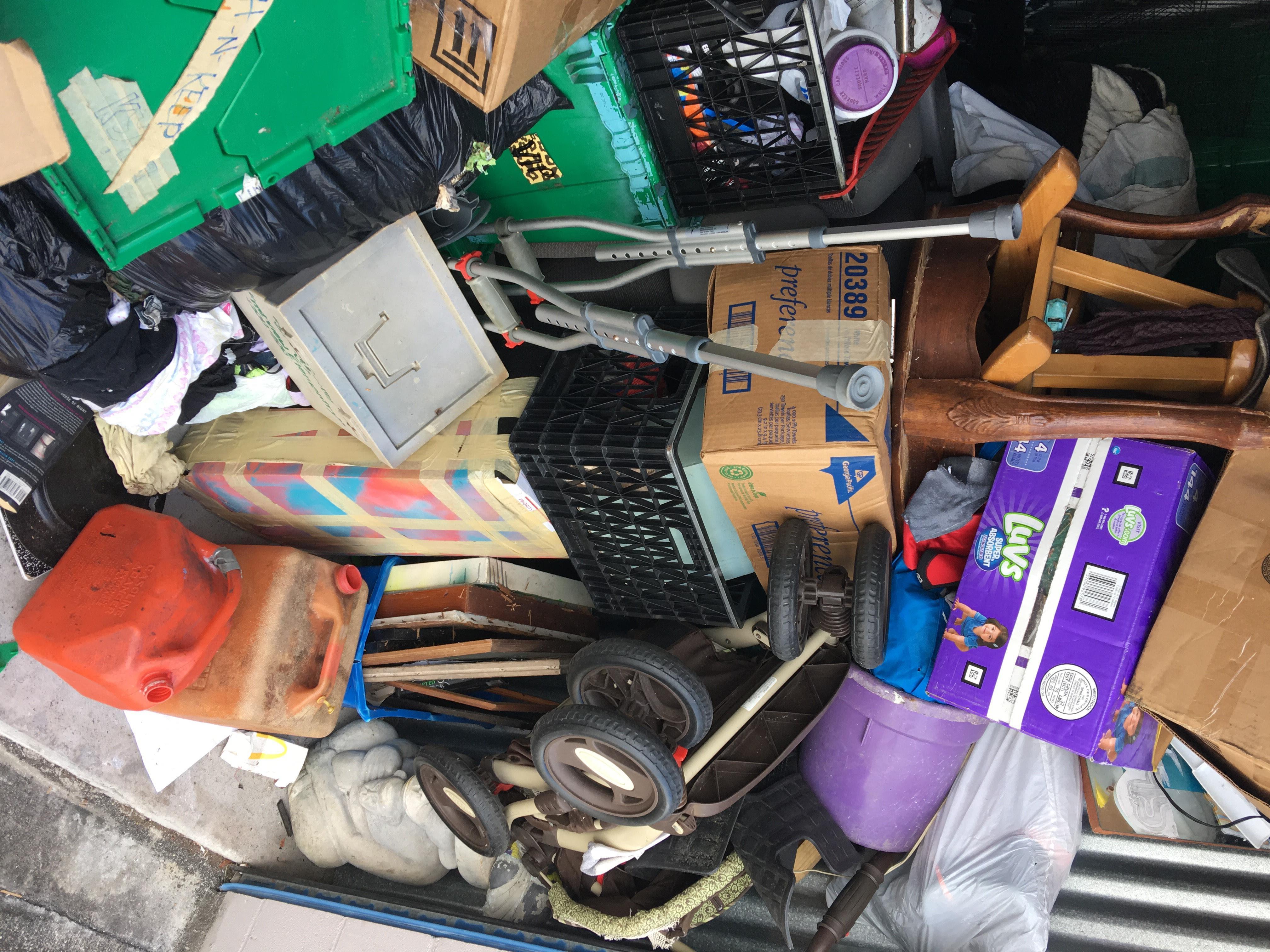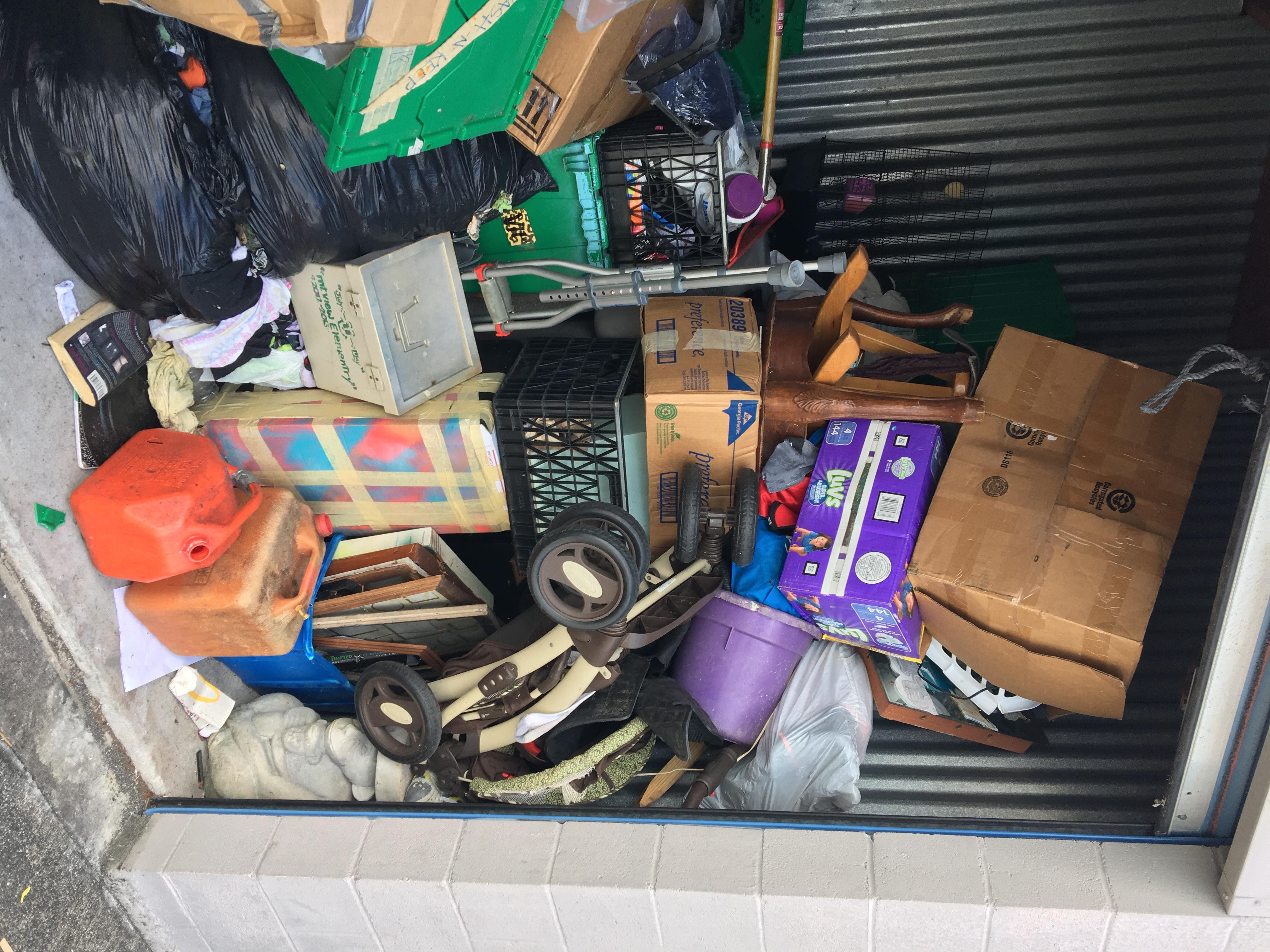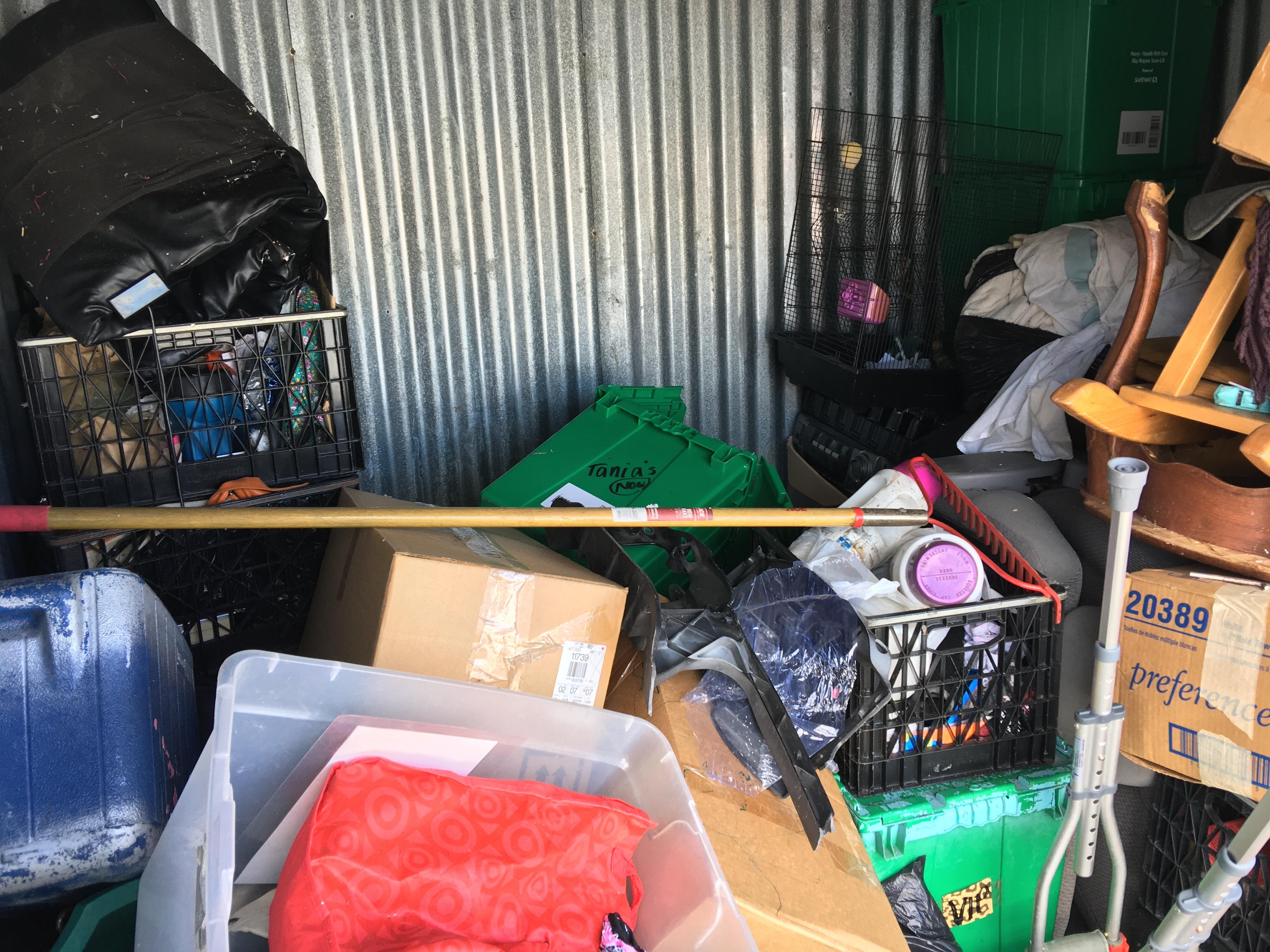 Unit appears to contain: bird cage, crutches, furniture, stroller and more!