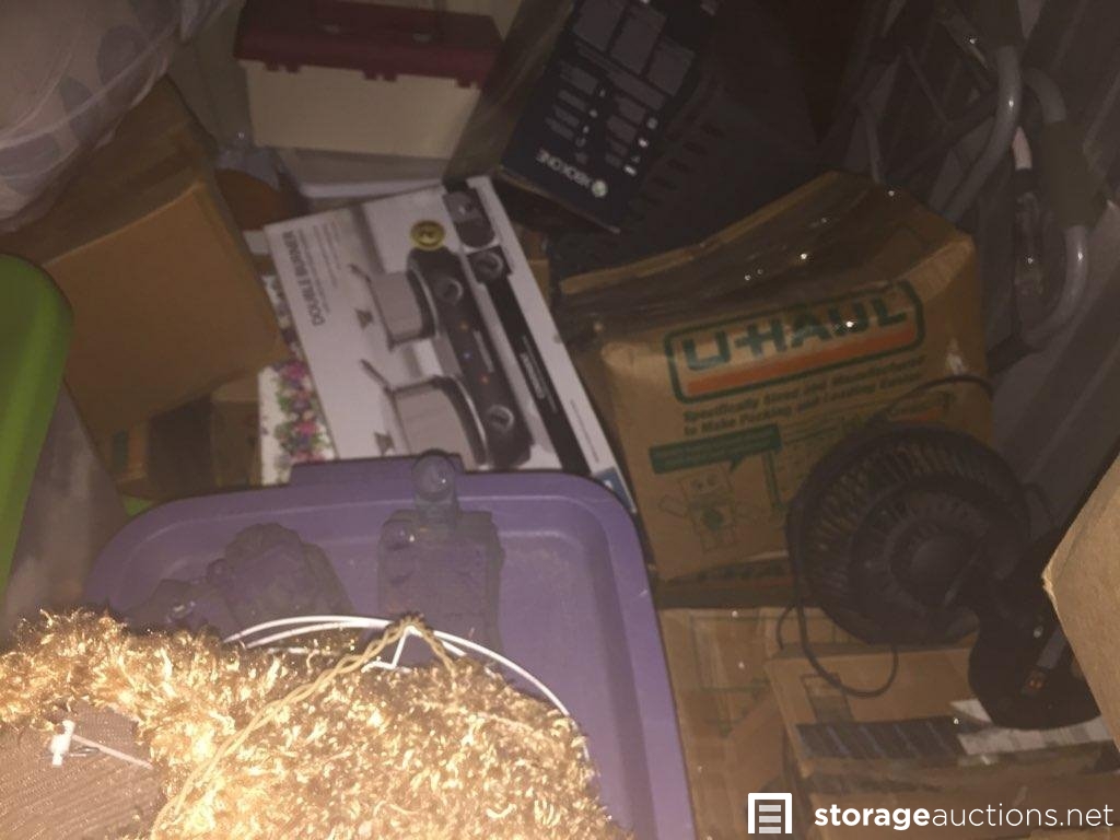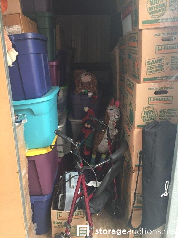 THIS UNIT IS FULL OF BOXES AND TOTES, A WALKER, CHRISTMAS ITEMS, HALLOWEEN ITEMS. YOU NEVER KNOW WHAT YOU MIGHT FIND IN A UNIT LIKE THIS!!