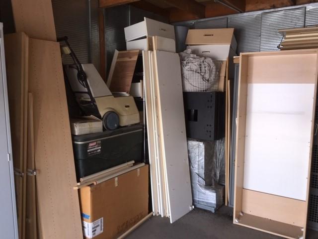 Unit appears to contain: Shelving Units, Lockers, Misc Doors, Cooler, Wood, Material