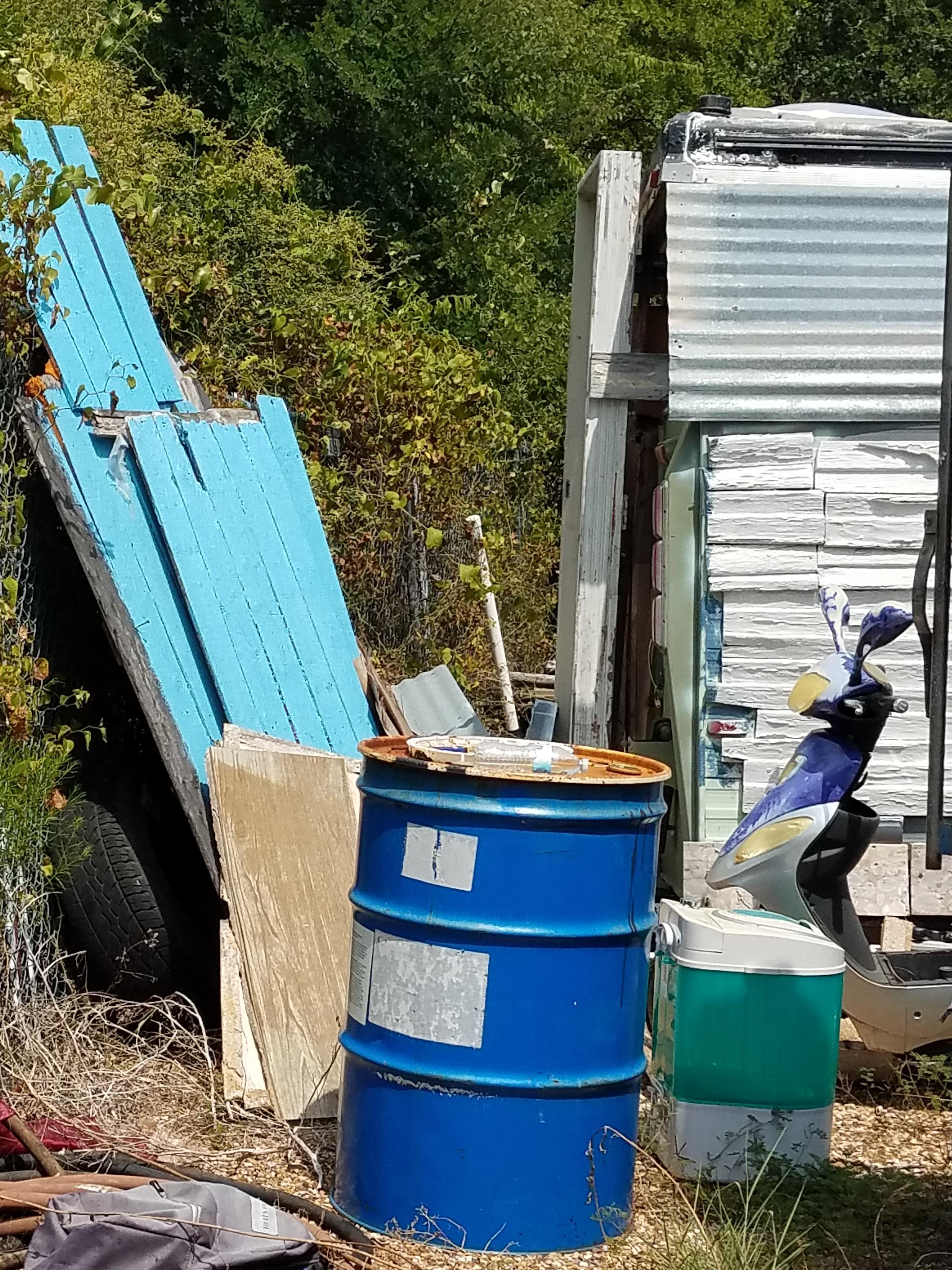 10x25 parking space. A DIY tiny home, kids moped, other building items.
