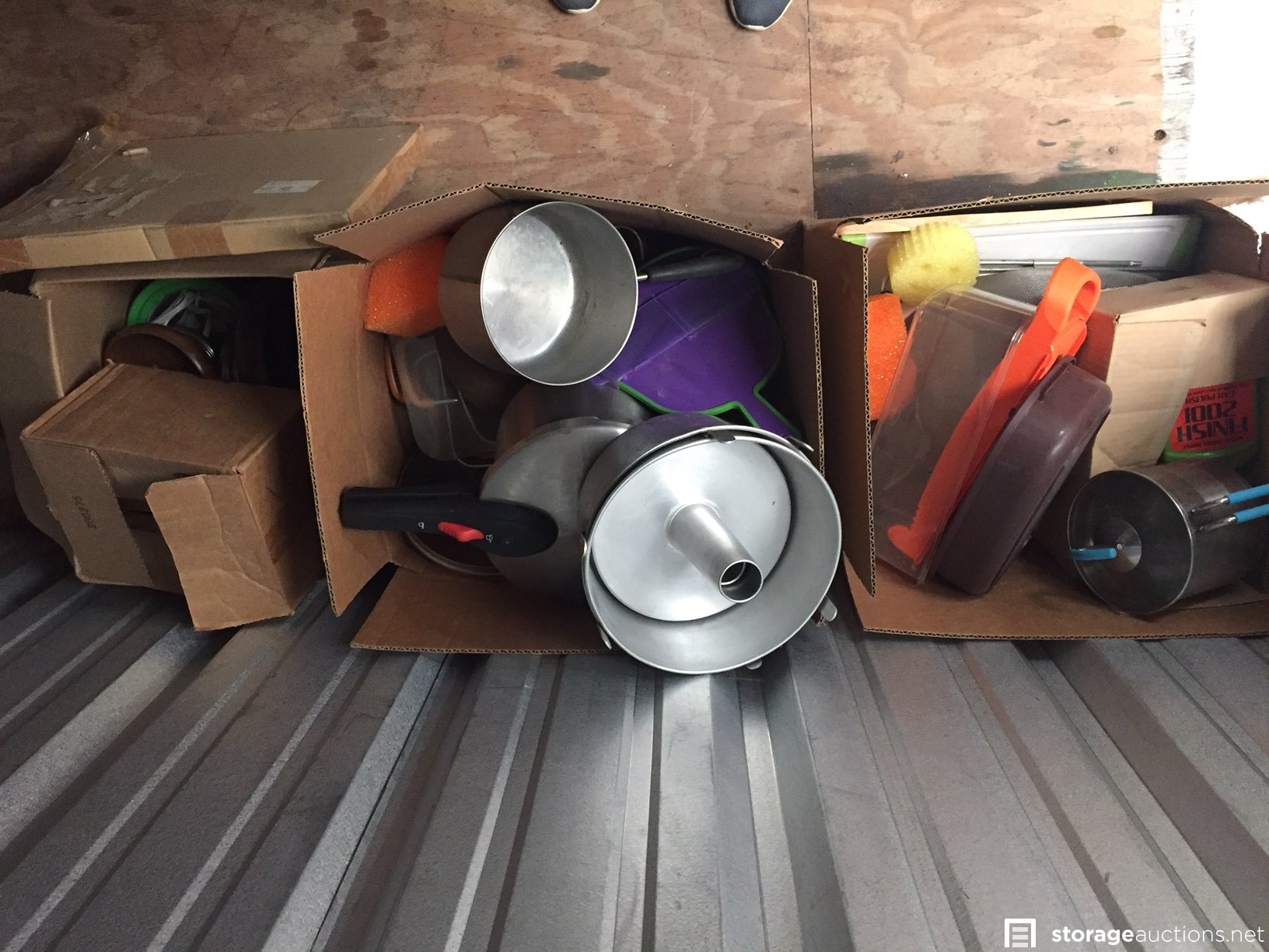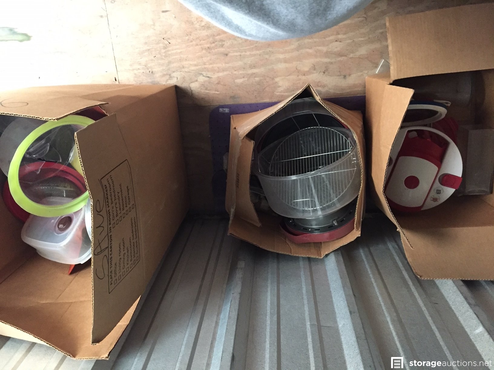 THERE IS AN UPRIGHT DEEP FREEZE, AND SEVERAL BOXES OF KITCHEN SUPPLIES!
