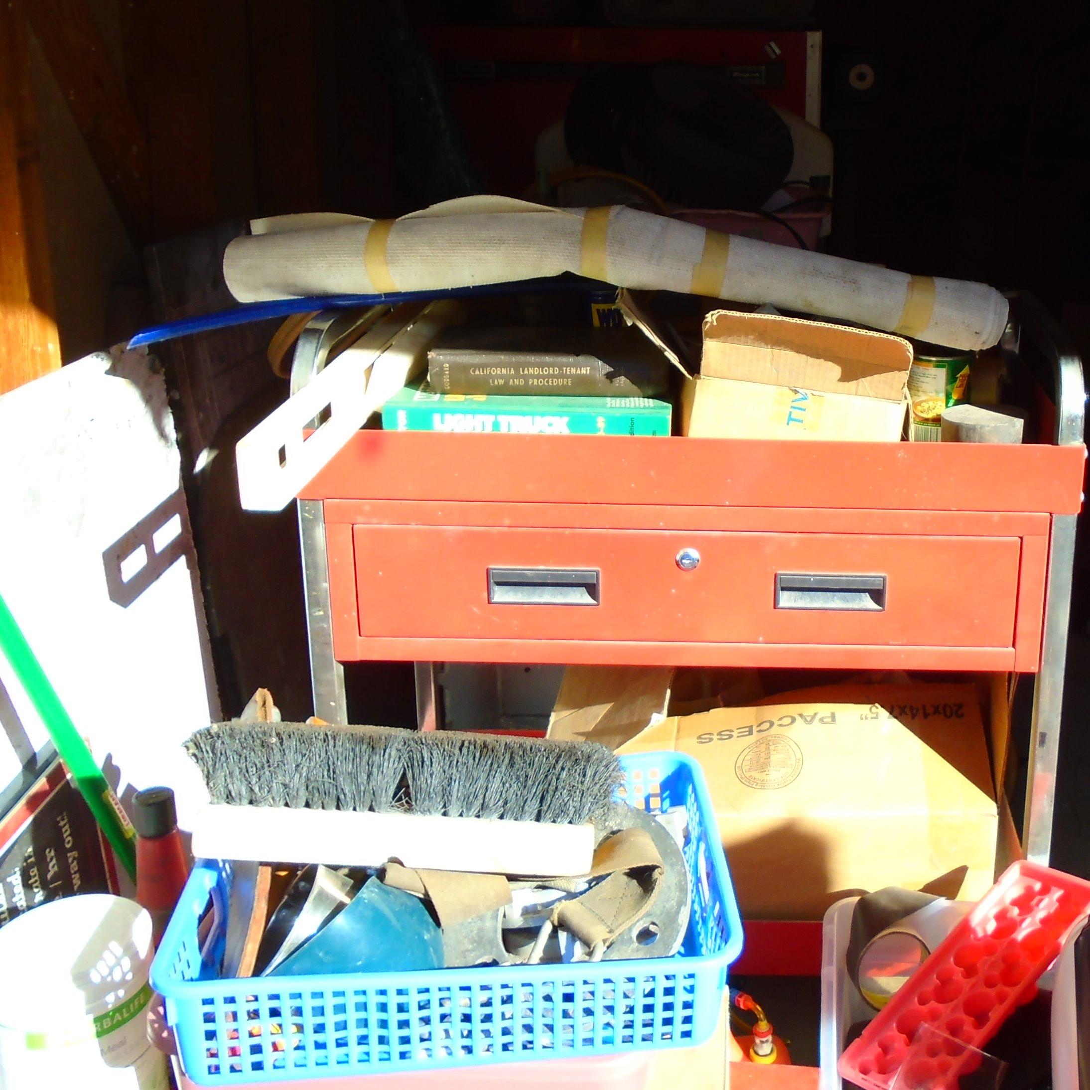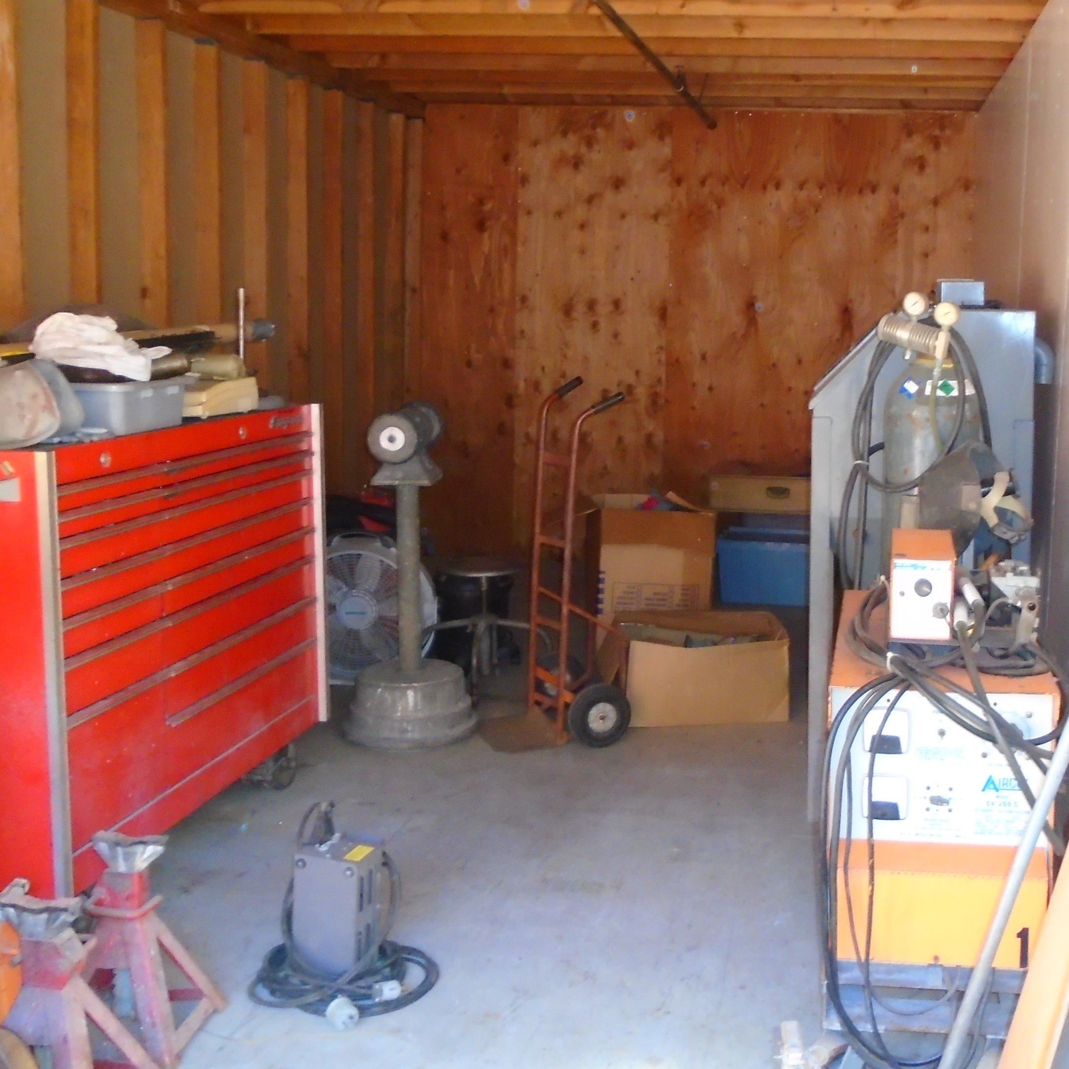 Unit appears to contain: Tool box, power tools, hand tools, boxes and totes.