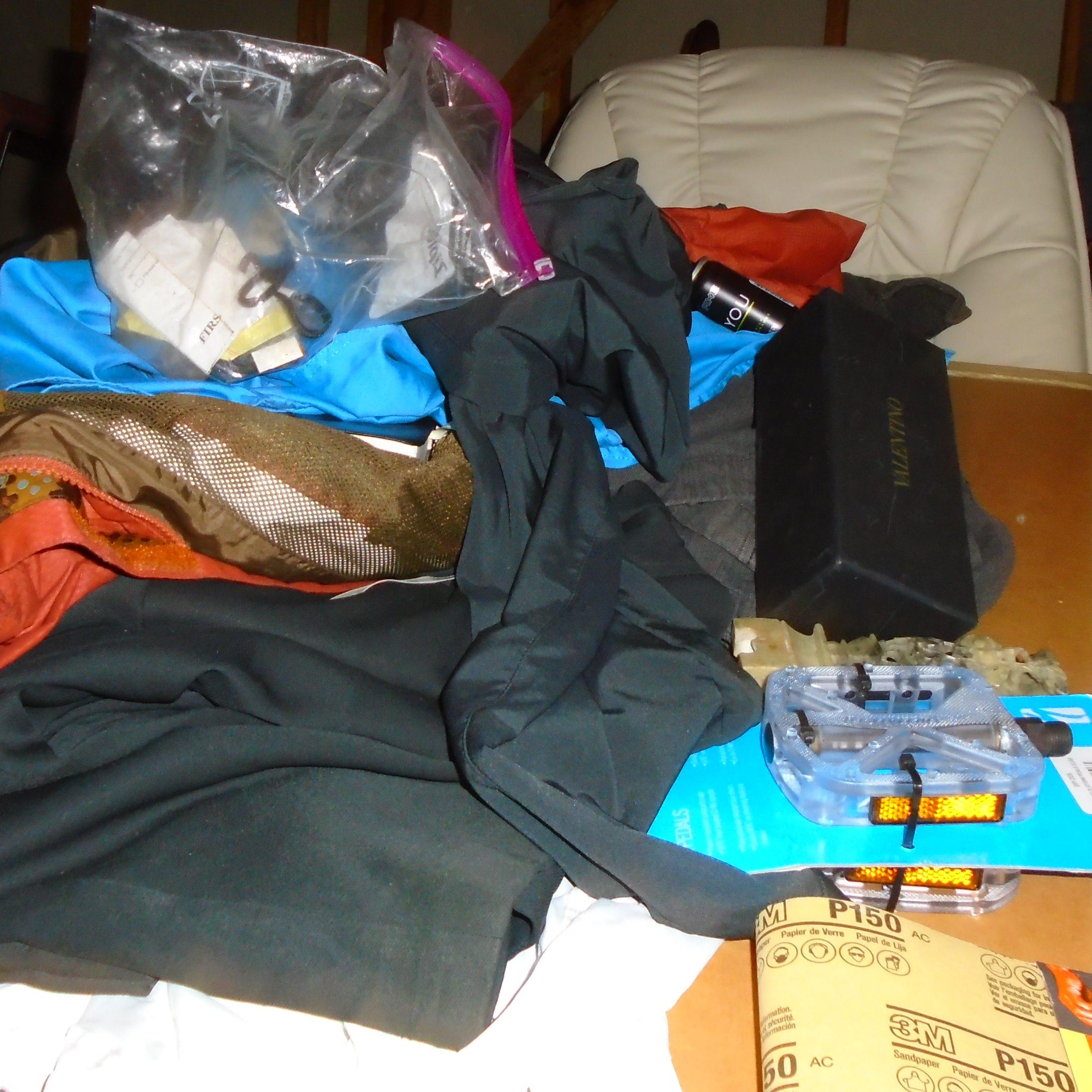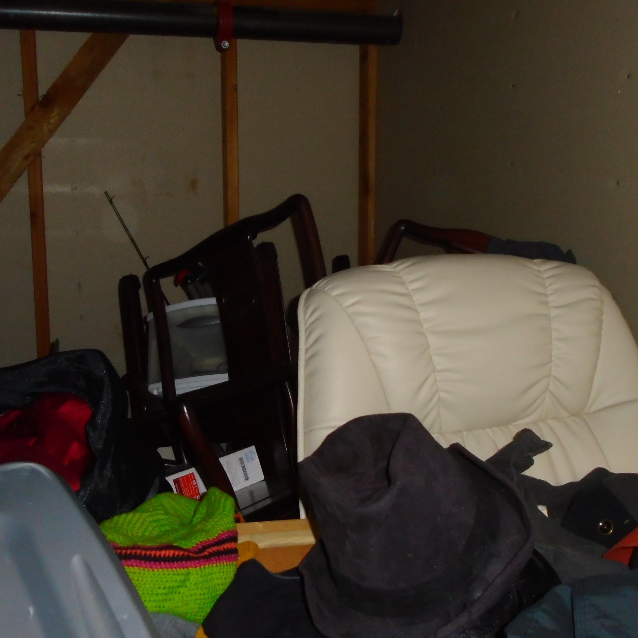Unit appears to contain: Framed Art, vacuum cleaner, bed frame, chest, coffee table, boxes and totes and bags.