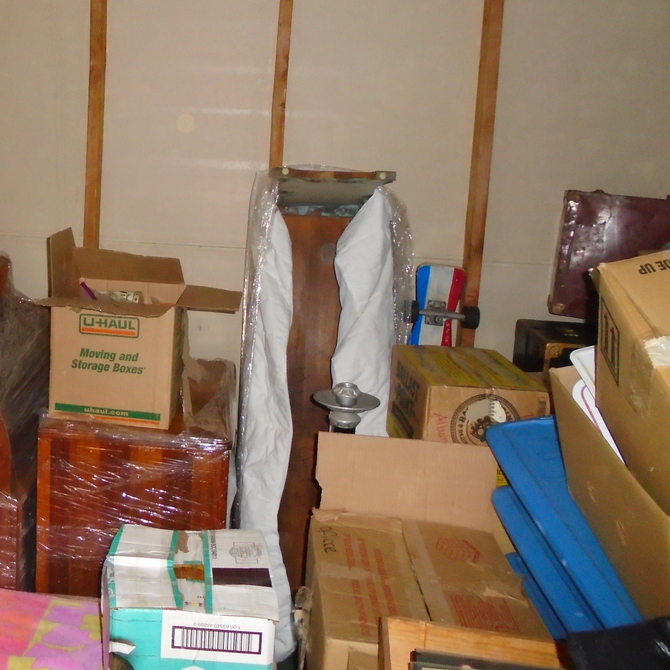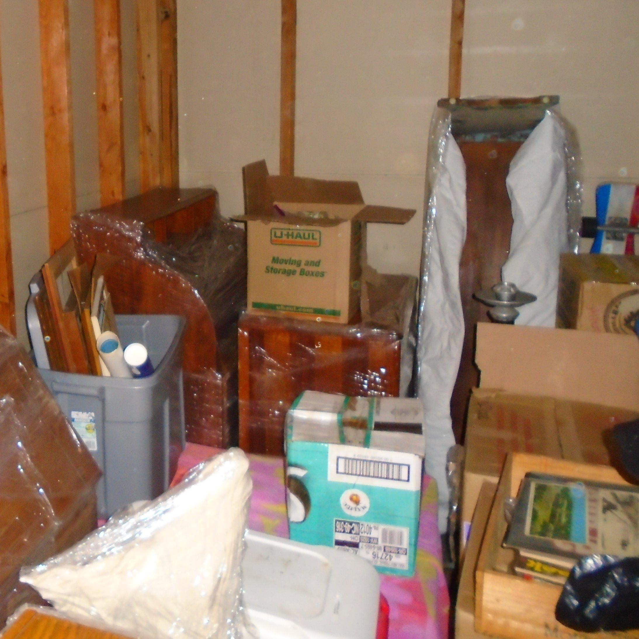 Unit appears to contain: Antique furniture, nightstands, chests, lamps, camping gear, desks, boxes and totes.