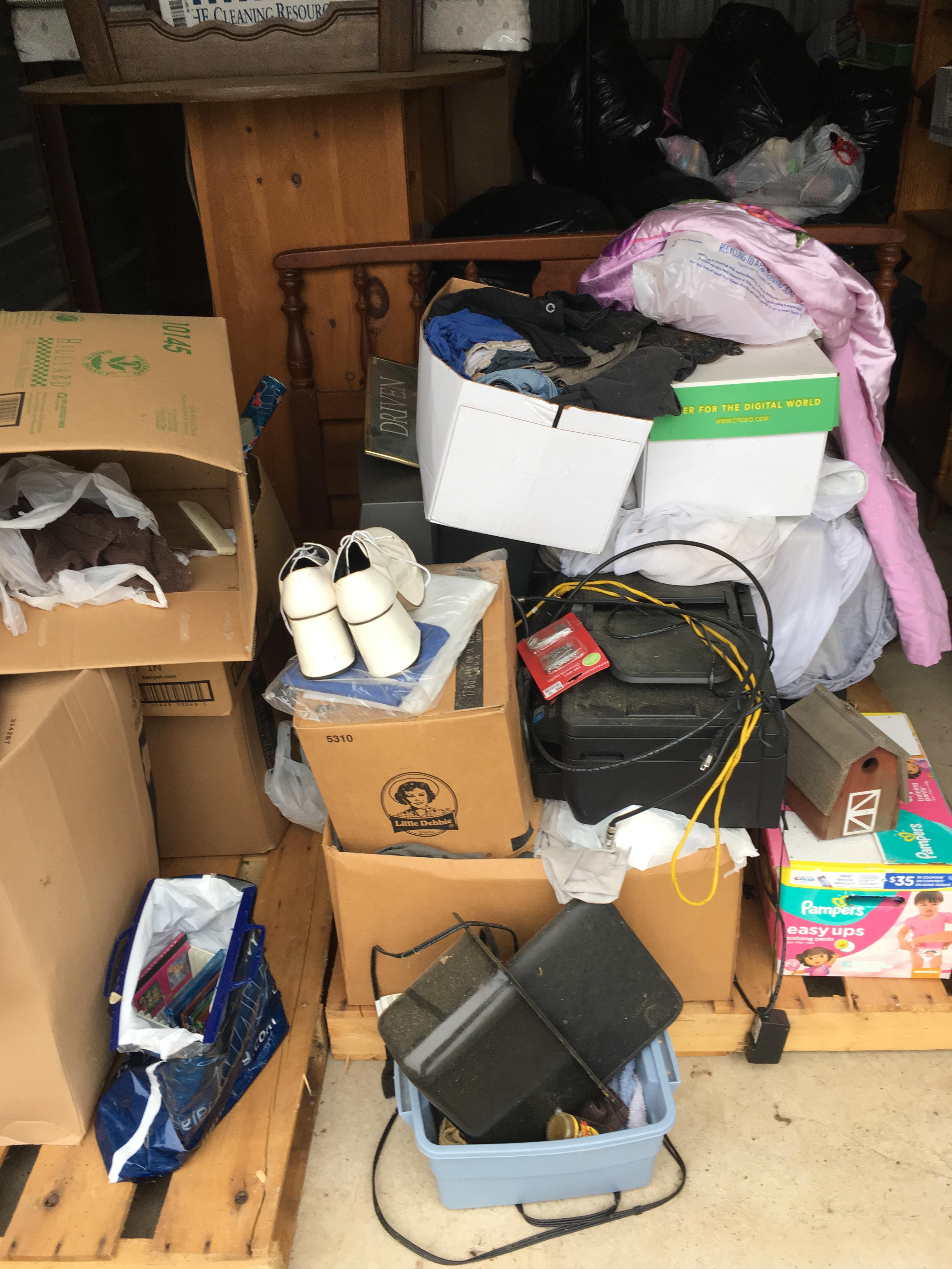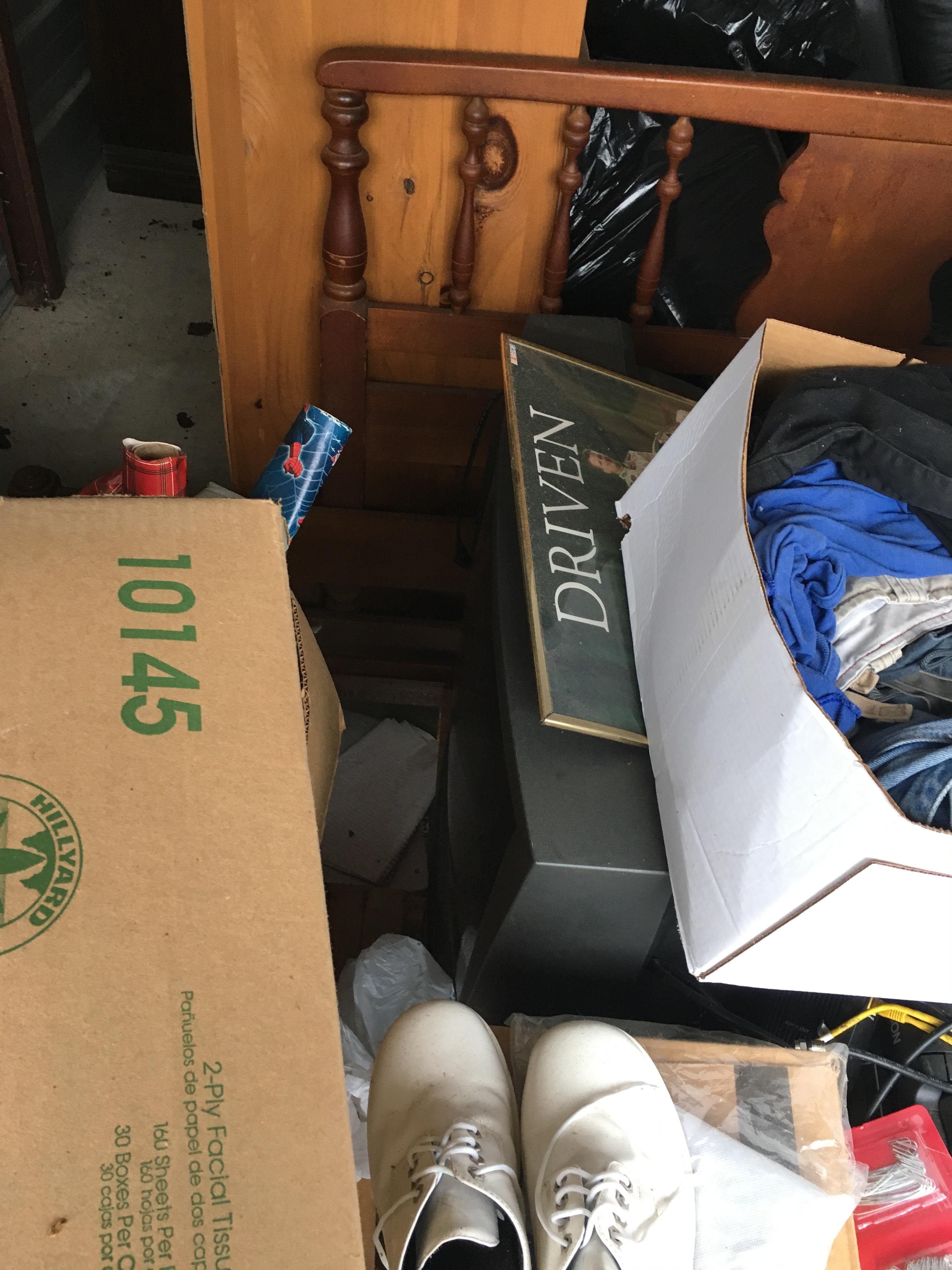 Computer equipment, Dale Earnhardt items, bed, 2 CRT TV's, Bookcase/shelving, bags of stuff