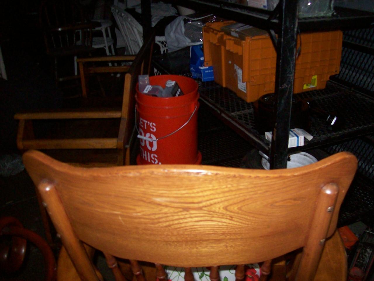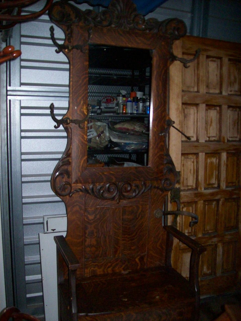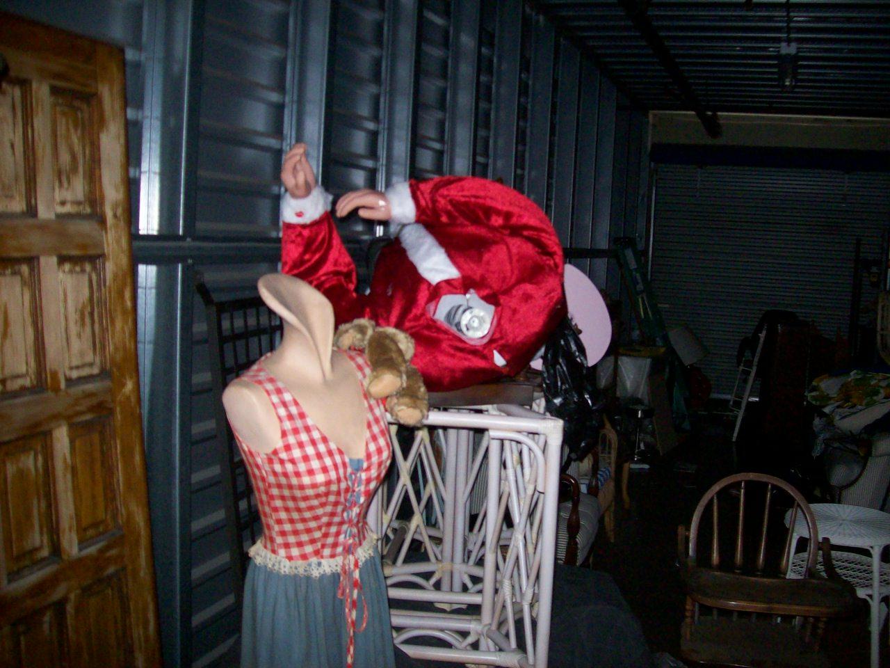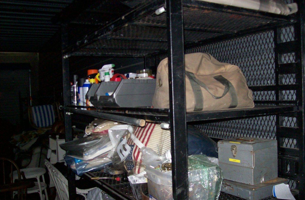 UNIT APPEARS TO CONTAIN: Heavy Duty Shelving Unit, Antique Chair w/Mirror, Mannequin, Wood Door, Chairs, Tables, Lamp, Drawer, Bags, Sofa, Tools, Ladder, Antique Dresser, Miscellaneous household items