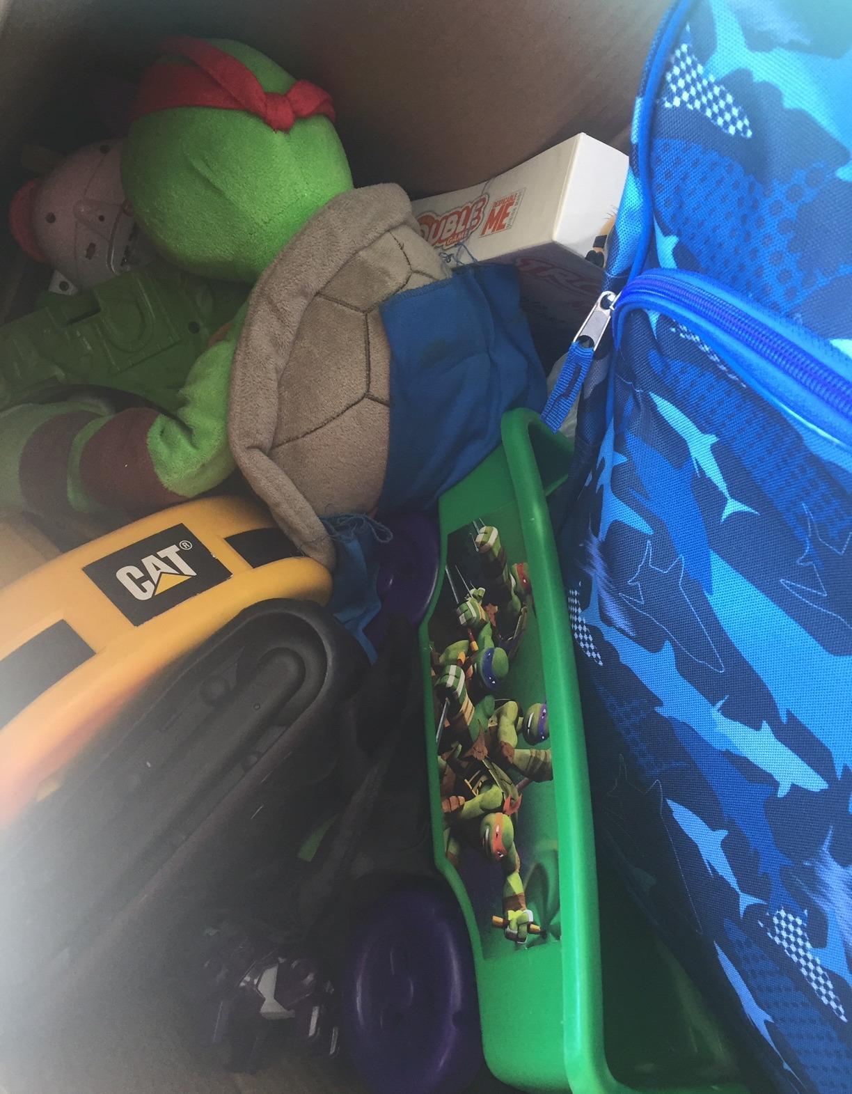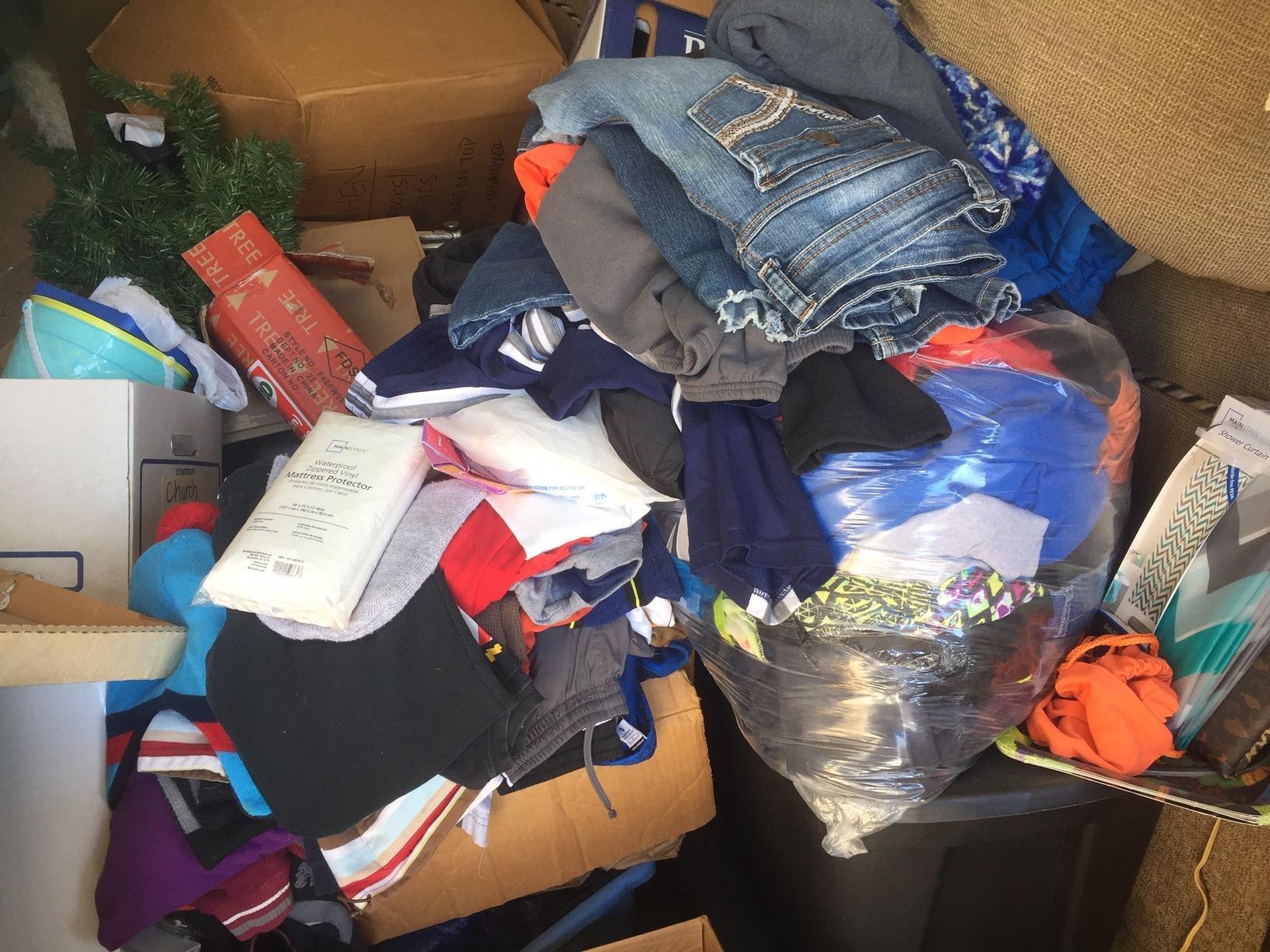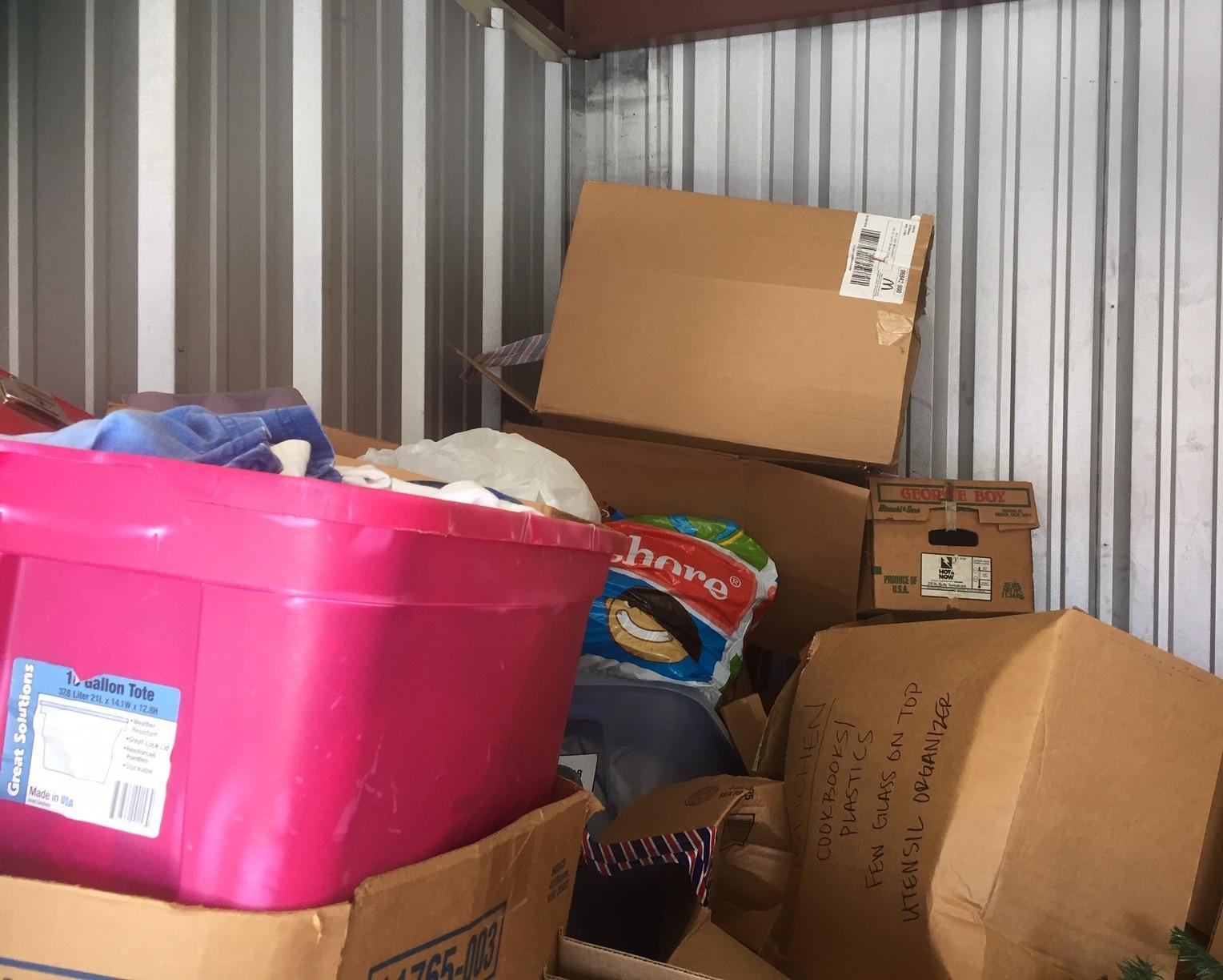 This unit has a couch and love seat with over sized pillows, lots of clothes, like new Under Armour black cleats, toys, lots of boxes with hidden treasures - who knows what you might find!
