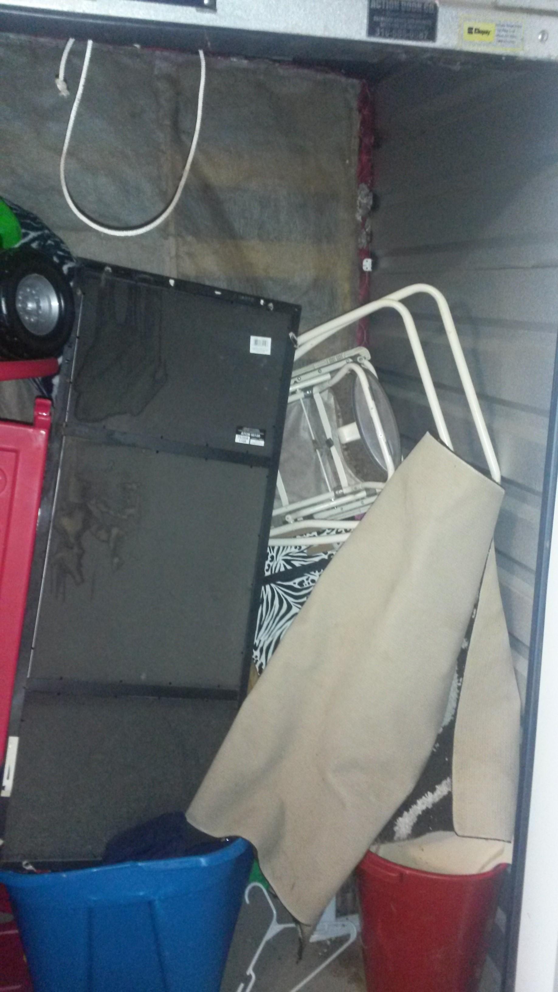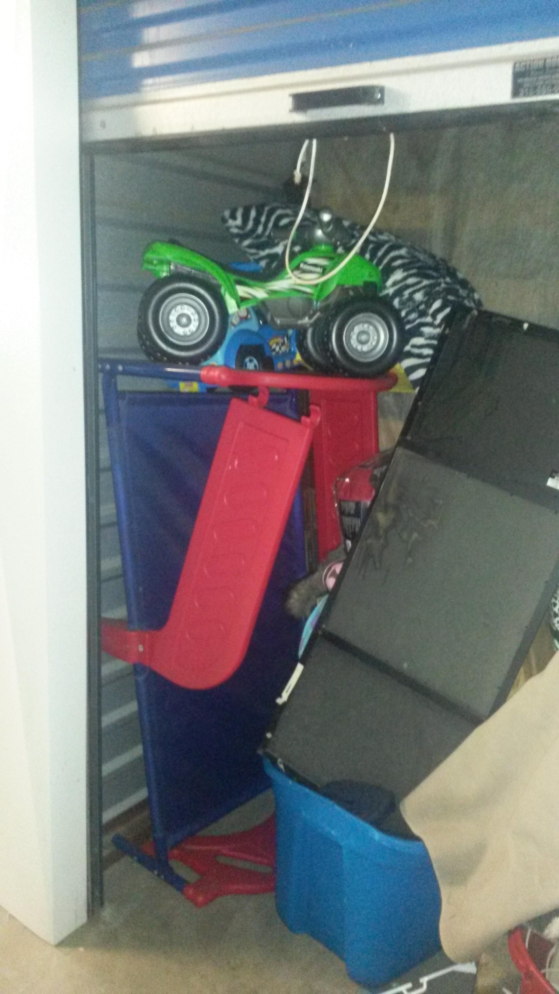 This unit appears to contain clothes, boxes kid items and other household items.