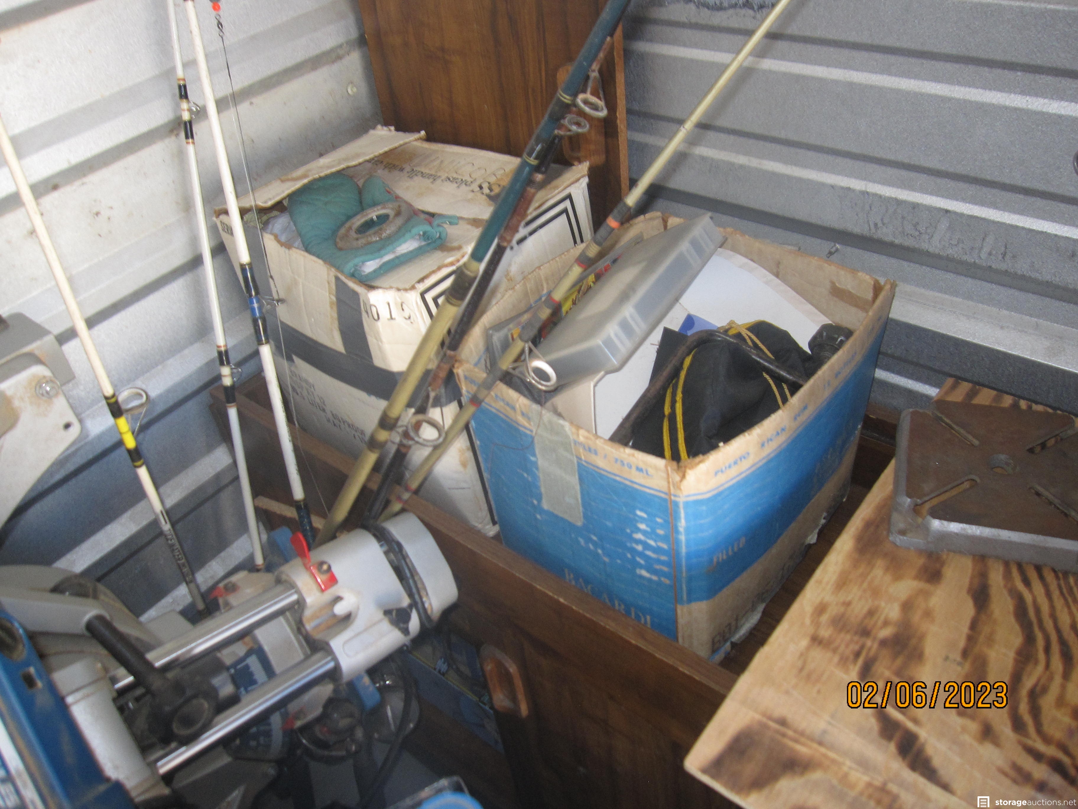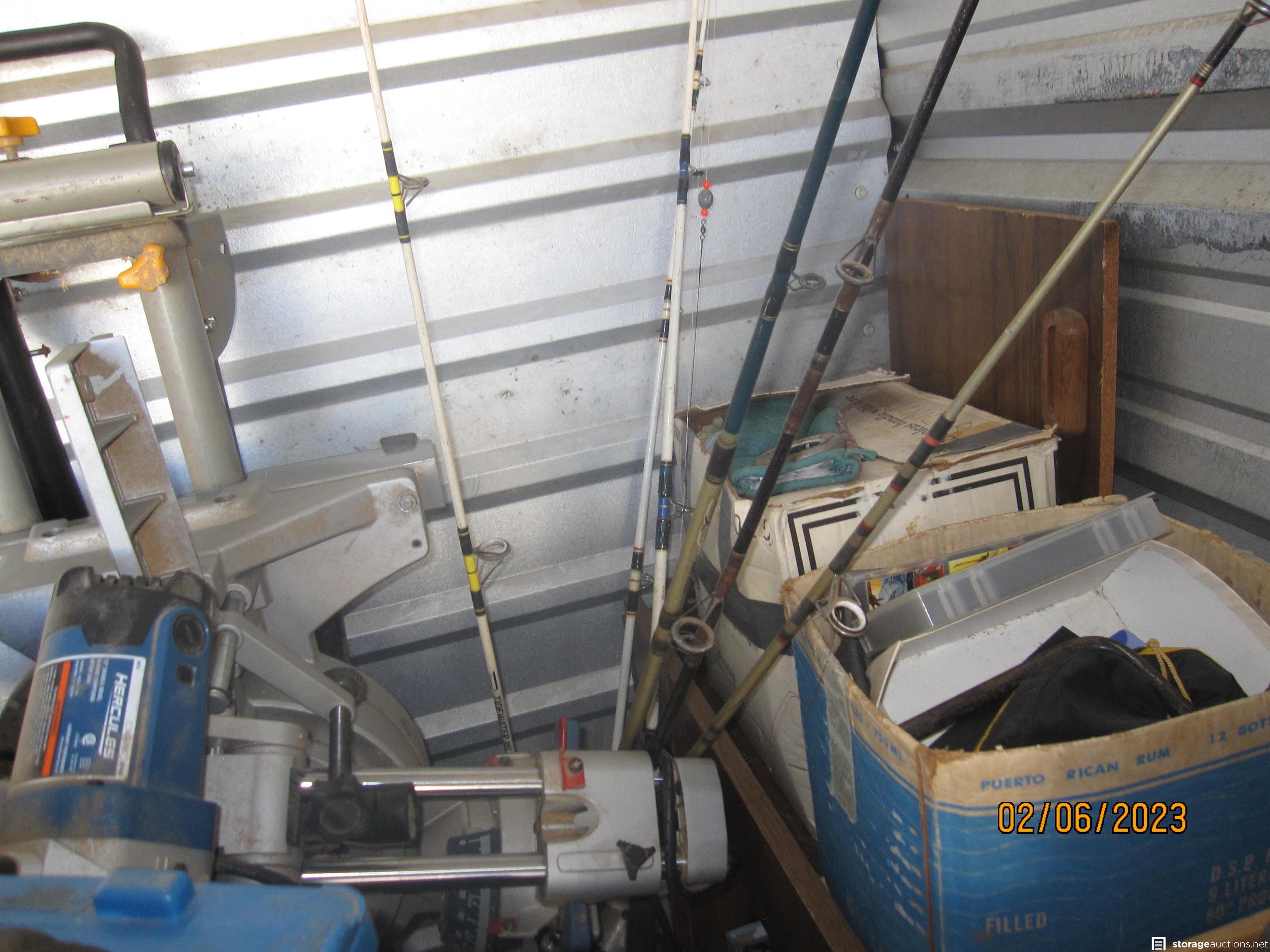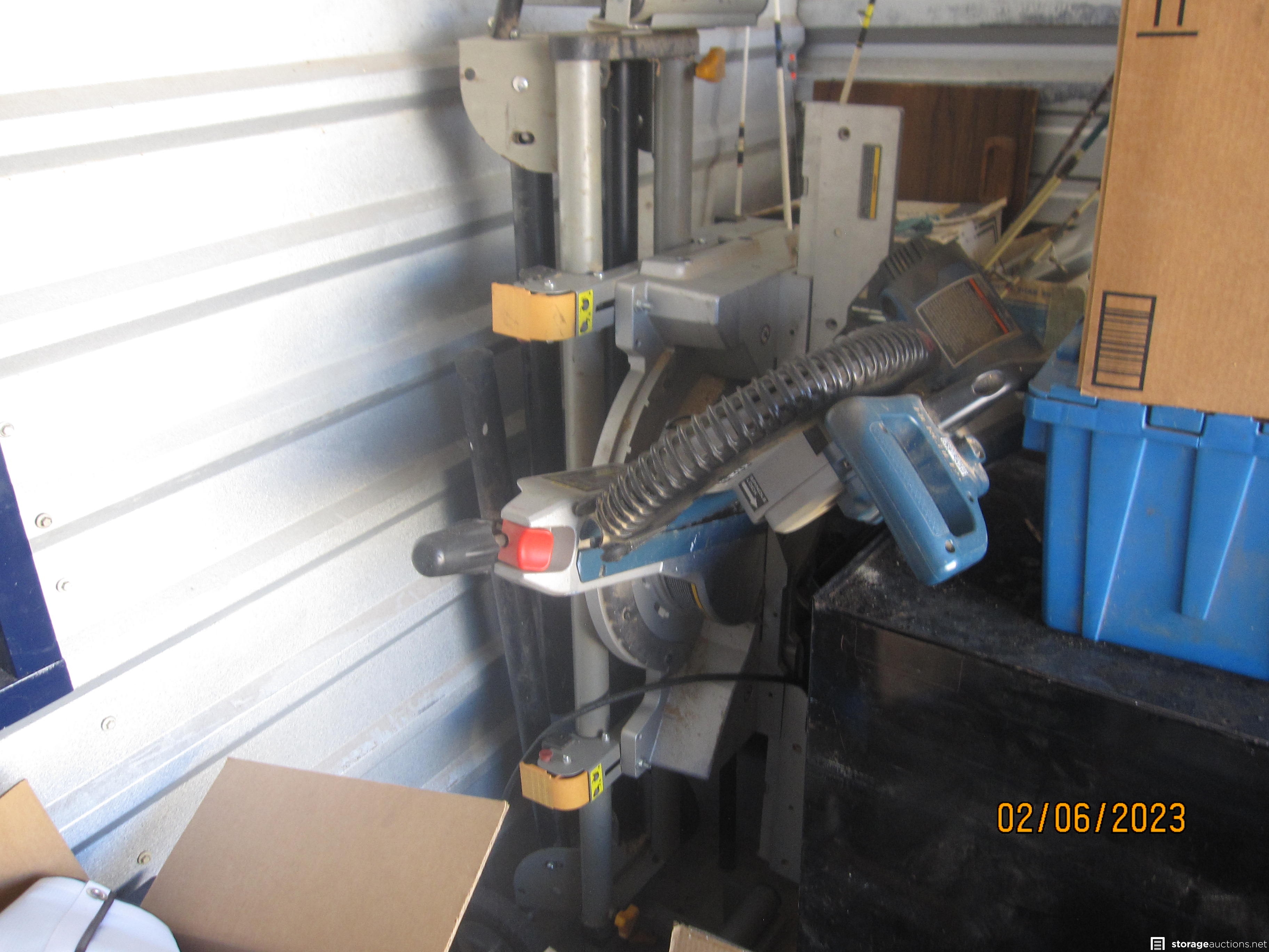 ,Mitre saw on stand, table saw, tool boxes, nice furniture and boxes, f.ishing equipment. Looks taken care of