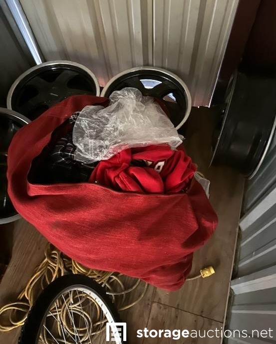 THIS UNIT HAS A NICE BICYCLE, CLOTHES, VACUUM CLEANER, AND 4 BLACK SHINY RIMS