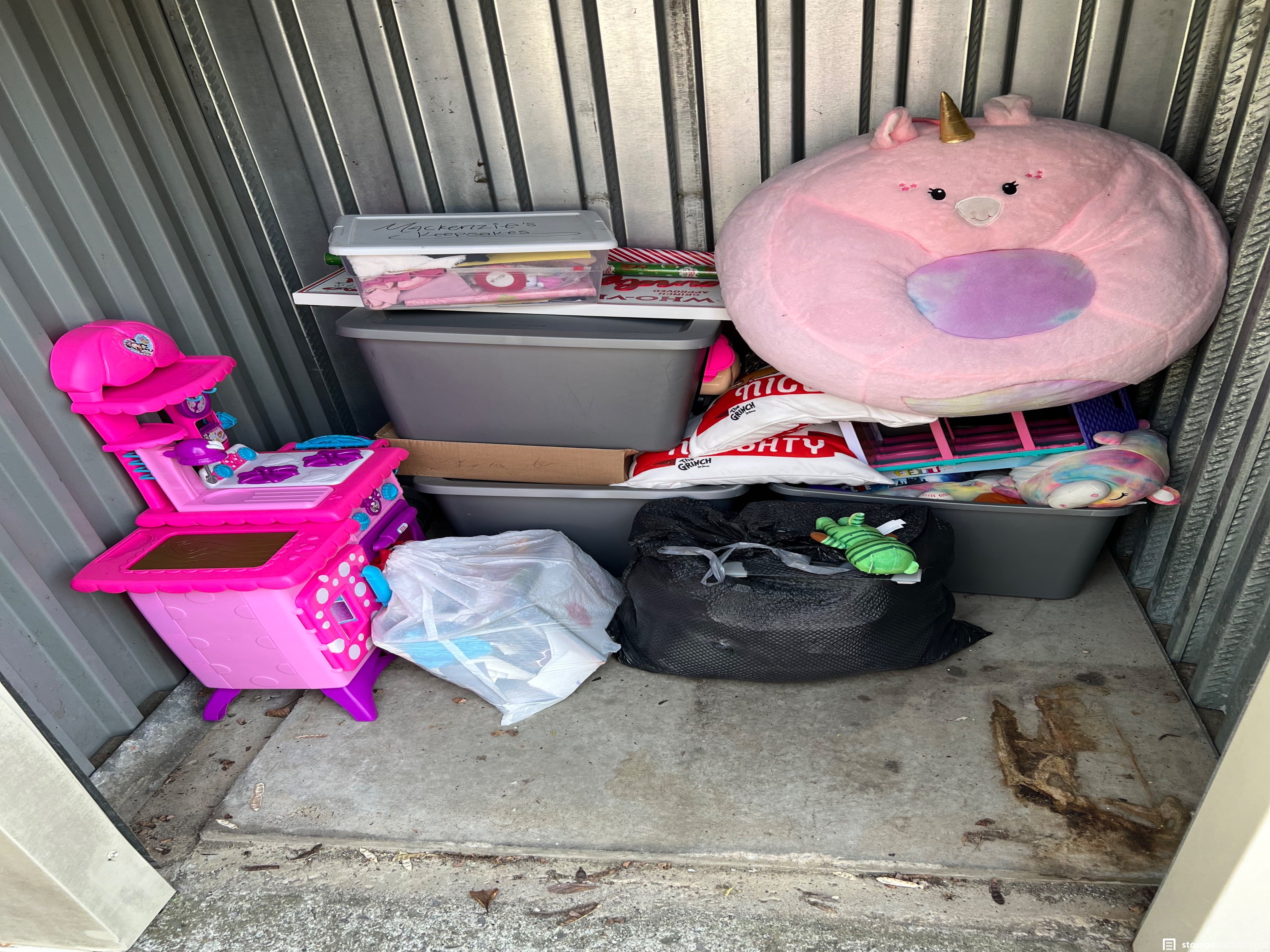Small unit with a few totes of crafts and toys. Clean and well packed.