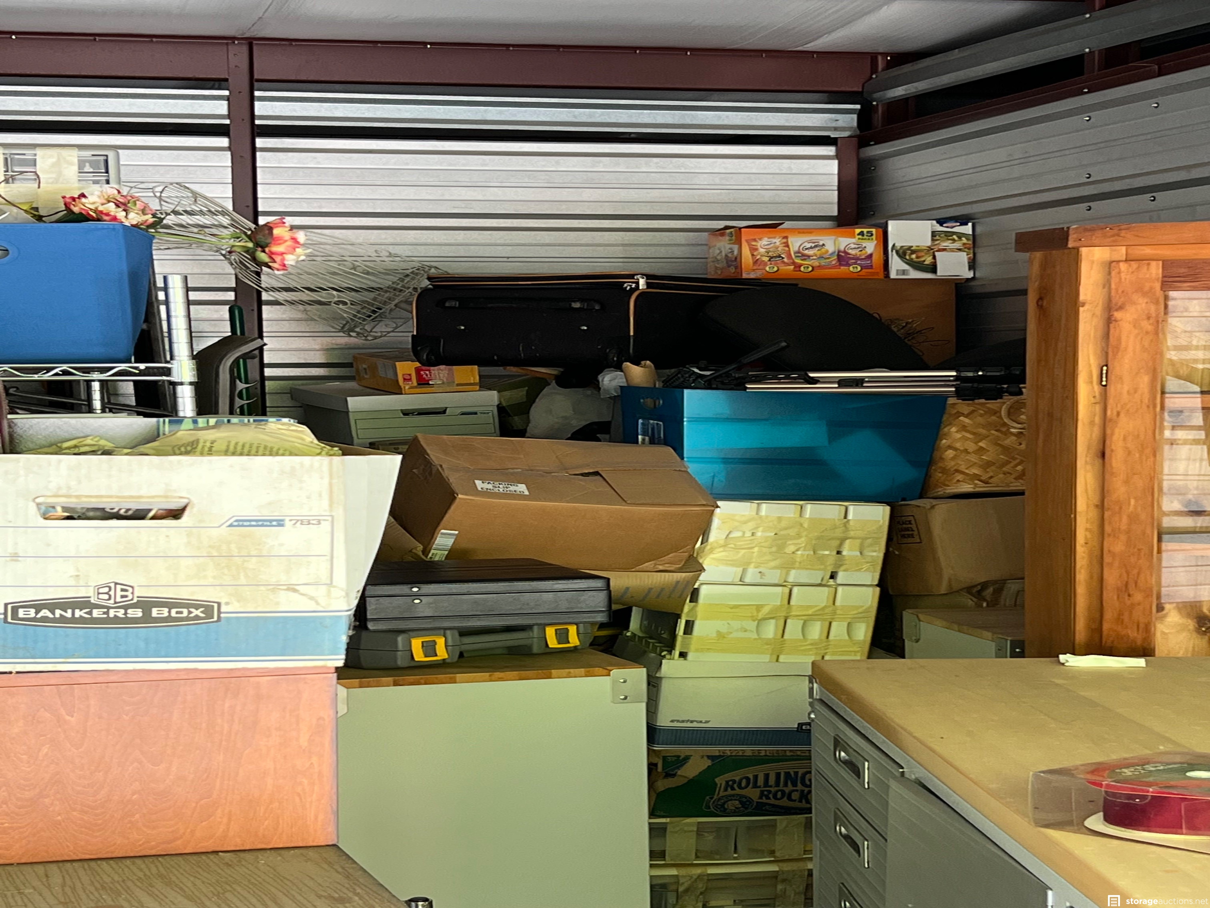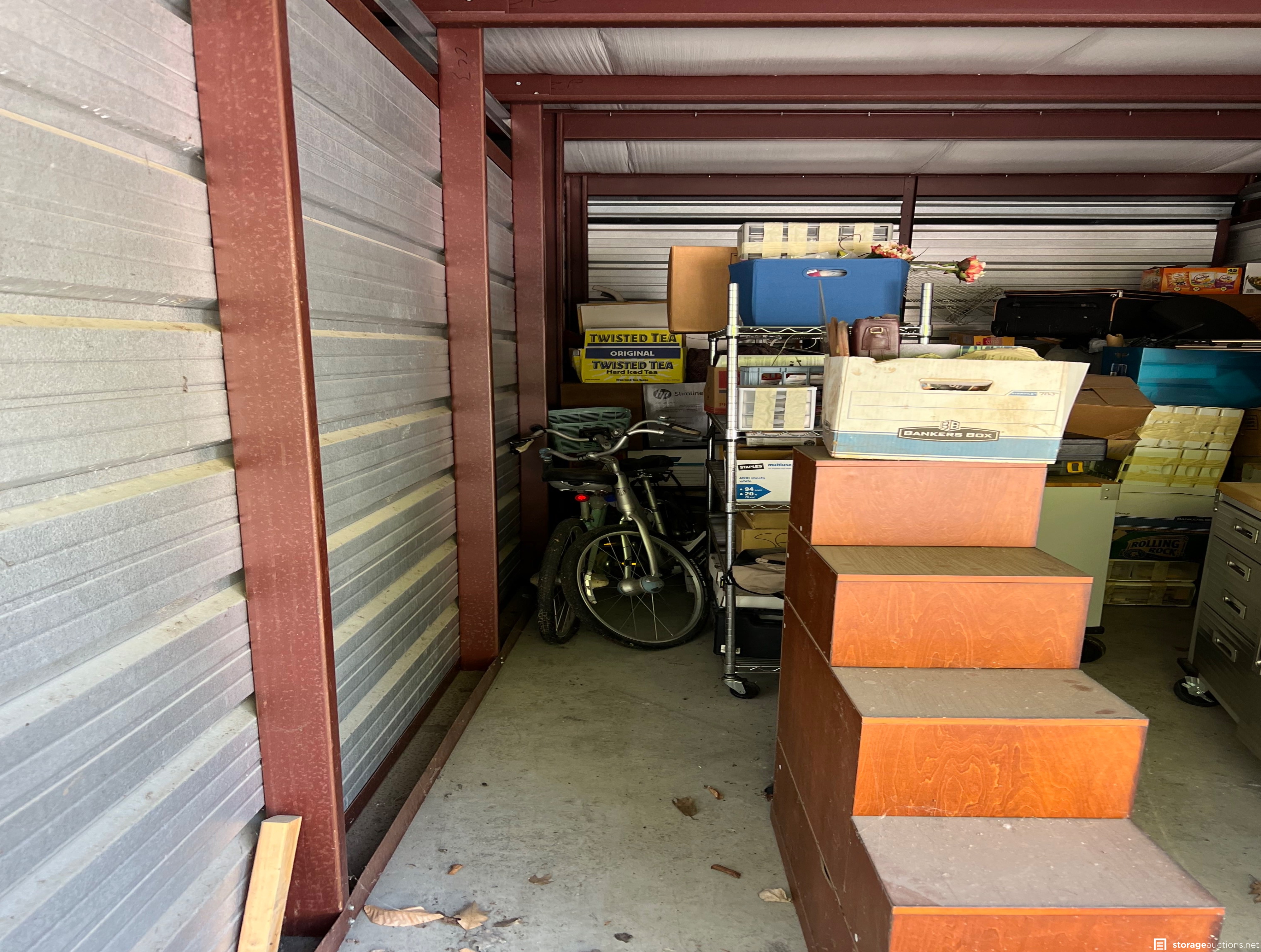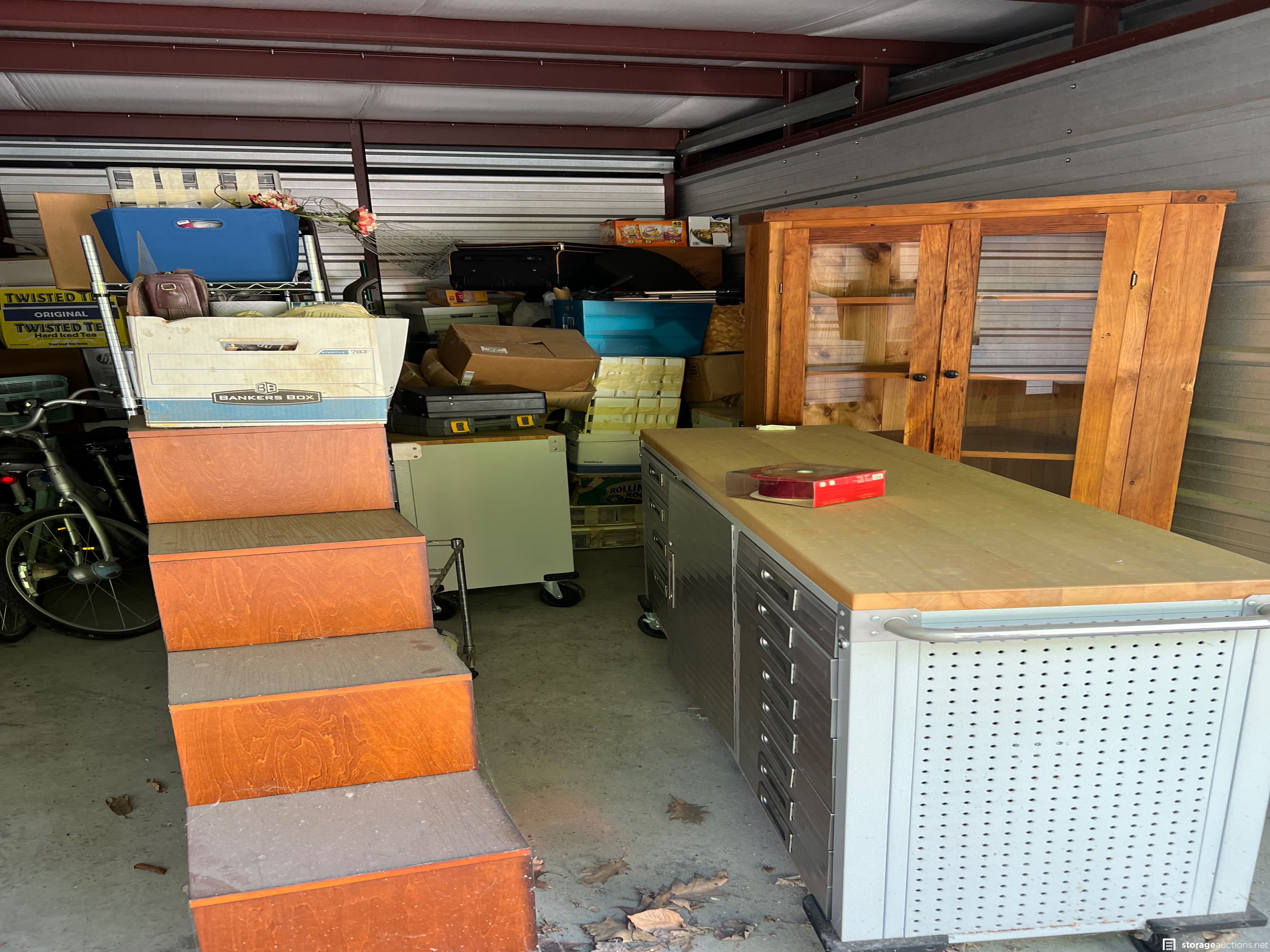 Large unit with some very nice items visible. Large rolling toolbox, metal shelving and some bicycles. Happy Bidding.