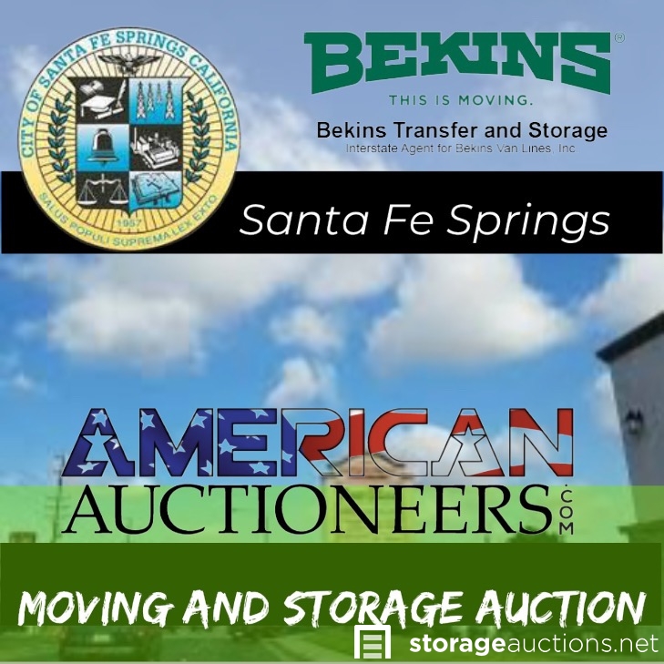 This is a live auction at Bekins Relocation, Saturday, April 15, 10:00 AM 12610 Shoemaker Avenue Santa Fe Springs you can find more information about this sale on our website americanauctioneers.com or give us a call at 800 838 7653