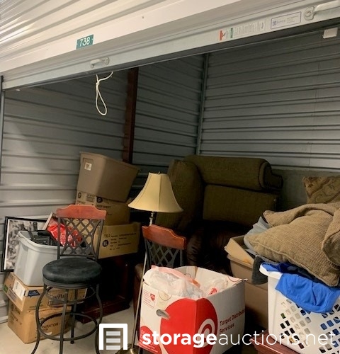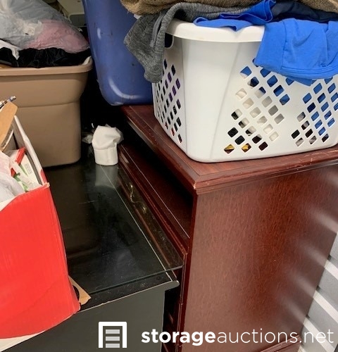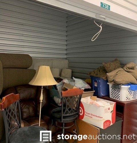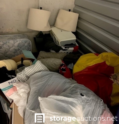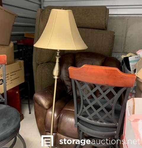 Lamps, sofa, recliner, desk, dresser, night table, miscellaneous boxes ant totes. Inside unit very clean.