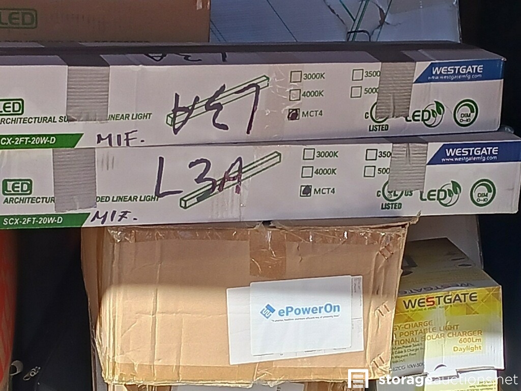 Misc Westgate light fixtures and hardware, boxes, lamp, poker table tops, EZ Up pop up tent, totes, etc