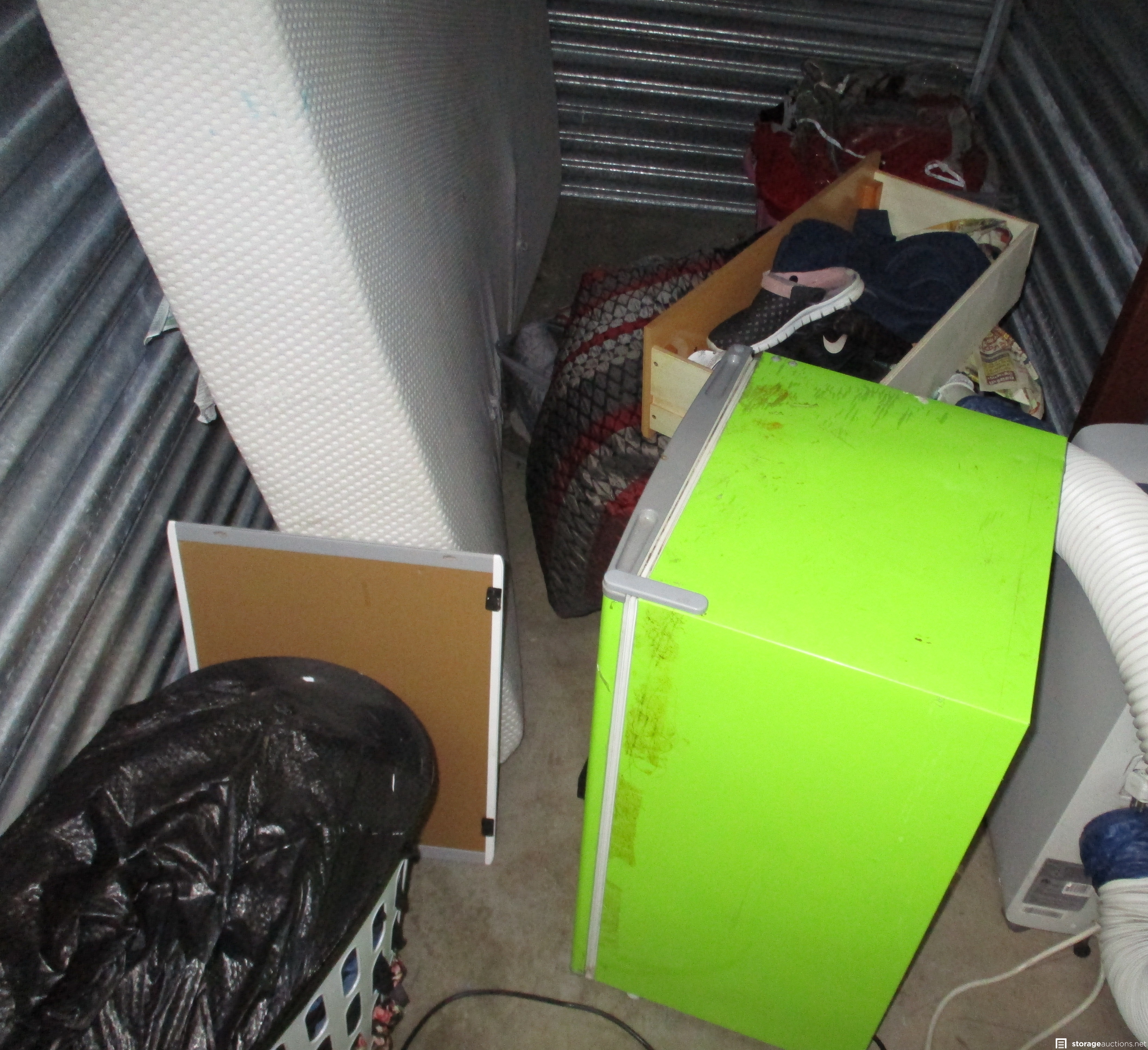MINI REFRIGERATOR, PORTABLE ROLLING AIR CONDITIONER, MATTRESS, WRITING BOARD, RUG, NUMEROUS PAIRS OF SHOES, CLOTHING, PLASTIC BAG (CONTENTS UNKNOWN).