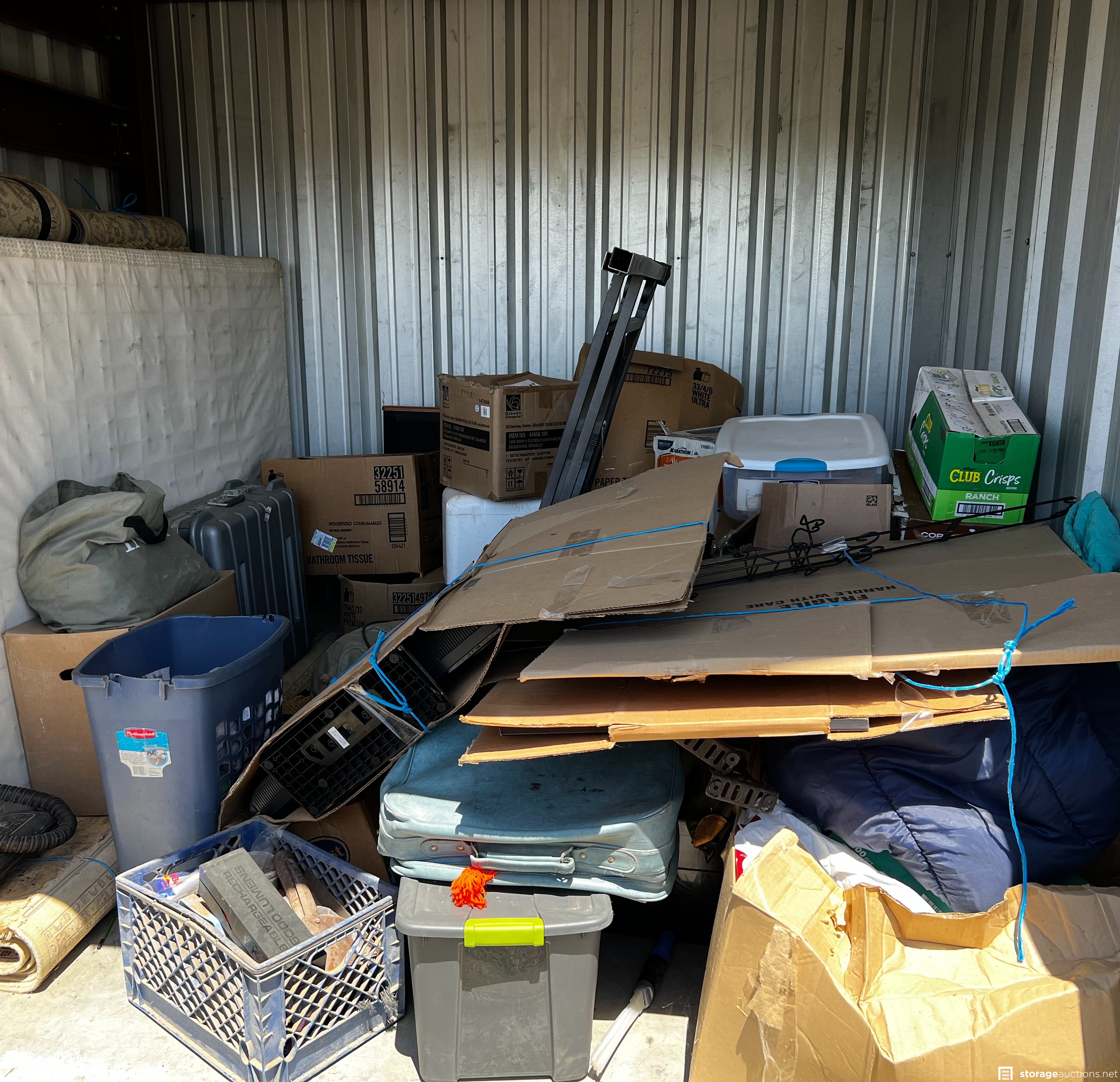 Mattress, rugs, boxes, pictures, suitcases, miscellaneous