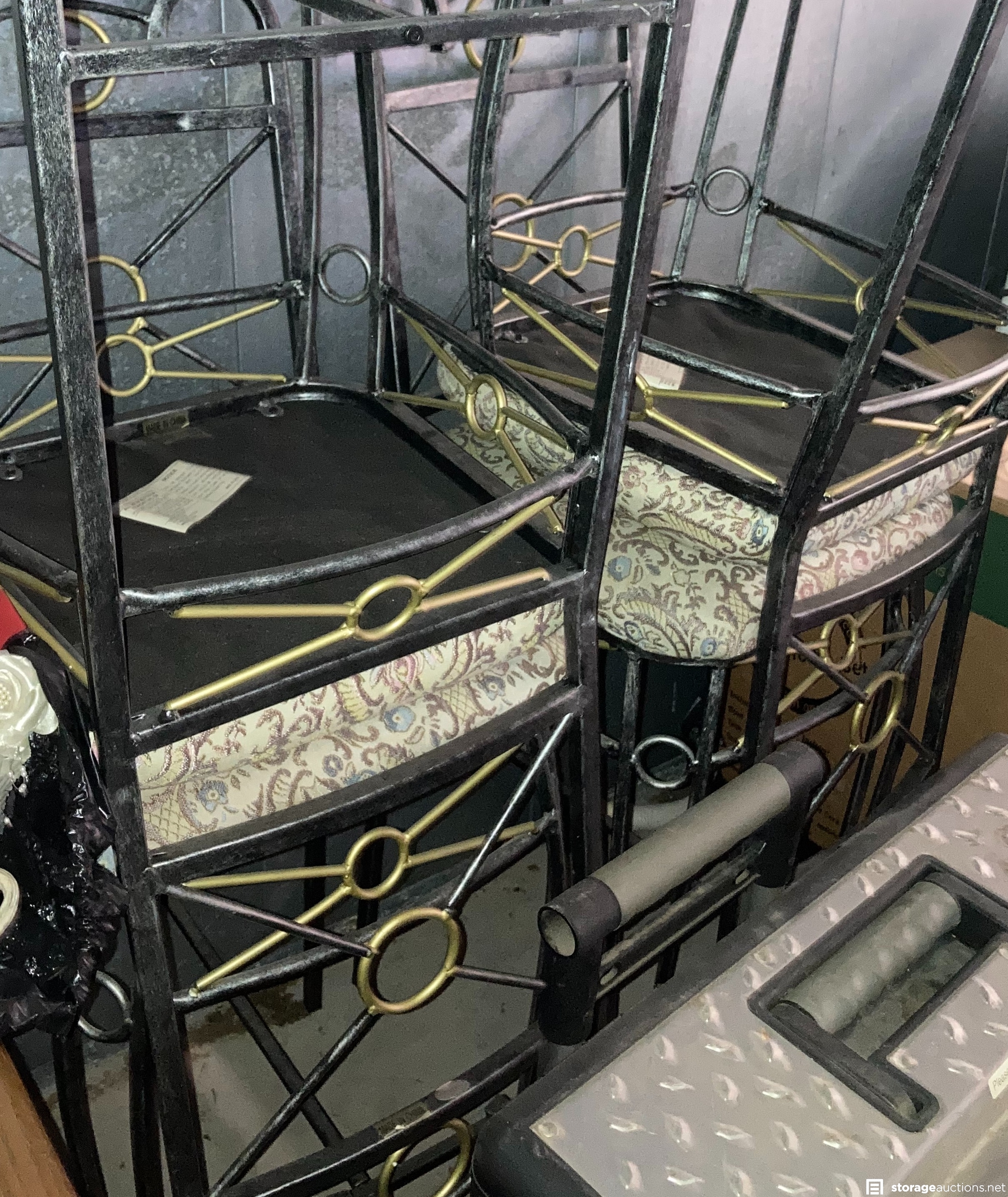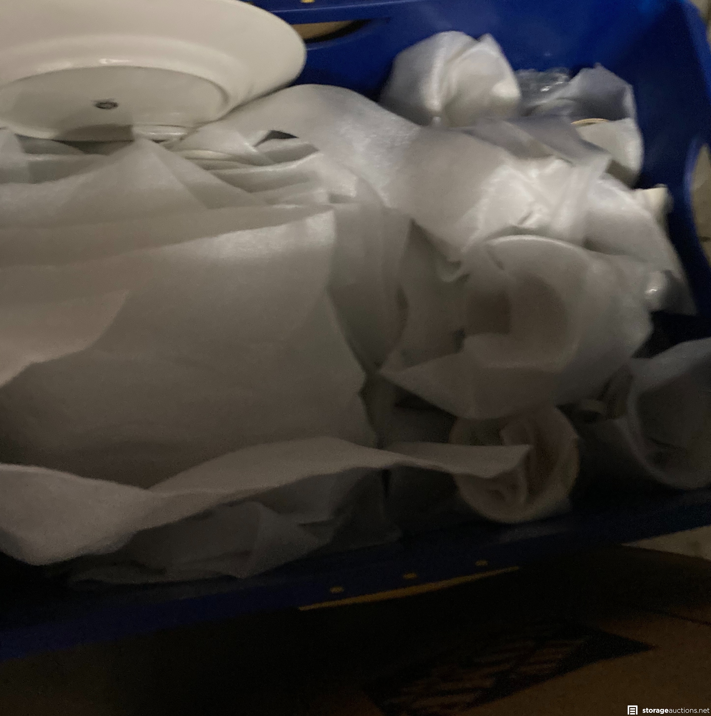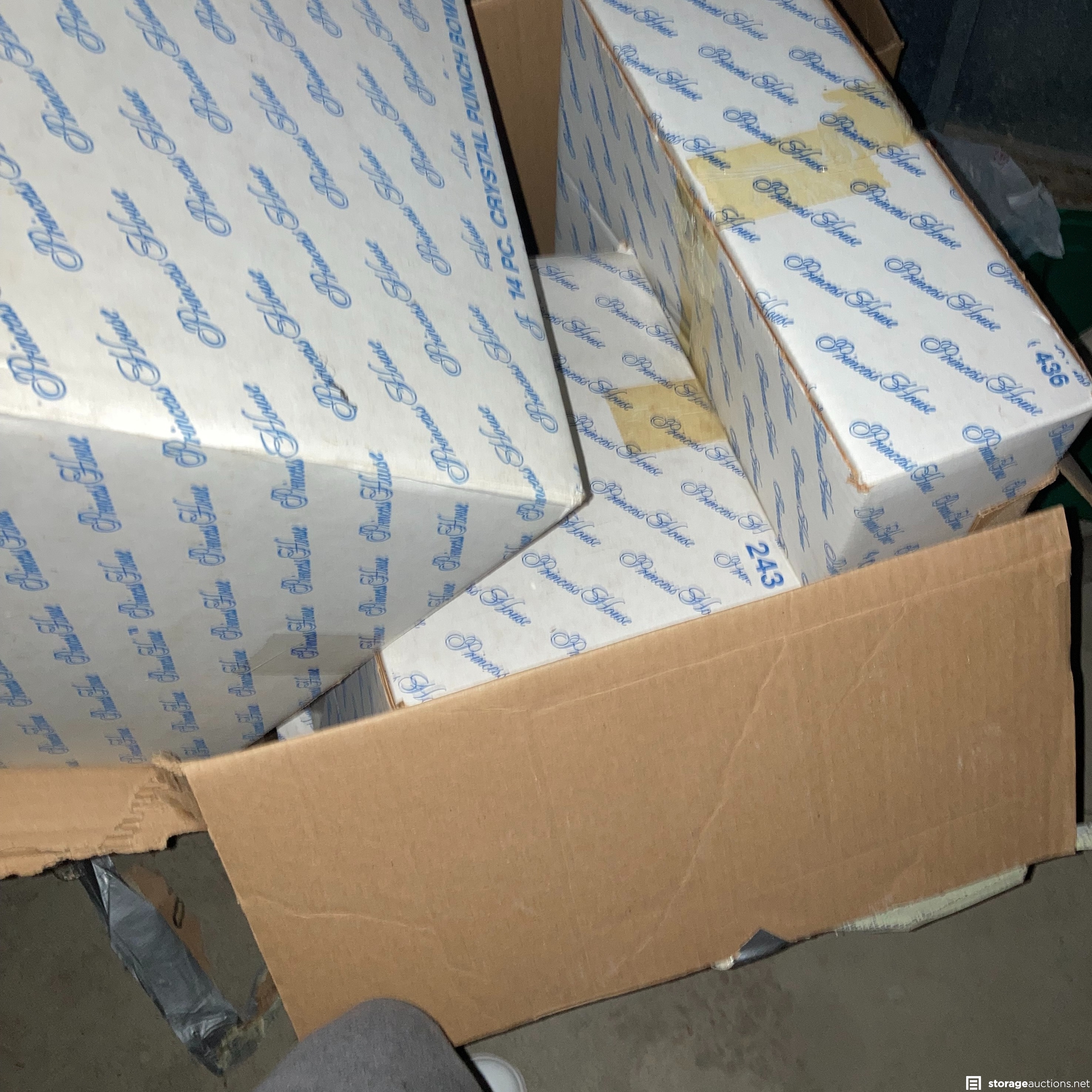 Princess House Crystal in Boxes, nice pair well-kept floor lamps, beautiful set of dishes, pots & pans, pictures, upholstered set of 4 bistro chairs, coffee tables, standing roll-away tool box, case of wine glasses
