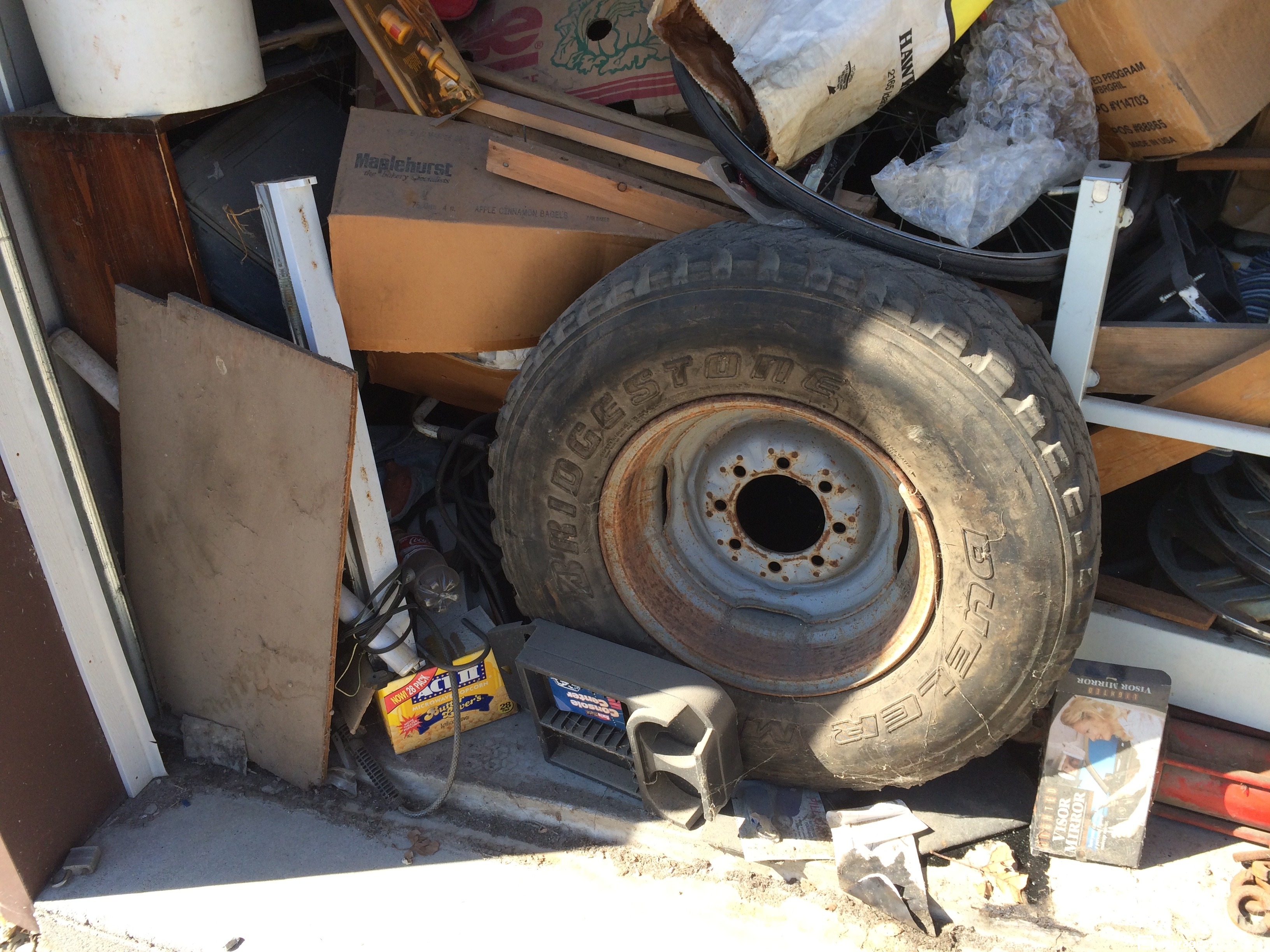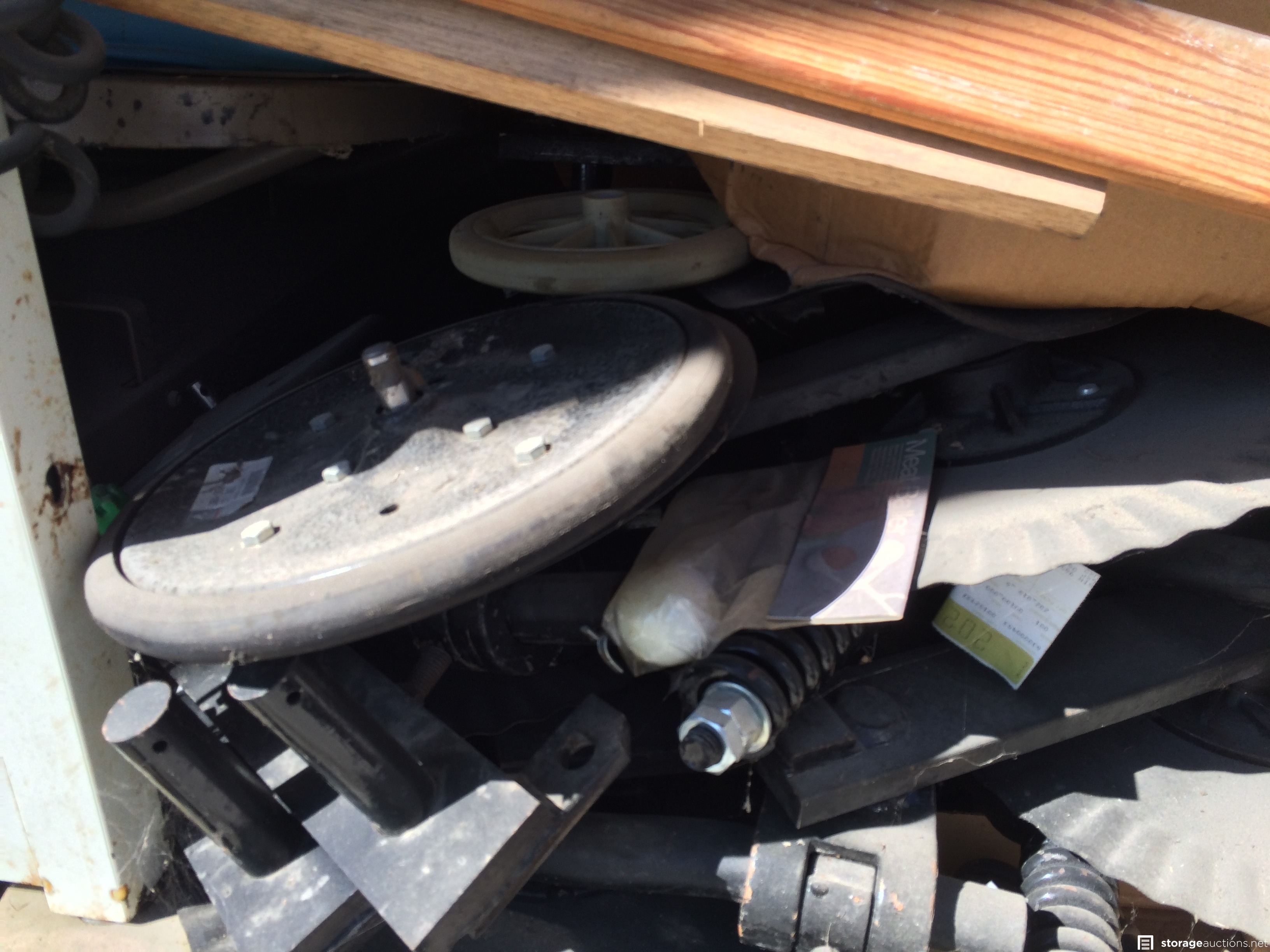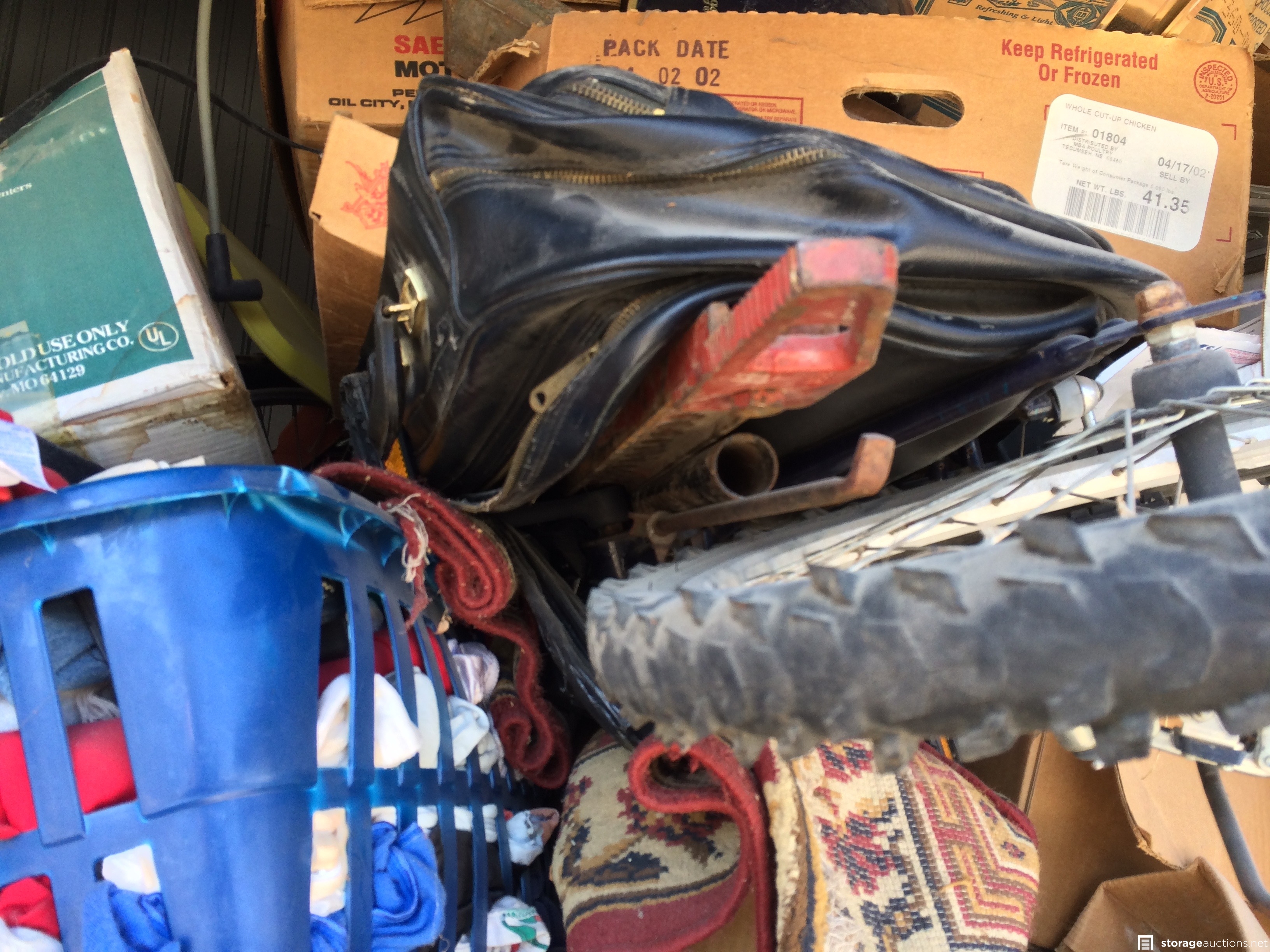 Echo chainsaw, tools, bicycles, luggage, AV equipment, wire spool, football helmet, hub caps, tire with rim, clothes, etc.