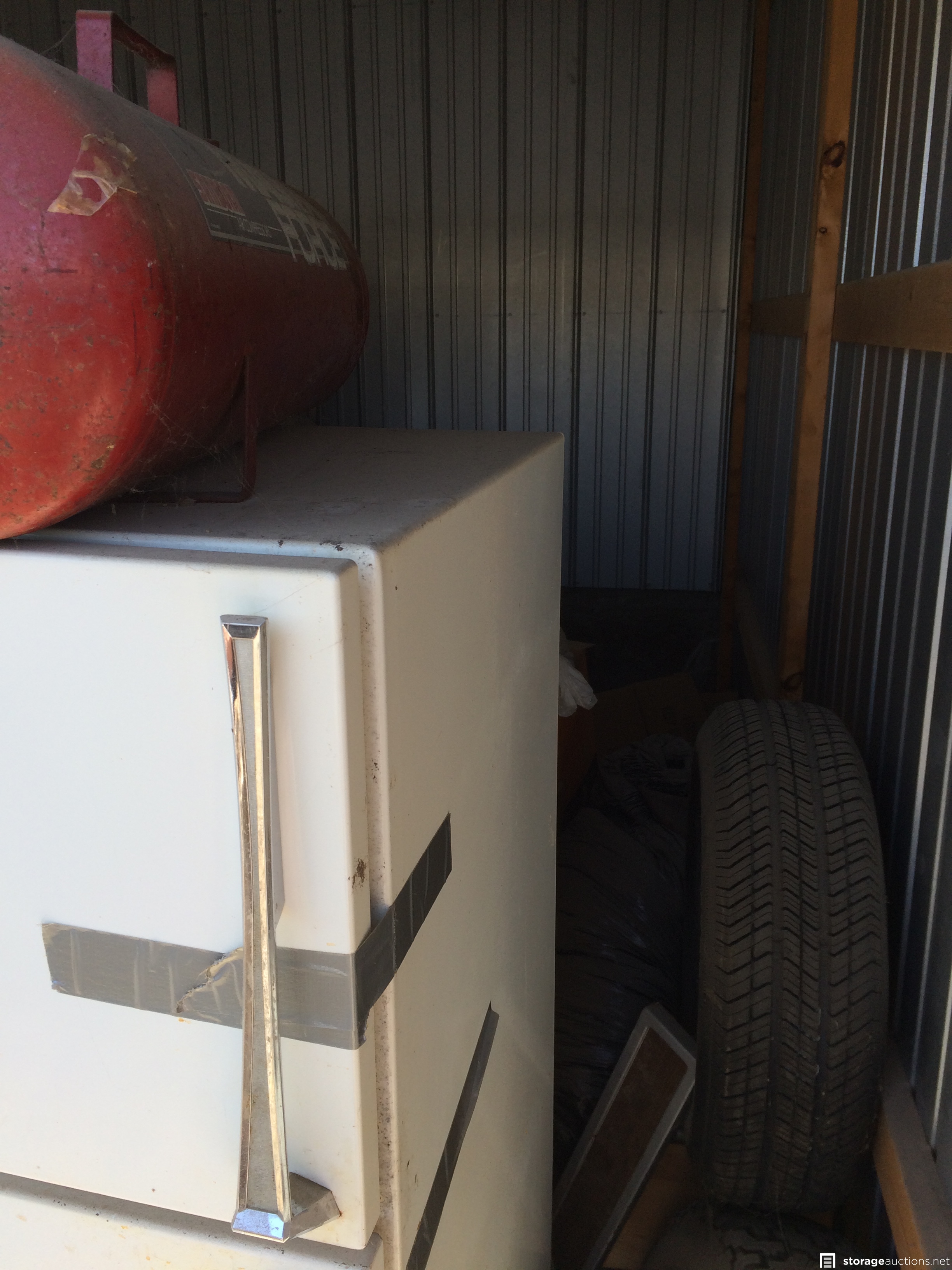 Compressed air tank, fridge, 4 new tires on rims, 2 sets of crutches, clothes, etc.