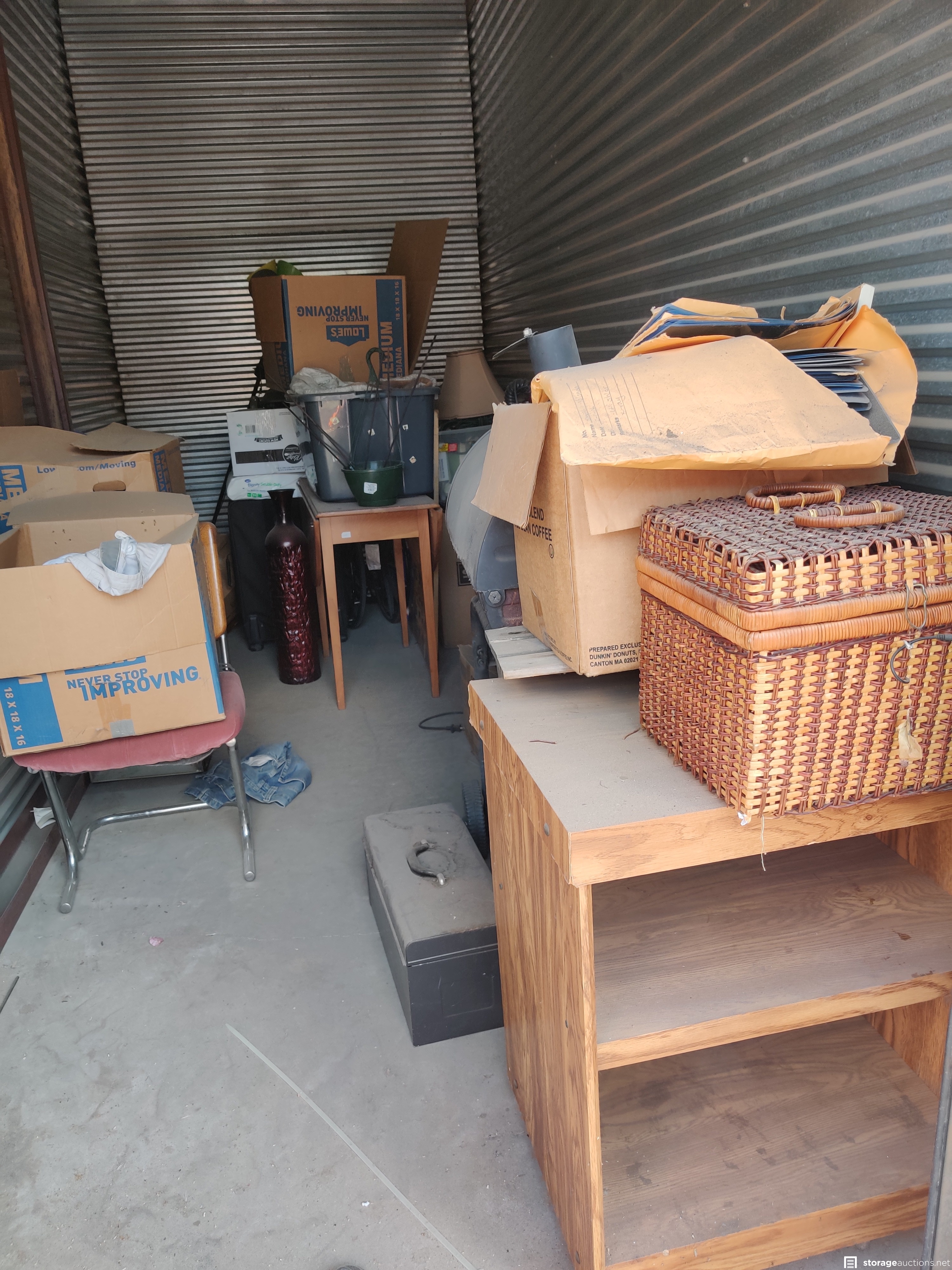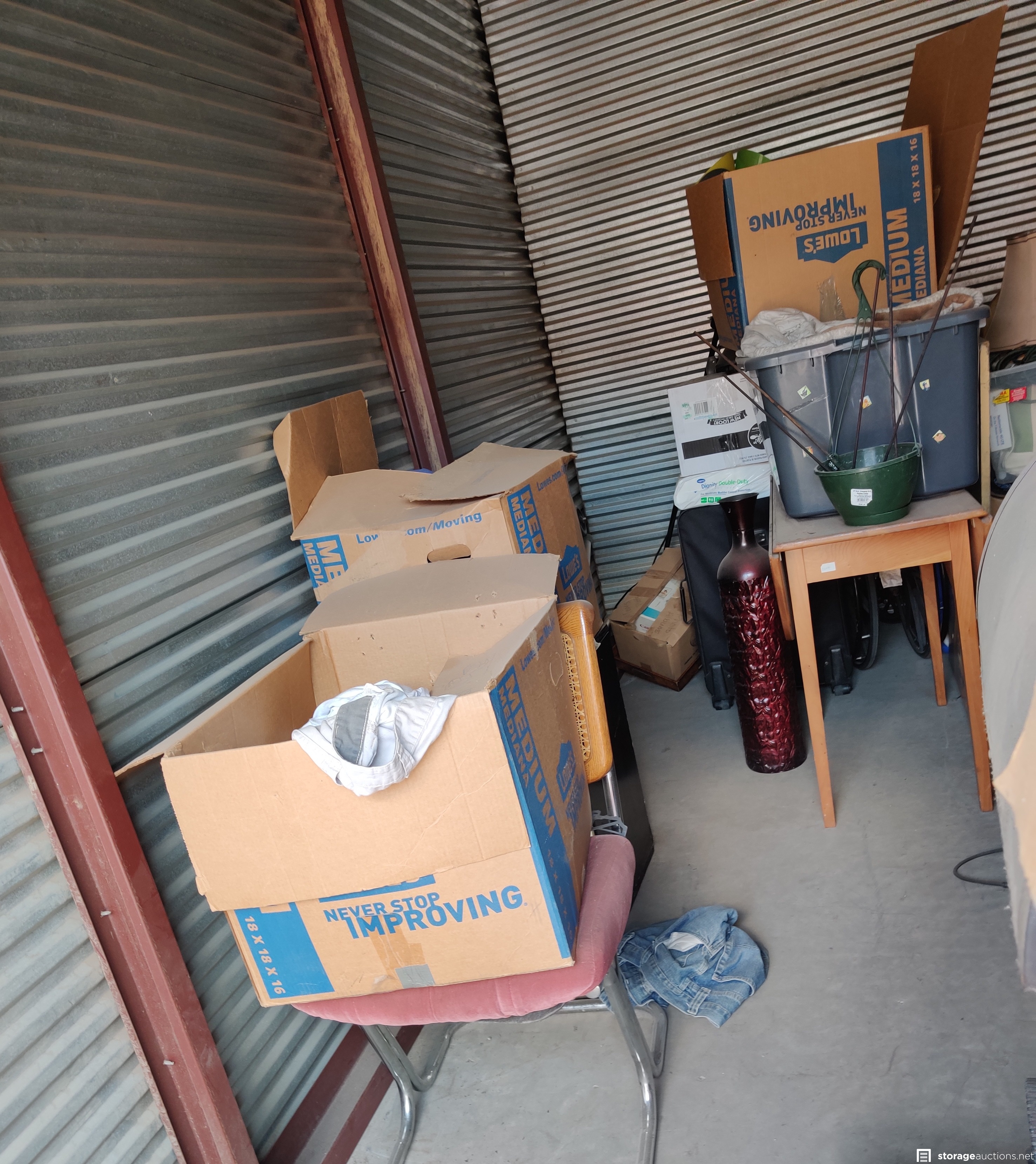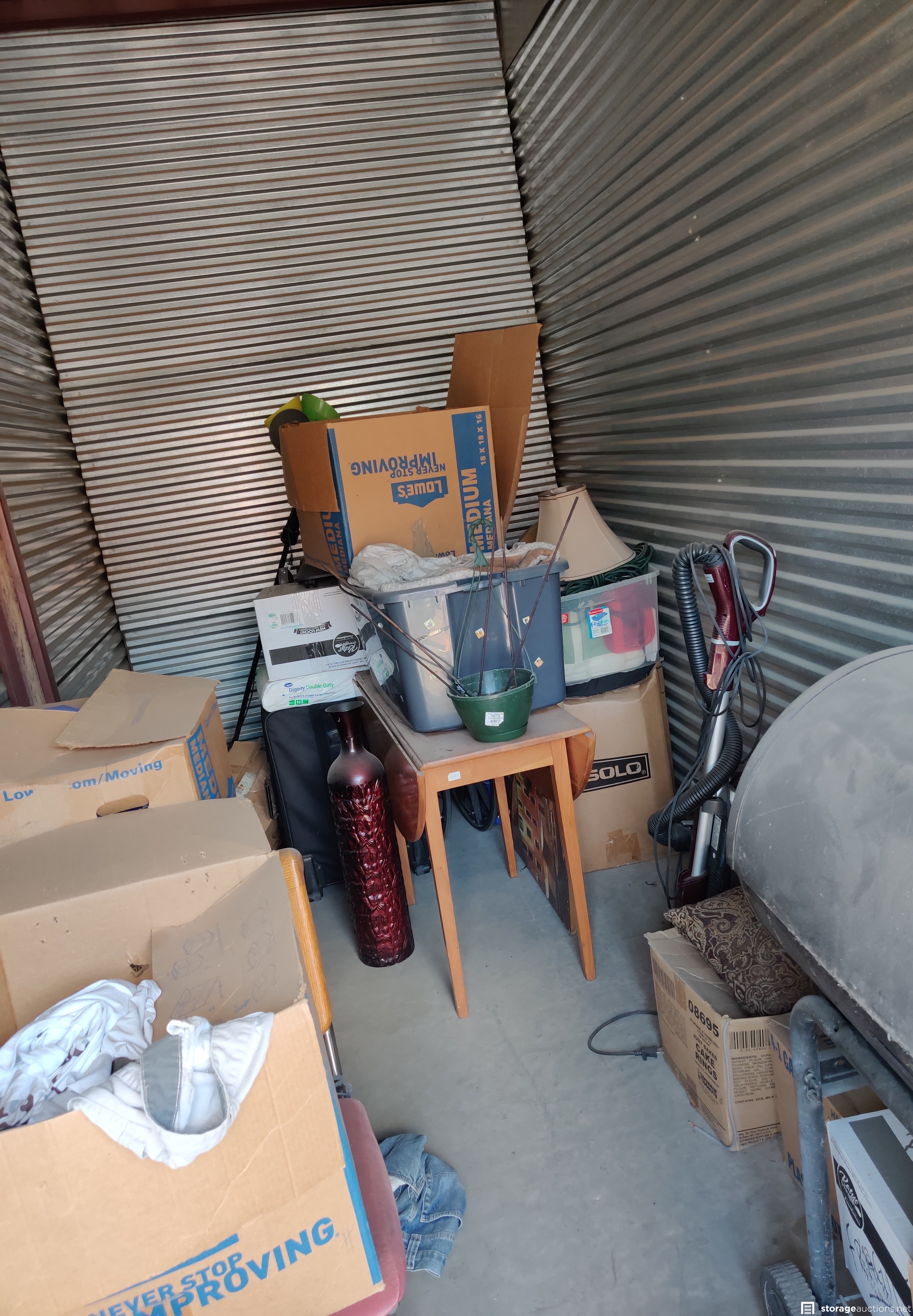 Unit appears to contain; tool box, vase boxes, grill, chair/table, vacuum.