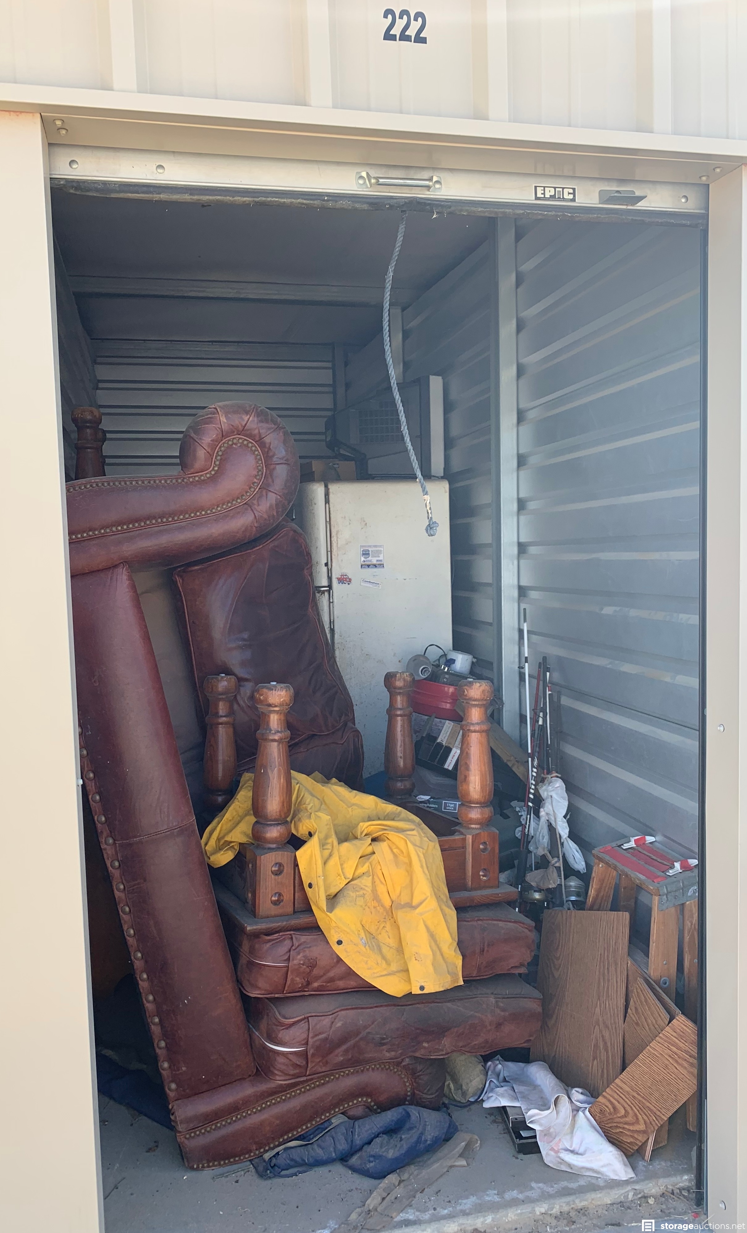 Additional Terms: **NOTICE - Defaulted tenant has legal right to cure account, thus cancelling the auction, up until cash payment is received from the winning bidder.** Buyers must be 18 years old to bid and pay winning bid. Winning bidder must pay within 48 hours in person. Cash or money order only. $100 deposit. If paying with money order, deposit must be on a separate money order. Unit must be cleaned out within 72 hours after payment. Deposit will be returned after unit is cleaned out. If unit is not cleaned out after 72 hours, unit will be considered abandoned and deposit will be kept by the storage facility. Must have a paid confirmation and valid photo ID to pick up contents of unit. All sales are final, all sales are AS IS for the entire content of unit, unless otherwise specified. Items containing personal information found with in unit must be returned to the office upon clean-out of the unit. No dumping, No pets allowed. All auction unit(s) are subject to cancellation by the storage facility.