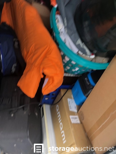 suit cases, cloths, boxes, small window AC unit, Large Flat Screen TV, Large Styrofoam cooler, laundry baskets, picture frame,