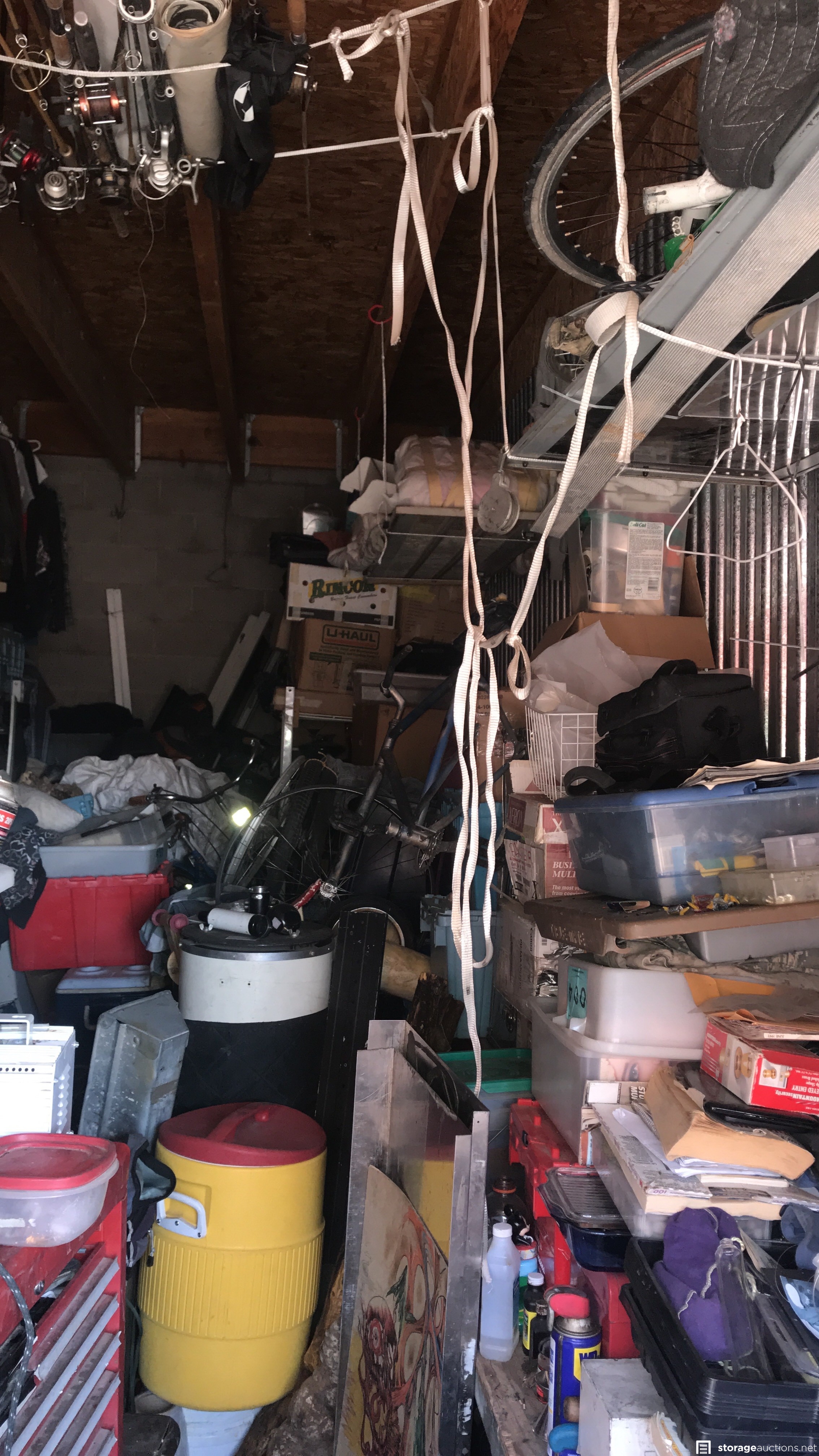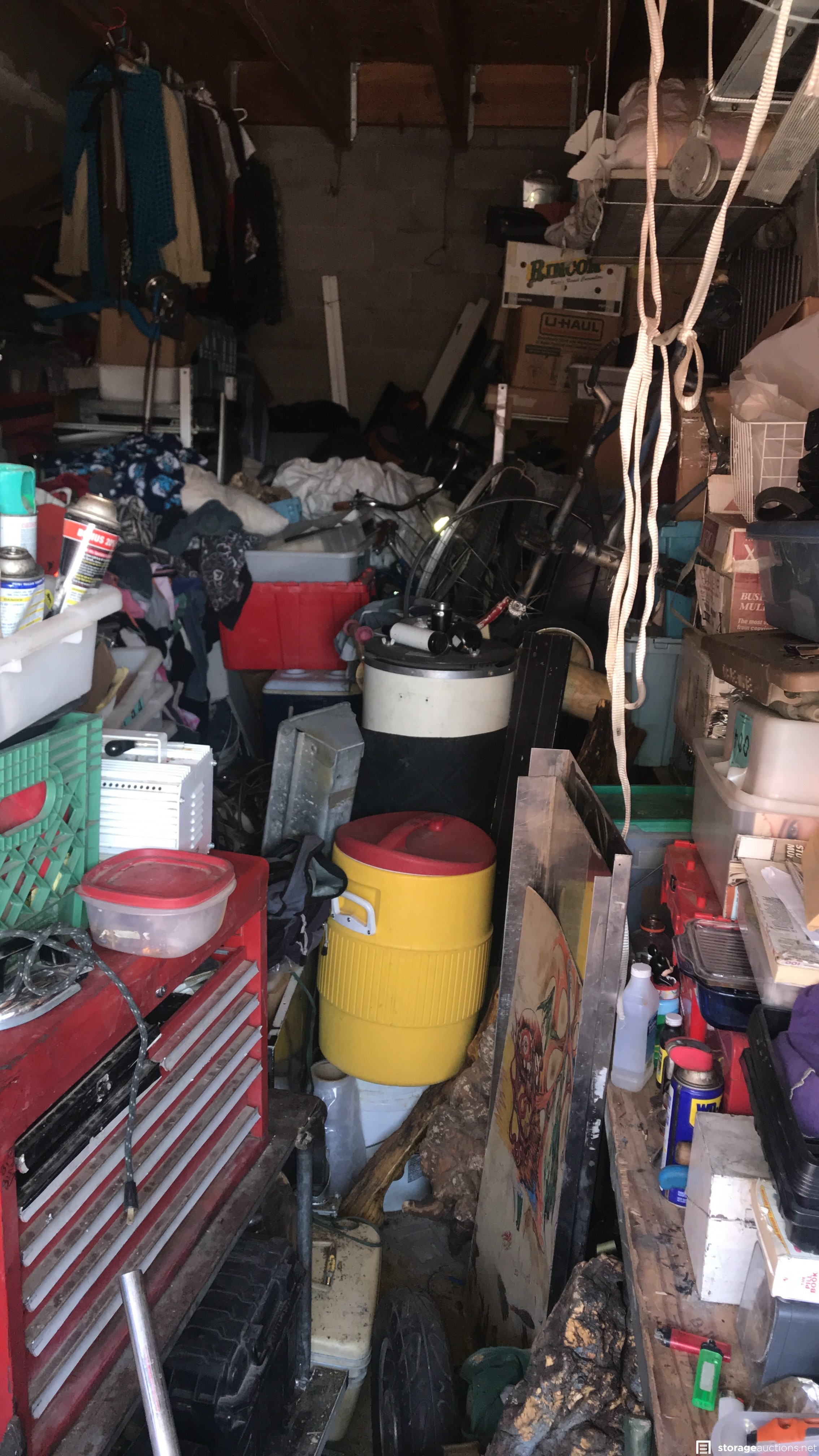 Auto parts, boxes, camping supplies, clothes, fishing equipment, hand tools, power tools, totes, crates, bike parts
