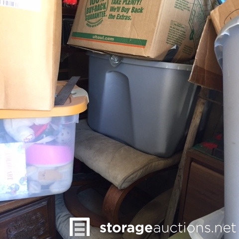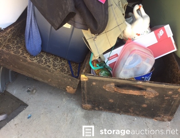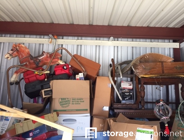 This unit has some old collectible items, tools, milk cans, nintendo, old chest suitcase, rocking horse, furniture, and lots of boxes and totes