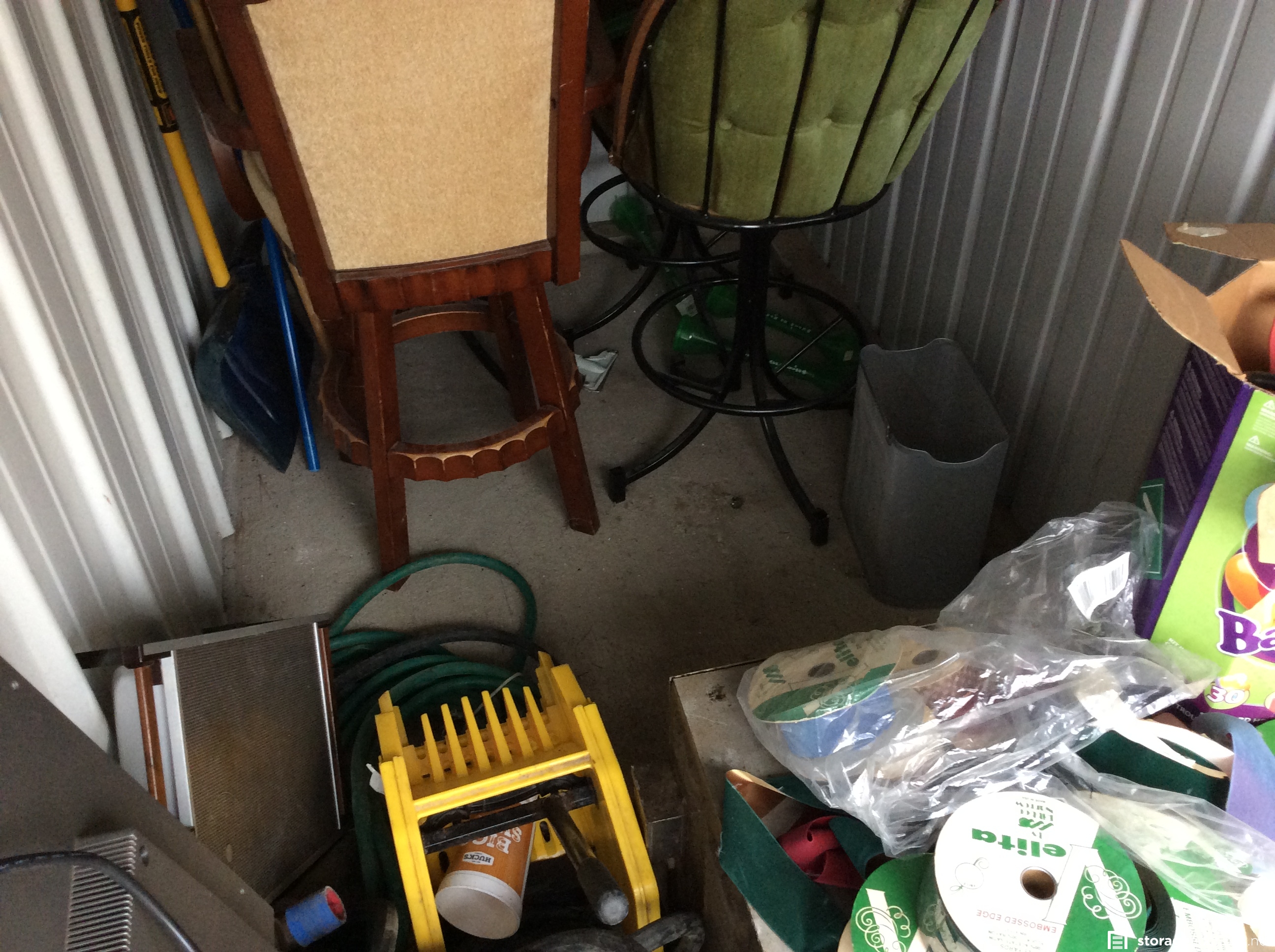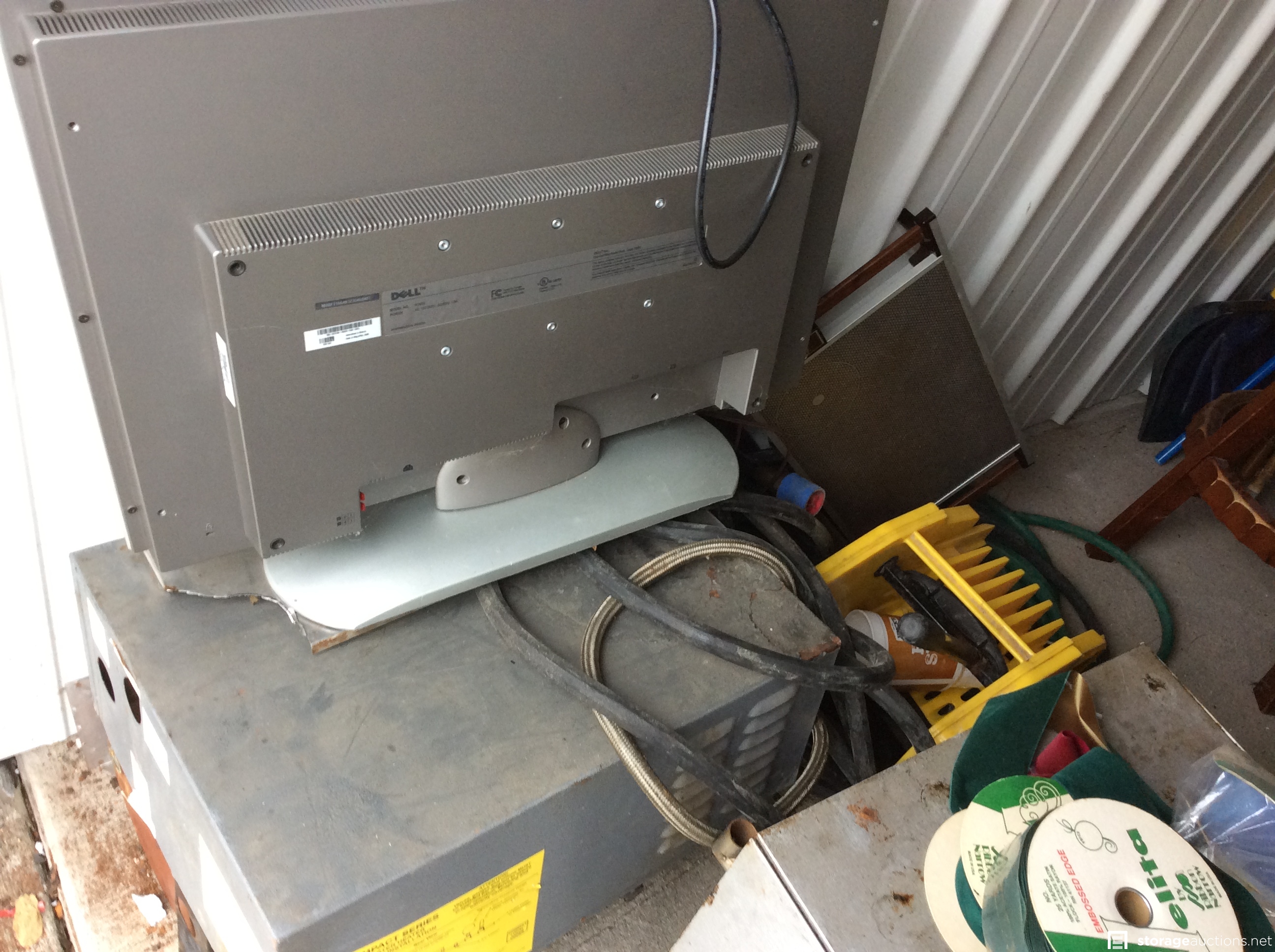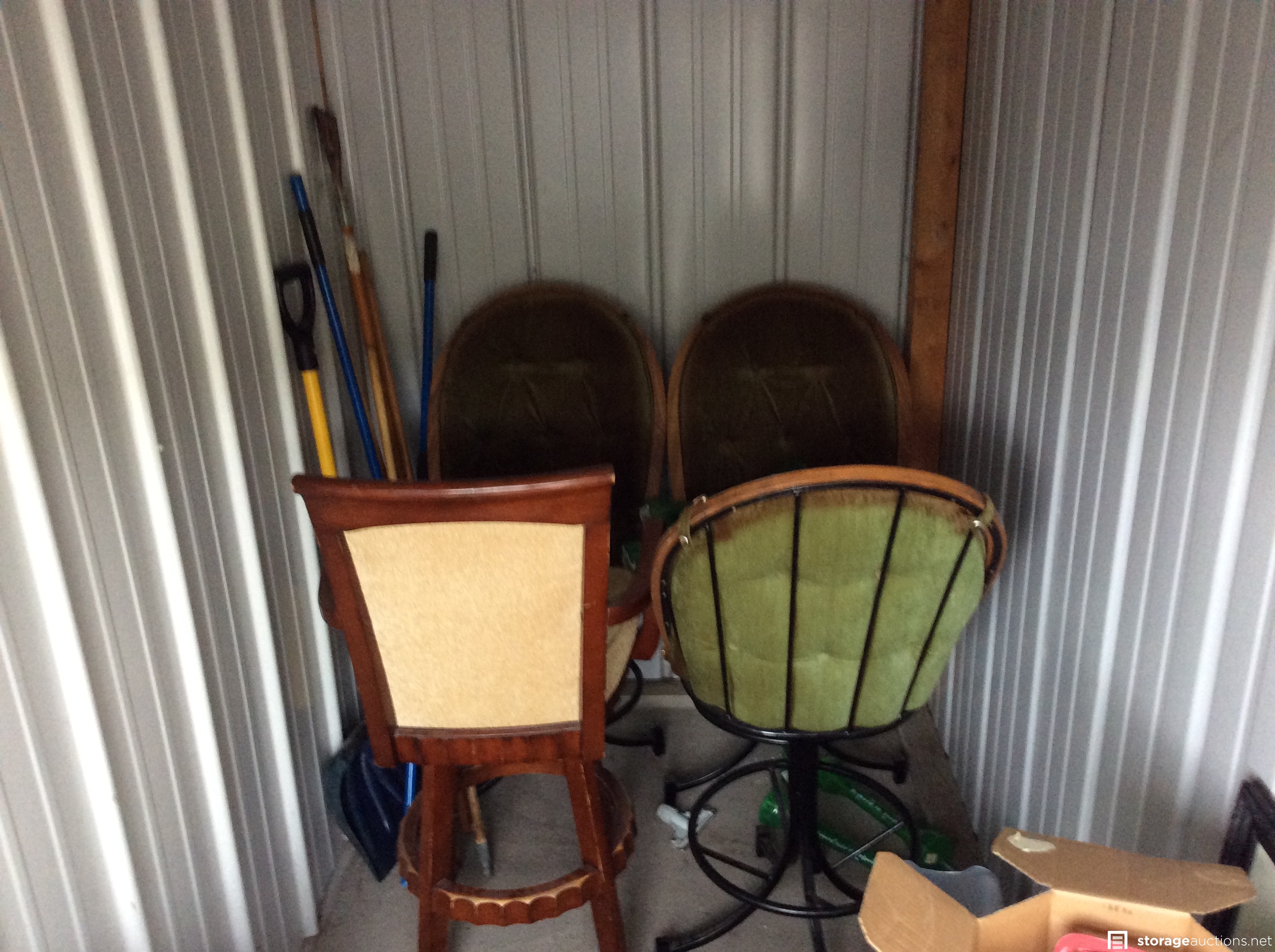 Bar stools, mop ringer, hot plate, flat screen, shovels