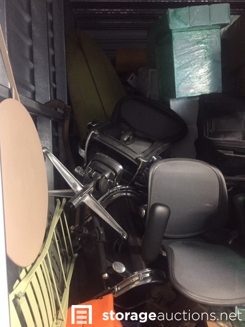Unit appears to contain: luggage, boxes, chairs, ladder, surfboard, pots,