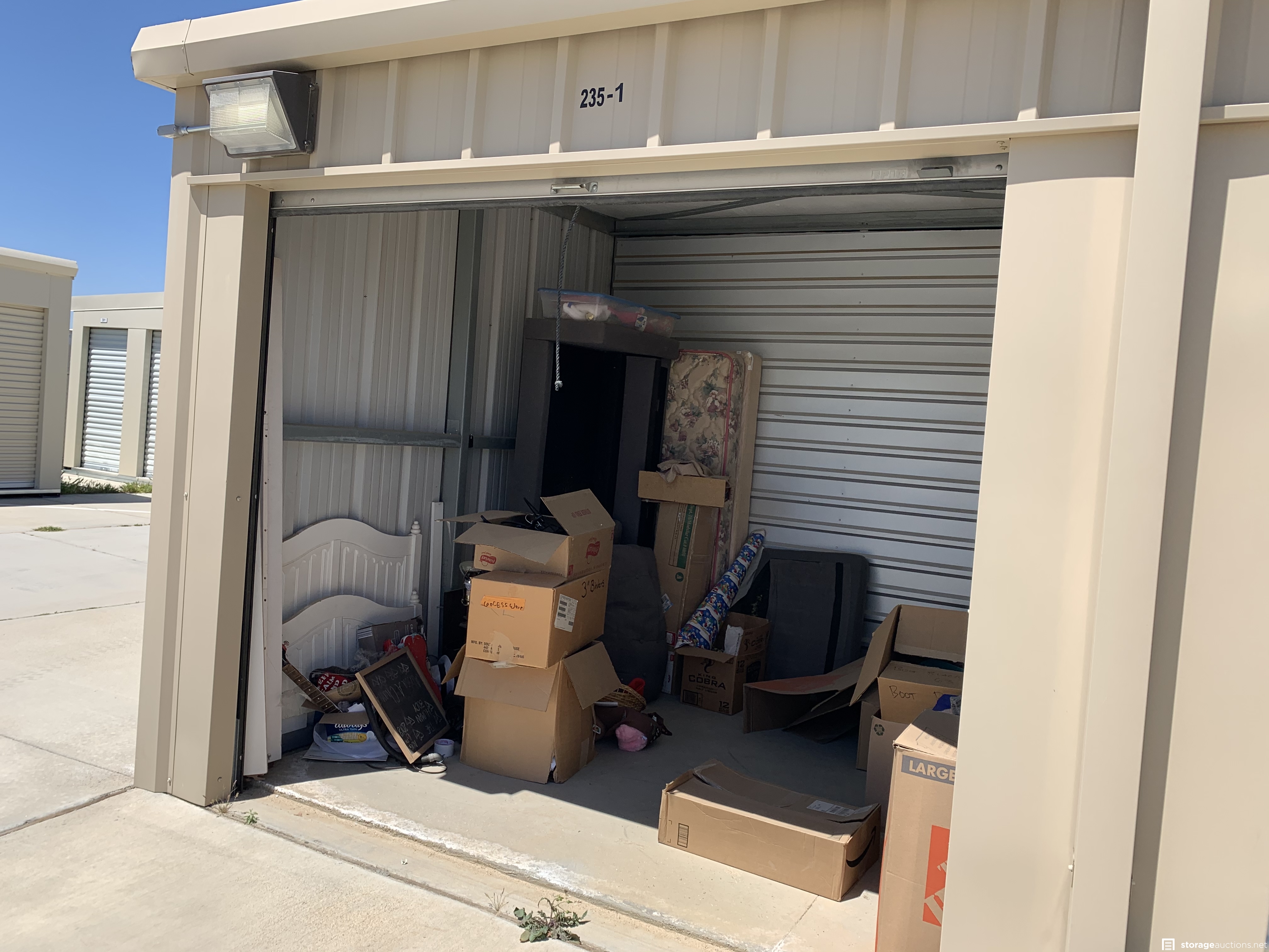Additional Terms: **NOTICE - Defaulted tenant has legal right to cure account, thus cancelling the auction, up until cash payment is received from the winning bidder.** Buyers must be 18 years old to bid and pay winning bid. Winning bidder must pay within 48 hours in person. Cash or money order only. $100 deposit. If paying with money order, deposit must be on a separate money order. Unit must be cleaned out within 72 hours after payment. Deposit will be returned after unit is cleaned out. If unit is not cleaned out after 72 hours, unit will be considered abandoned and deposit will be kept by the storage facility. Must have a paid confirmation and valid photo ID to pick up contents of unit. All sales are final, all sales are AS IS for the entire content of unit, unless otherwise specified. Items containing personal information found with in unit must be returned to the office upon clean-out of the unit. No dumping, No pets allowed. All auction unit(s) are subject to cancellation by the storage facility.