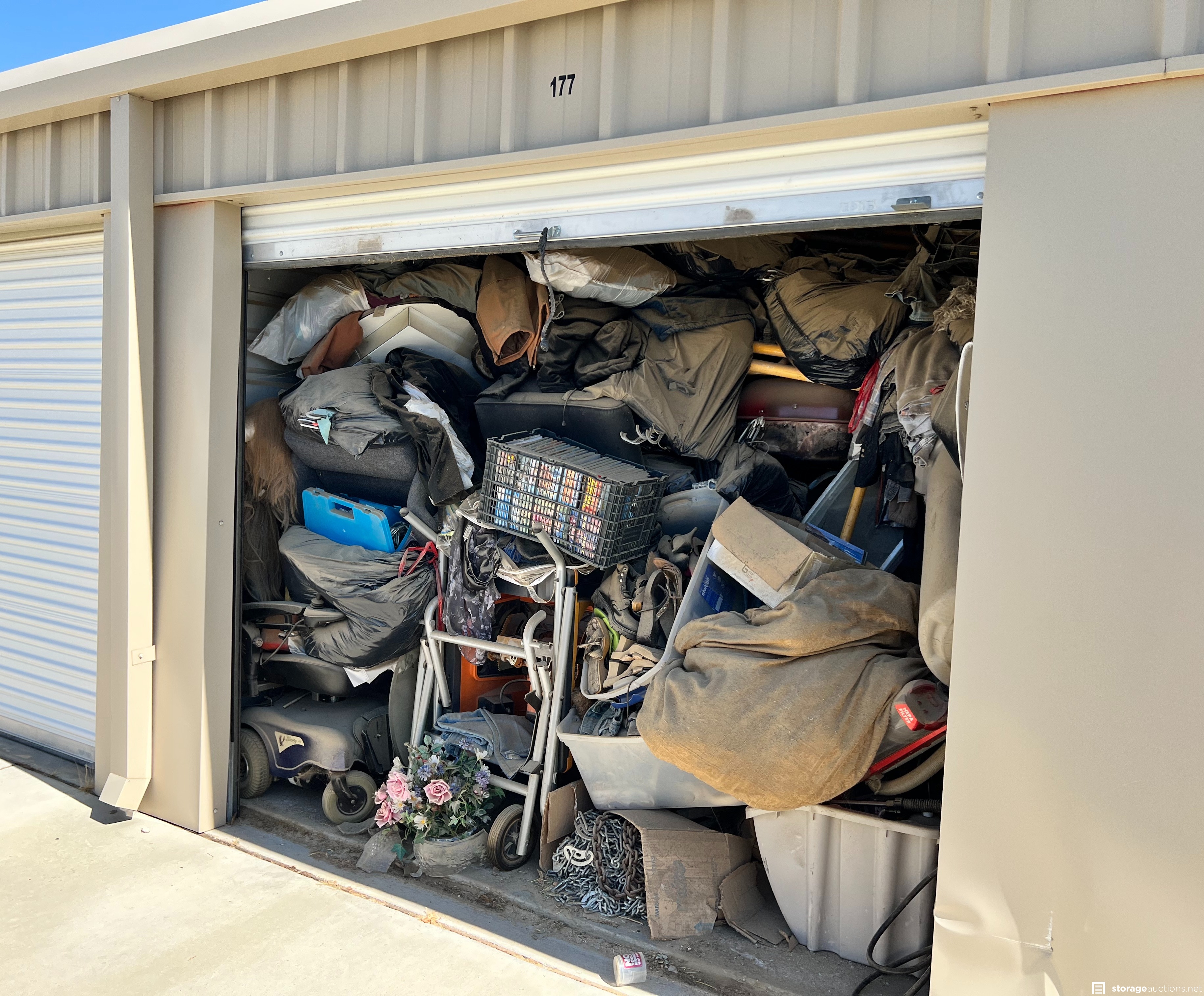 Additional Terms: **NOTICE - Defaulted tenant has legal right to cure account, thus cancelling the auction, up until cash payment is received from the winning bidder.** Buyers must be 18 years old to bid and pay winning bid. Winning bidder must pay within 48 hours in person. Cash or money order only. $100 deposit. If paying with money order, deposit must be on a separate money order. Unit must be cleaned out within 72 hours after payment. Deposit will be returned after unit is cleaned out. If unit is not cleaned out after 72 hours, unit will be considered abandoned and deposit will be kept by the storage facility. Must have a paid confirmation and valid photo ID to pick up contents of unit. All sales are final, all sales are AS IS for the entire content of unit, unless otherwise specified. Items containing personal information found within unit must be returned to the office upon clean-out of the unit. No dumping, No pets allowed. All auction unit(s) are subject to cancellation by the storage facility.