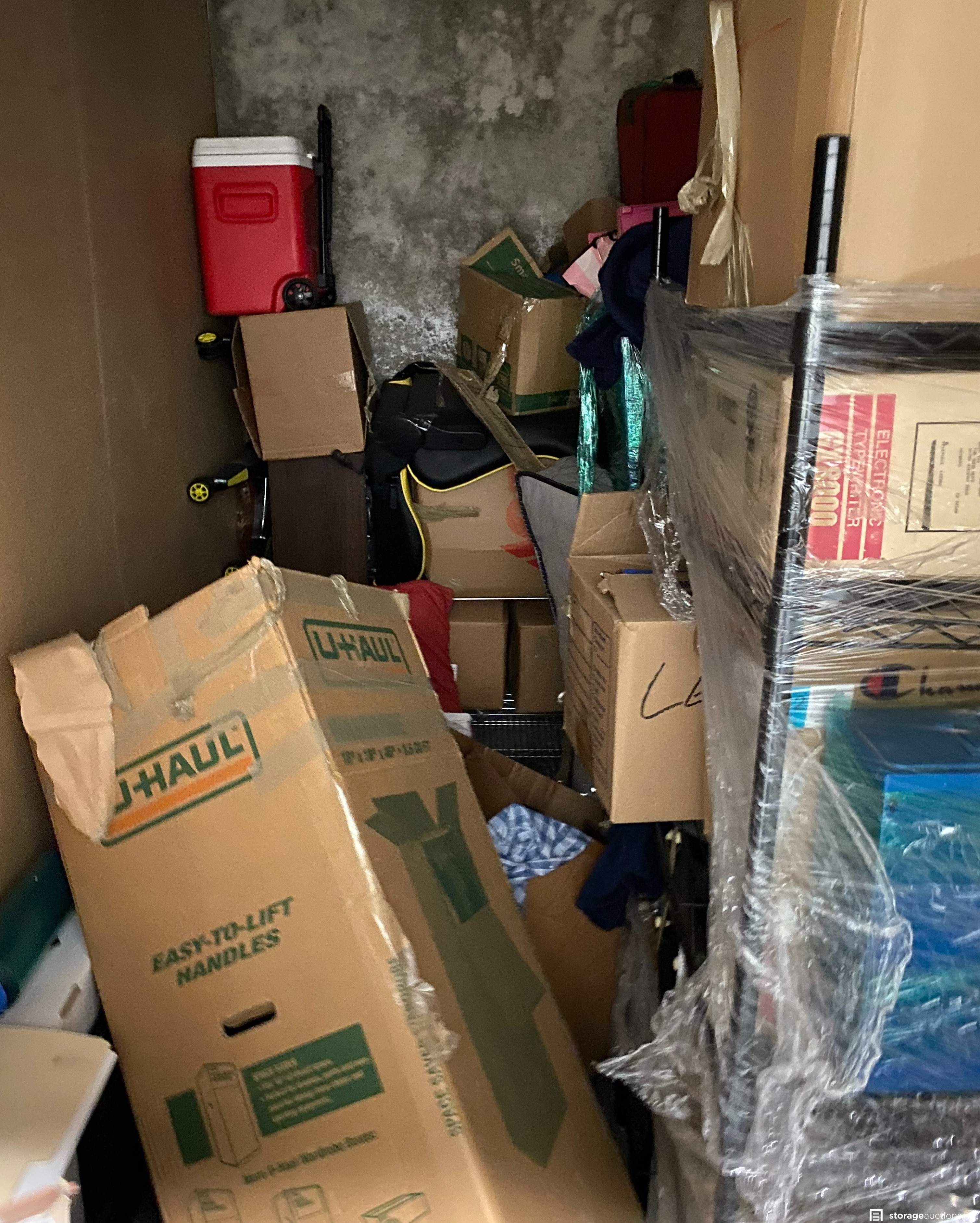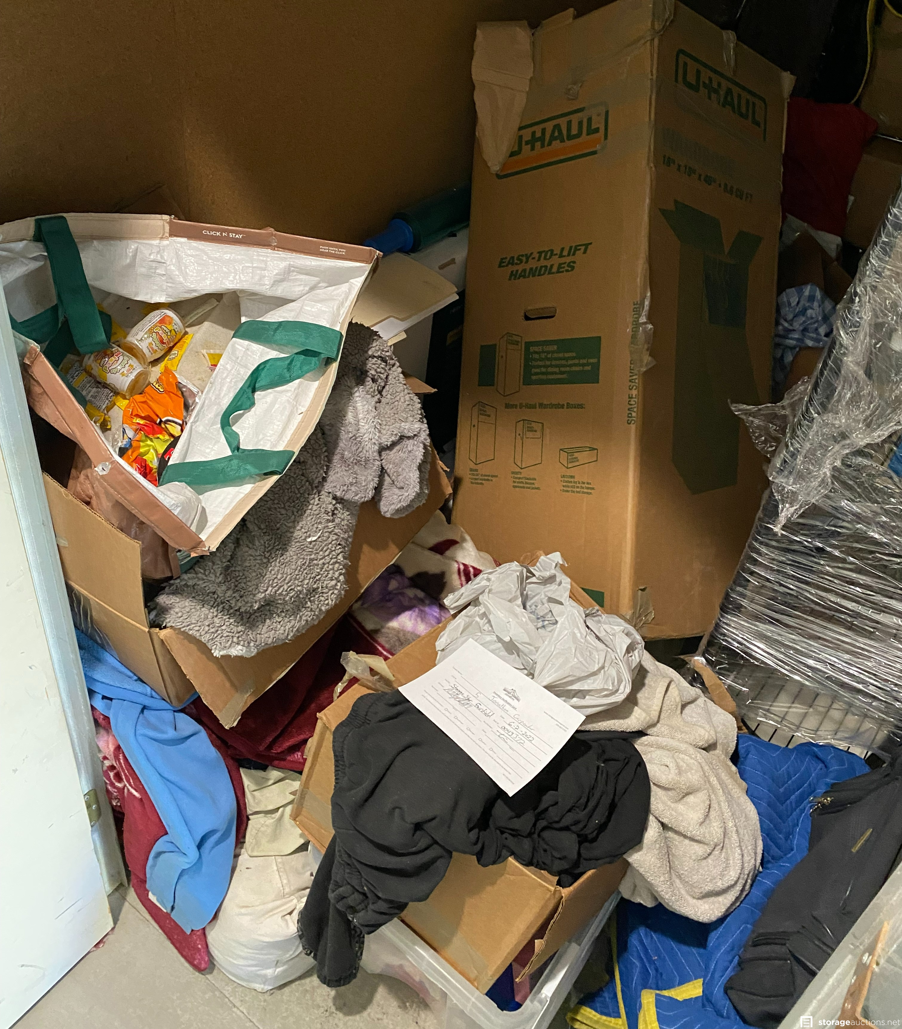Bags, Boxes, Clothing, suitcases, food, miscellaneous, shelves, totes.