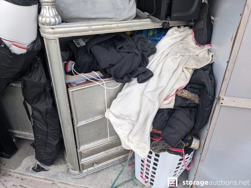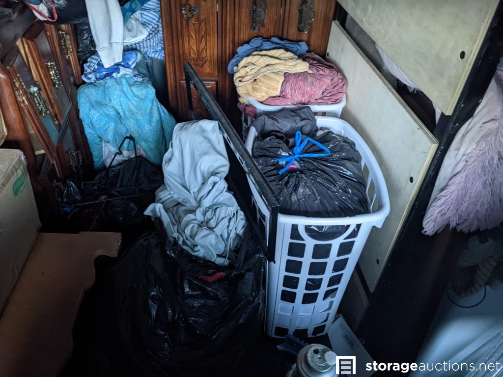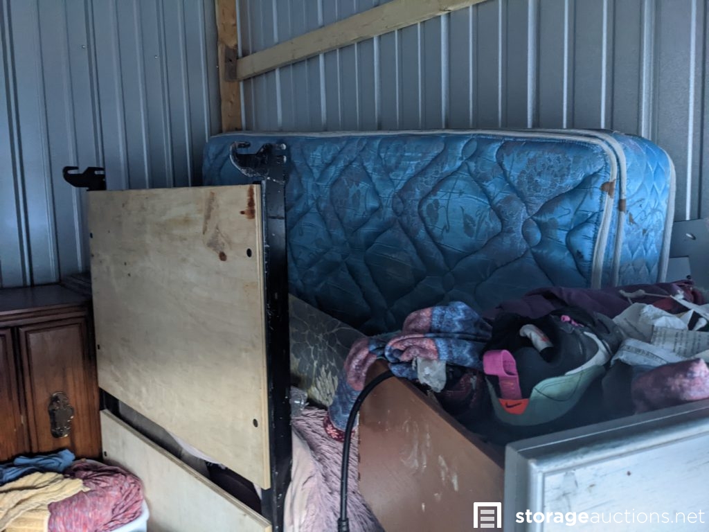 Bedroom set , fridge, tons of bags with clothes, mattress, speakers, entertainment center, mics household items, tag#7247902