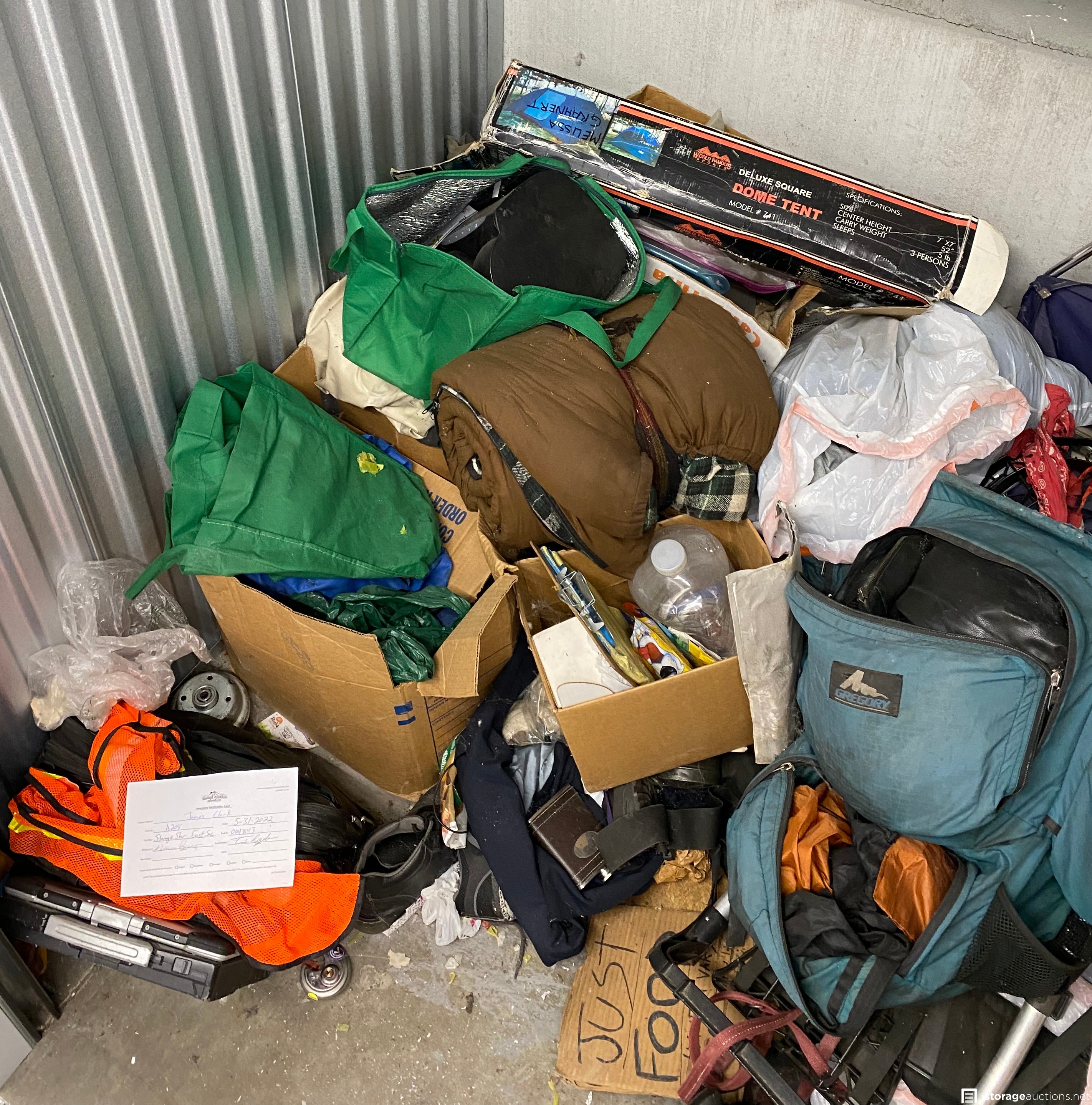 Items included but limited to tent, sleeping bag, boxes, clothing, bags.