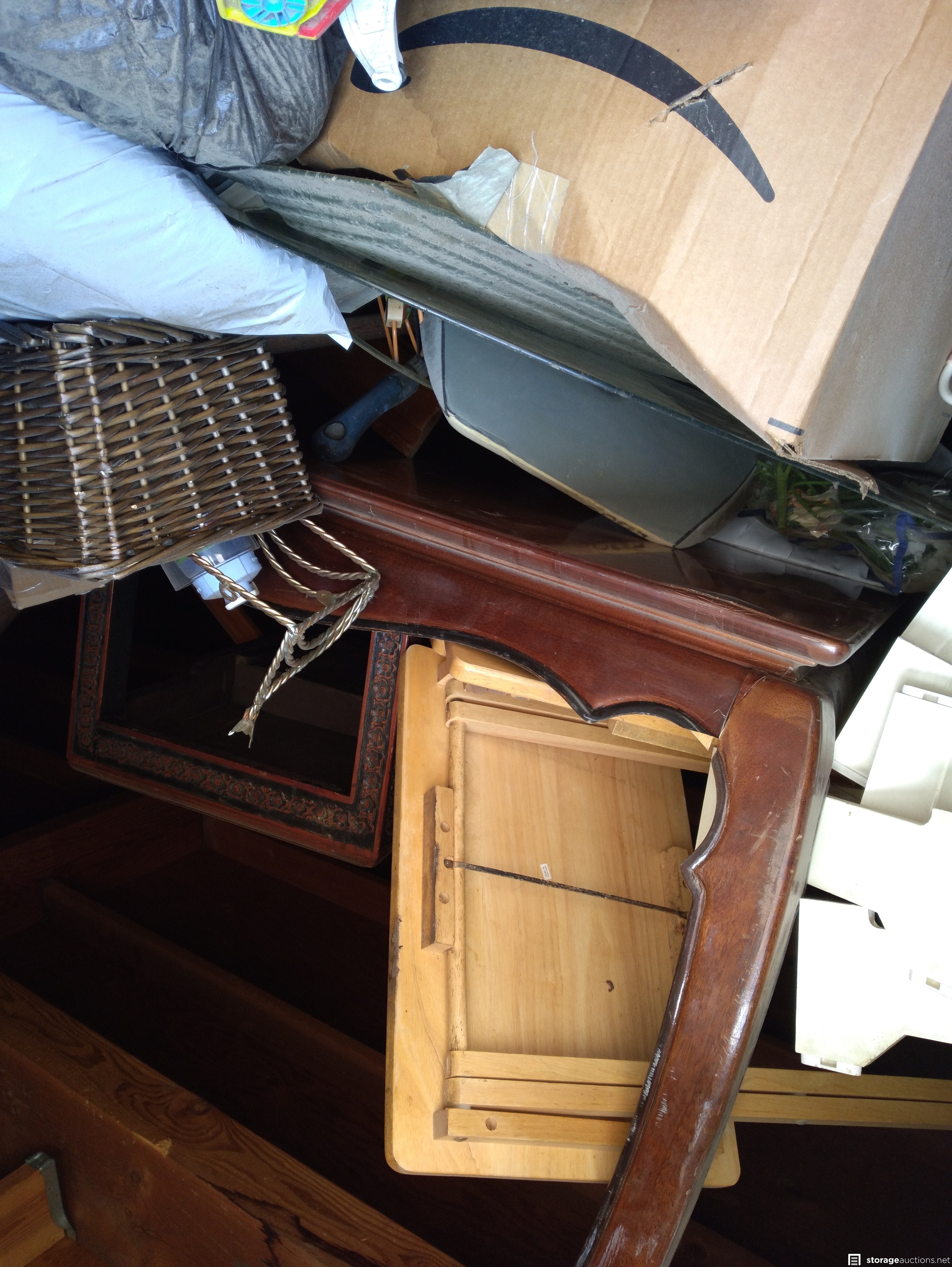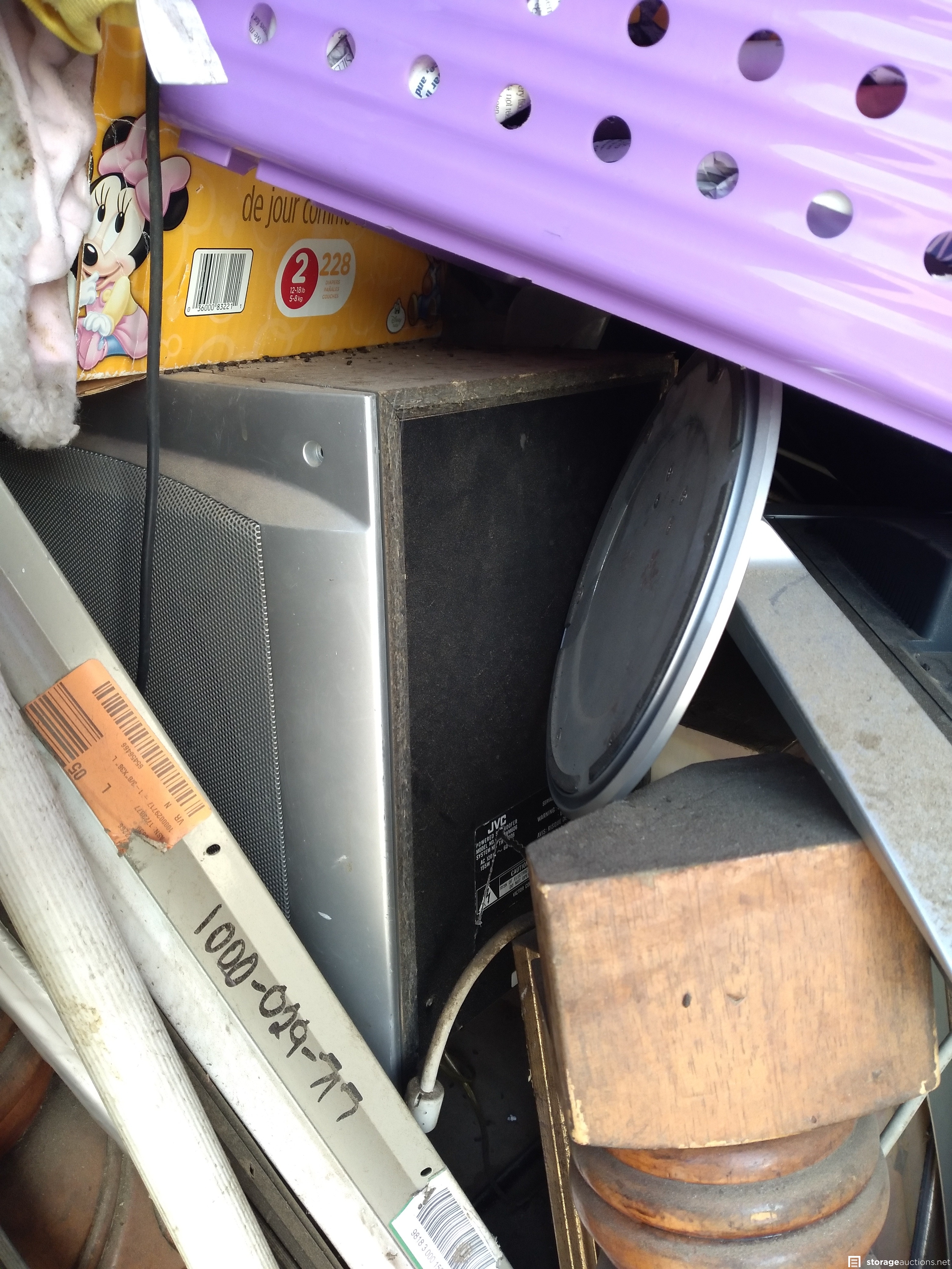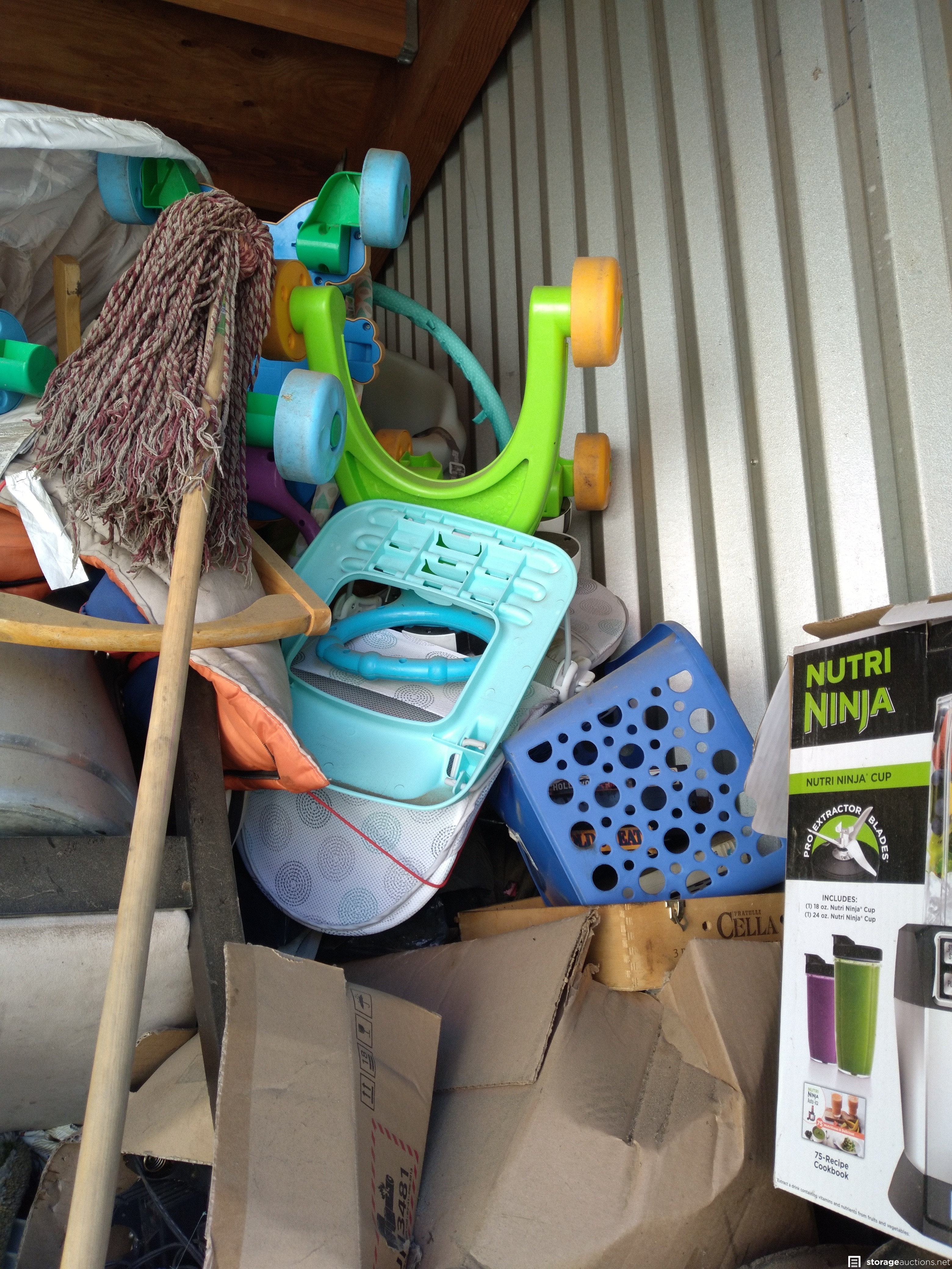 LIVING ROOM COUCHS/CHAIRS (ALL APPEAR TO BE MATCHING SET) , MULTIPLE TABLES (SMALL, MED AND LARGE) DINING TABLE W/CHAIRS, BOOKS, SUITCASES, LOTS OF KIDS TOYS, CHILD CARRIER/CARSEAT COMBO, BED FRAME, NINJA BLENDER IN BOX (NEW) , CHINA CABNET, TIRES, KEG, COMPUTER MONITER, JVC SPEAKER SET, SLEEPING BAG, SHOES, DESK, BBQ, CLOTHES, WALL FRAMED PORTRAITS, MIRRORS, MISC HOME GOODS, FAN, 2 NEW PILLOWS IN SEALED BAG, SCALE, STEP STOOL, AND MUCH MORE......UNIT ENTRANCE IS 10 FT WIDE AND 10 FT HIGH AND STACKED LIKE A BLOCK WALL. IT IS IMPOSSIBLE TO SEE OR ACCESS WHAT IS TO THE LEFT /REAR OF UNIT. TENANT INDICATED UNIT IS NOT 100% FULL AND APROX 25% OF UNIT IS EMPTY.(TENANT IS THE SAME AS C12)