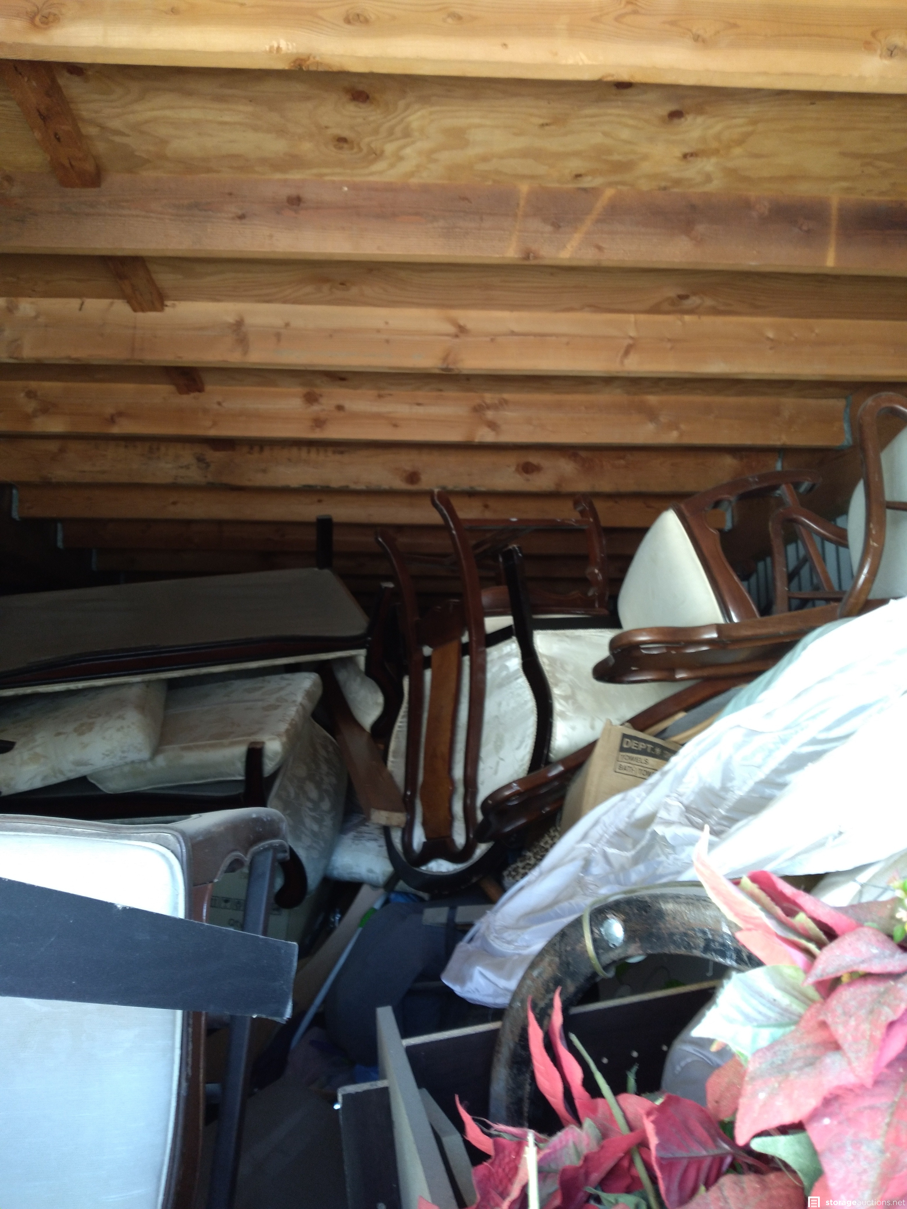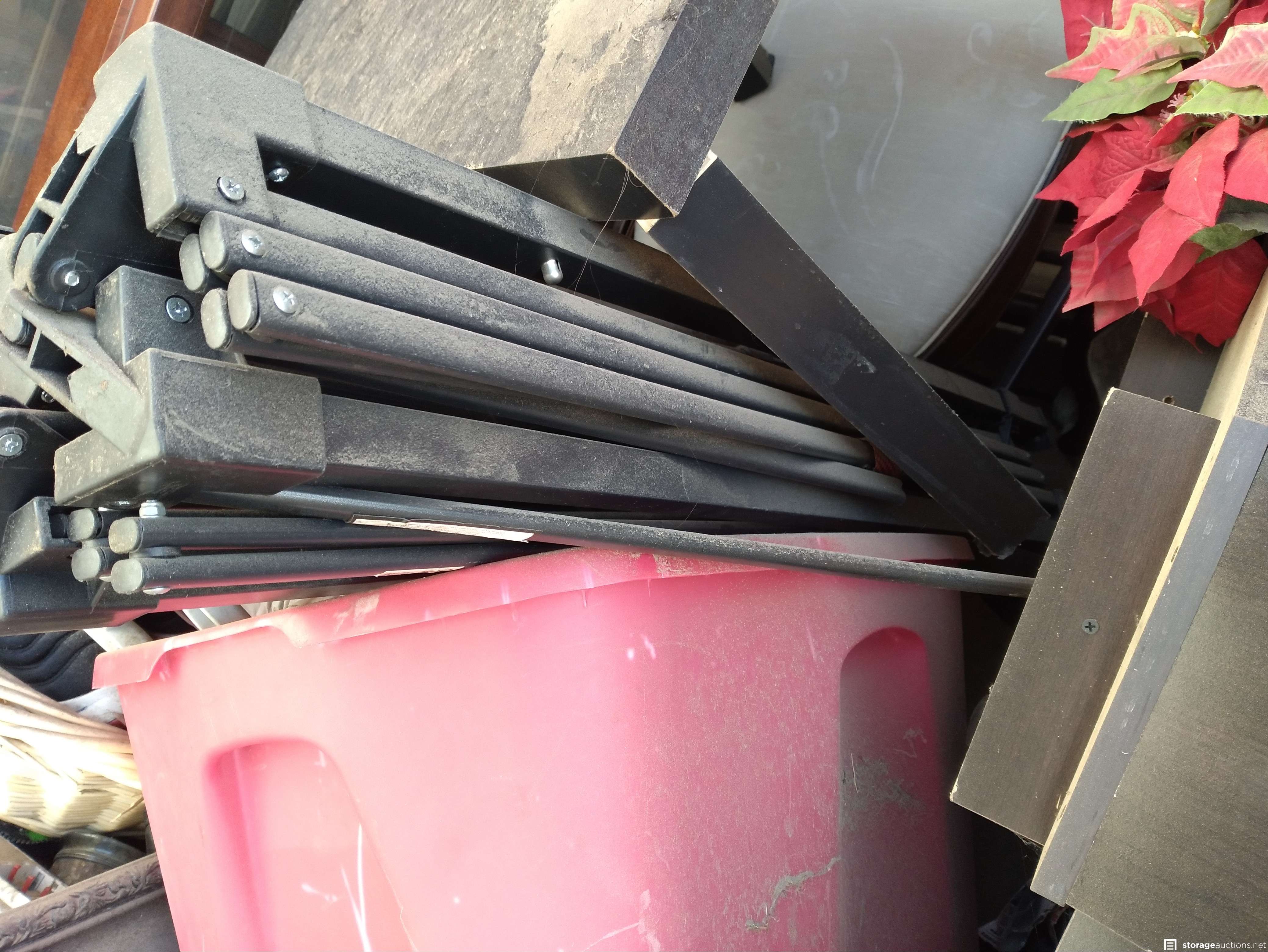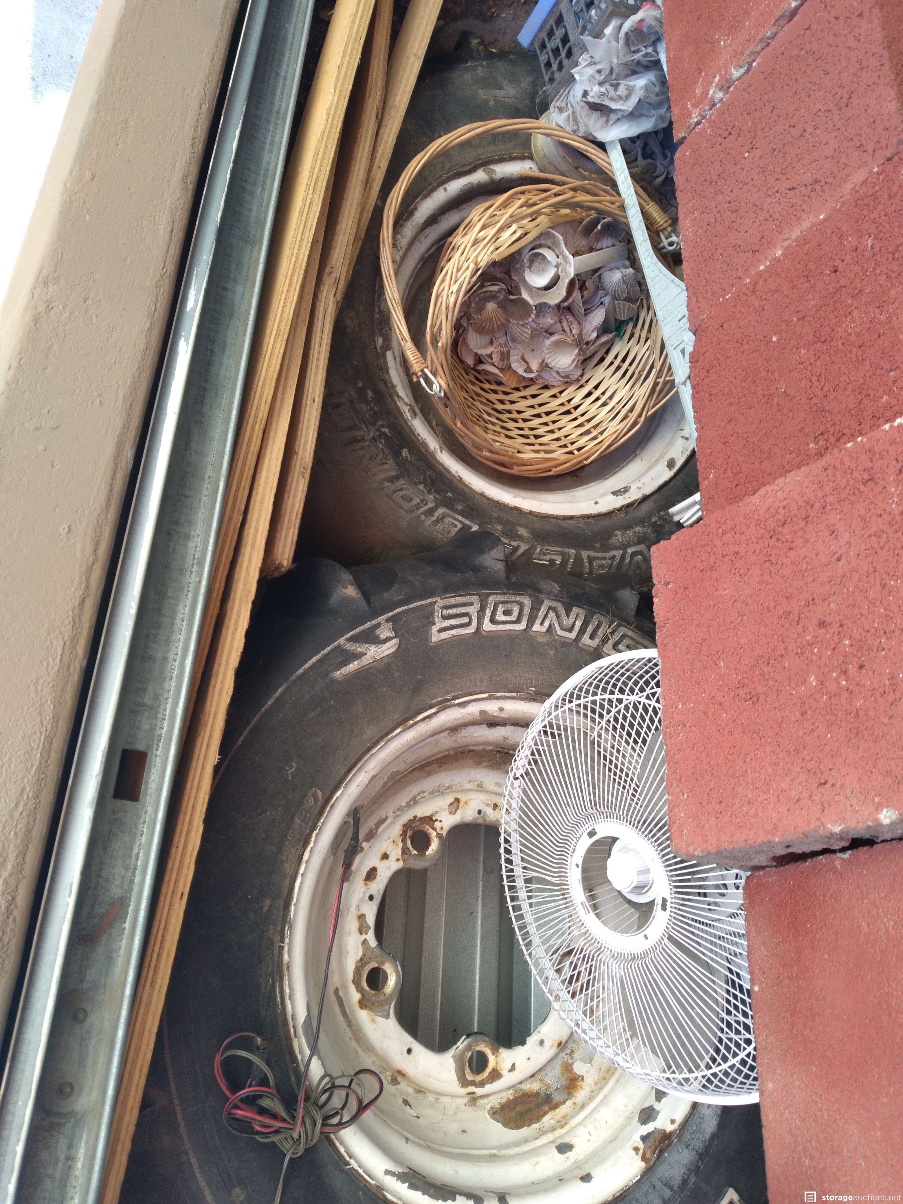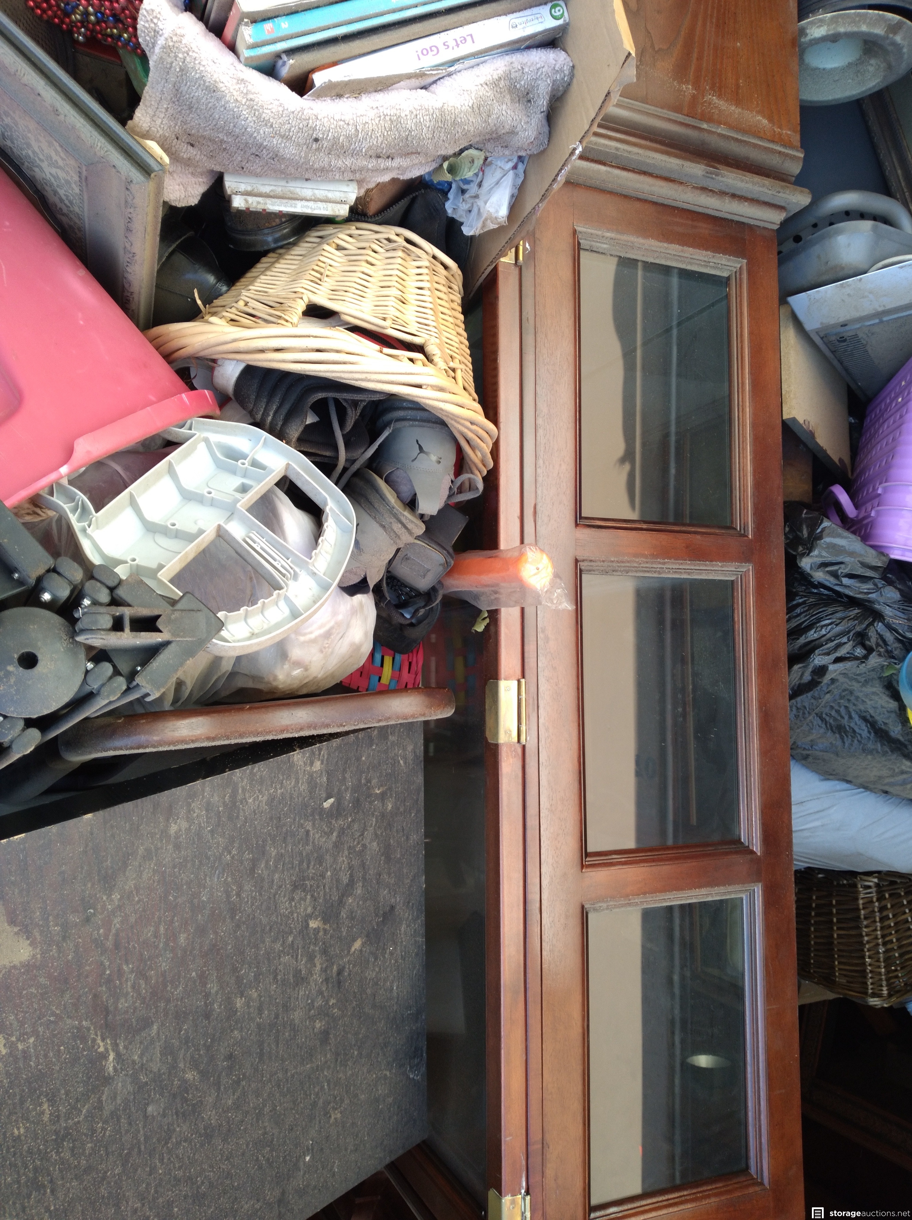 LIVING ROOM COUCHS/CHAIRS (ALL APPEAR TO BE MATCHING SET) , MULTIPLE TABLES (SMALL, MED AND LARGE) DINING TABLE W/CHAIRS, BOOKS, SUITCASES, LOTS OF KIDS TOYS, CHILD CARRIER/CARSEAT COMBO, BED FRAME, NINJA BLENDER IN BOX (NEW) , CHINA CABNET, TIRES, KEG, COMPUTER MONITER, JVC SPEAKER SET, SLEEPING BAG, SHOES, DESK, BBQ, CLOTHES, WALL FRAMED PORTRAITS, MIRRORS, MISC HOME GOODS, FAN, 2 NEW PILLOWS IN SEALED BAG, SCALE, STEP STOOL, AND MUCH MORE......UNIT ENTRANCE IS 10 FT WIDE AND 10 FT HIGH AND STACKED LIKE A BLOCK WALL. IT IS IMPOSSIBLE TO SEE OR ACCESS WHAT IS TO THE LEFT /REAR OF UNIT. TENANT INDICATED UNIT IS NOT 100% FULL AND APROX 25% OF UNIT IS EMPTY.(TENANT IS THE SAME AS C12)