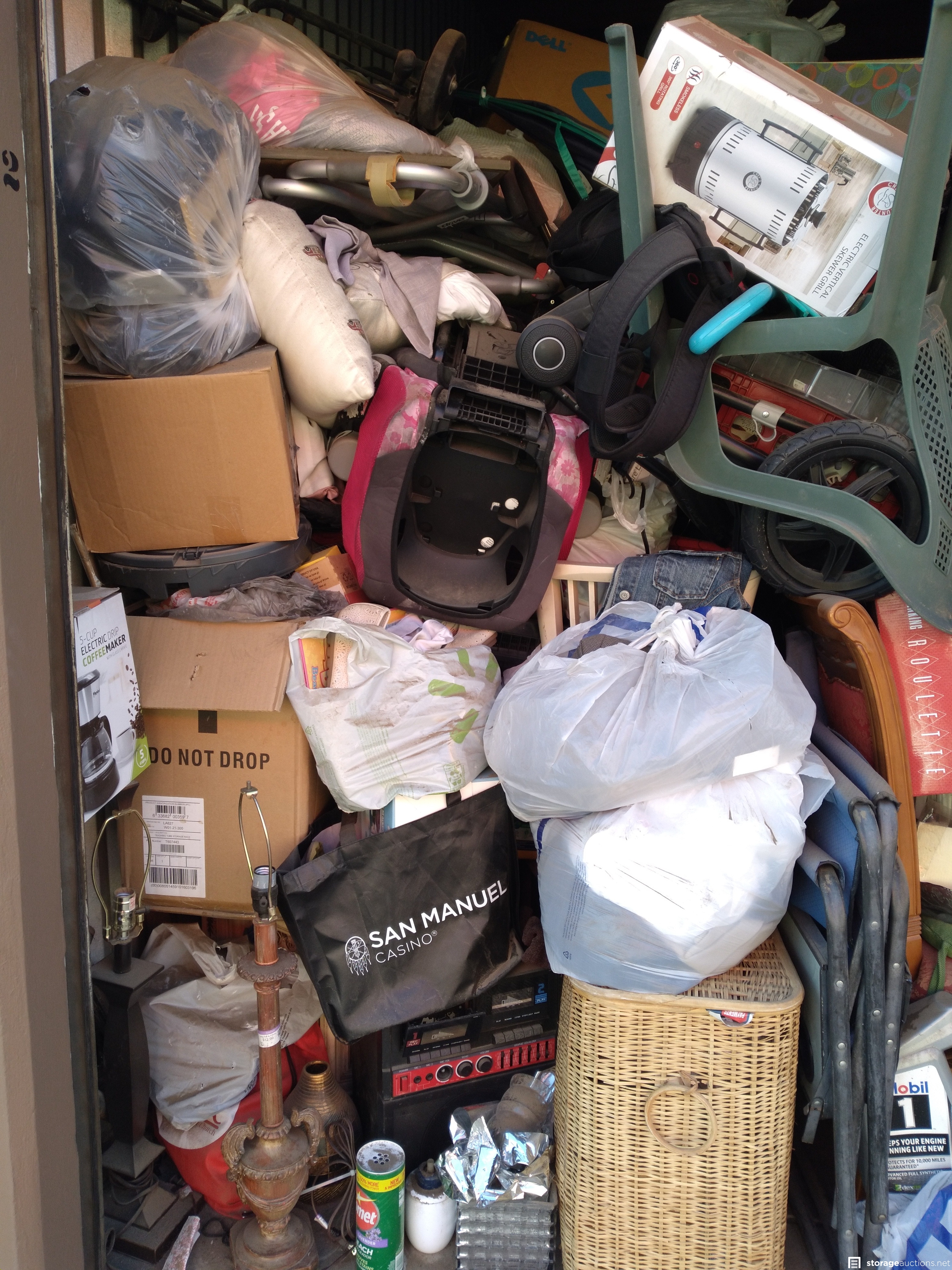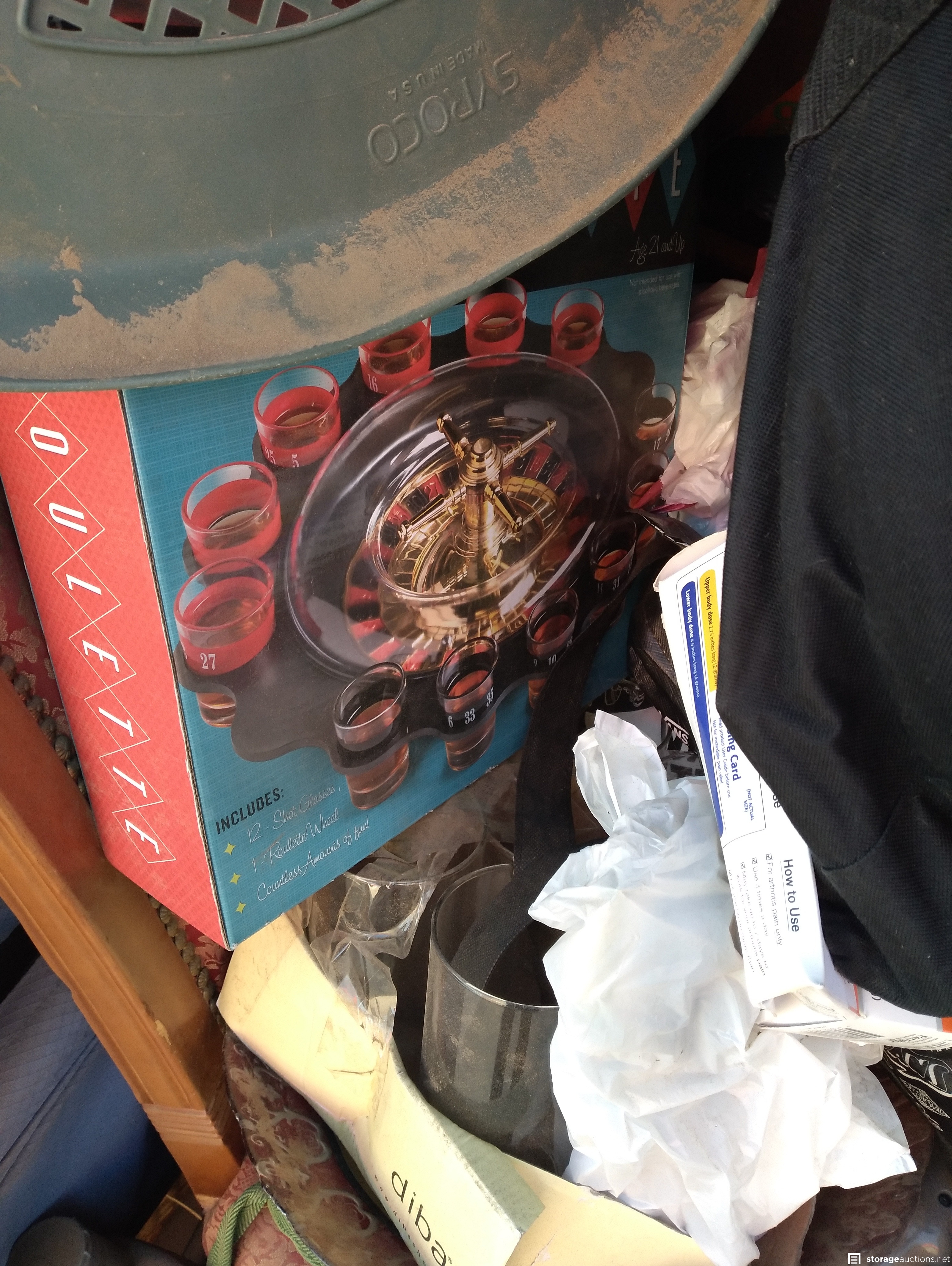 CROCKPOT , 2 STROLLERS, DUEL CASETTE PLAYER W/ATTACHED SPEAKER BOX, DINING TABLE CHAIRS, WATER SKI, CAMPING CHAIRS, LUGGAGE, LAMPS, MOBILITY CHAIR, BLUETOOTH BLOOD PRESSURE MONITER , HELLS KITCHEN COOKWARE , ROULETTE SHOT GAME, KIDS POTTY SEAT, ELECTRIC VERTICAL SKEWER GRILL, CHINA CABNET, GLASSWARE, CUPS, DISHES, CAR SEAT, PATIO CHAIRS, SPEAKERS, KIDS SCOOTER, PINK BATTERY POWERED 2 SEAT KIDS CAR, BEAN BAG. N O T E : ITEMS LISTED ARE IN THE FRONT AND CAN BE EASILY IDENTIFIED. THE MIDDLE AND REAR OF UNIT APPEAR TO BE PACKED SIMILAR TO THE FRONT. PHOTOS OF THE MIDDLE AND FRONT WERE NOT PROVIDED DUE TO LACK OF ACCESSABILITY. I CAN CONFIRM VISUALLY THE UNIT IS 100% FULL TOP TO BOTTOM .