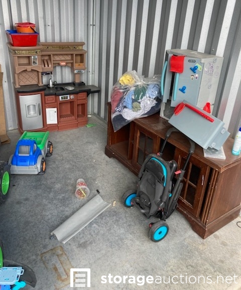 Additional Terms: Buyer has 72 hours from close of Auction to clean out and pay for unit, dumpster on-site is NOT for buyer use. Facility Provides Use of 19mm Cylinder Lock with Cleaning Deposit. Gate Access Hours are 6am-12am, buyer may NOT be on site before/after access hours. Must provide valid ID for Completion of Sale