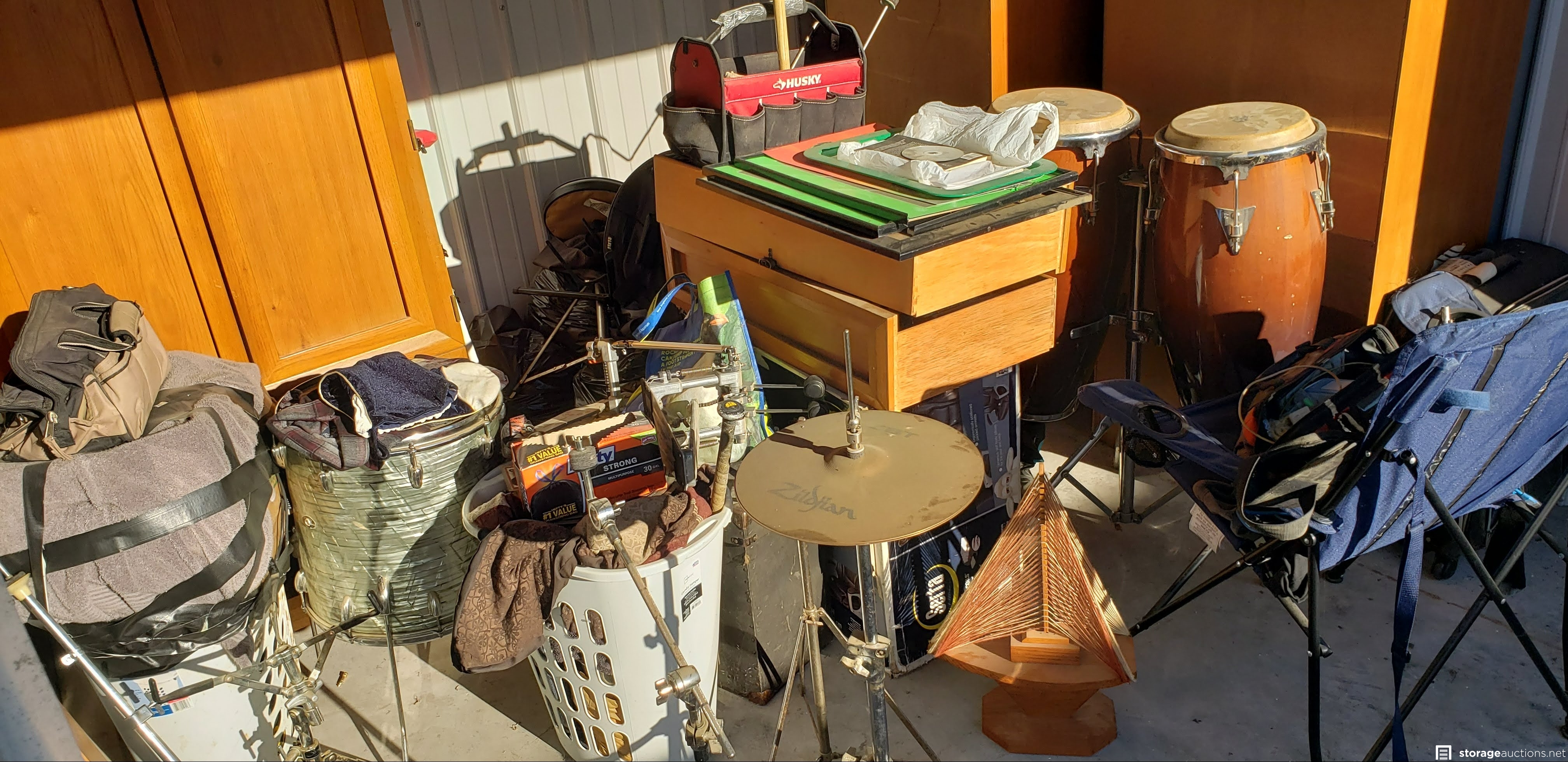 drums, cabinets, shop vac