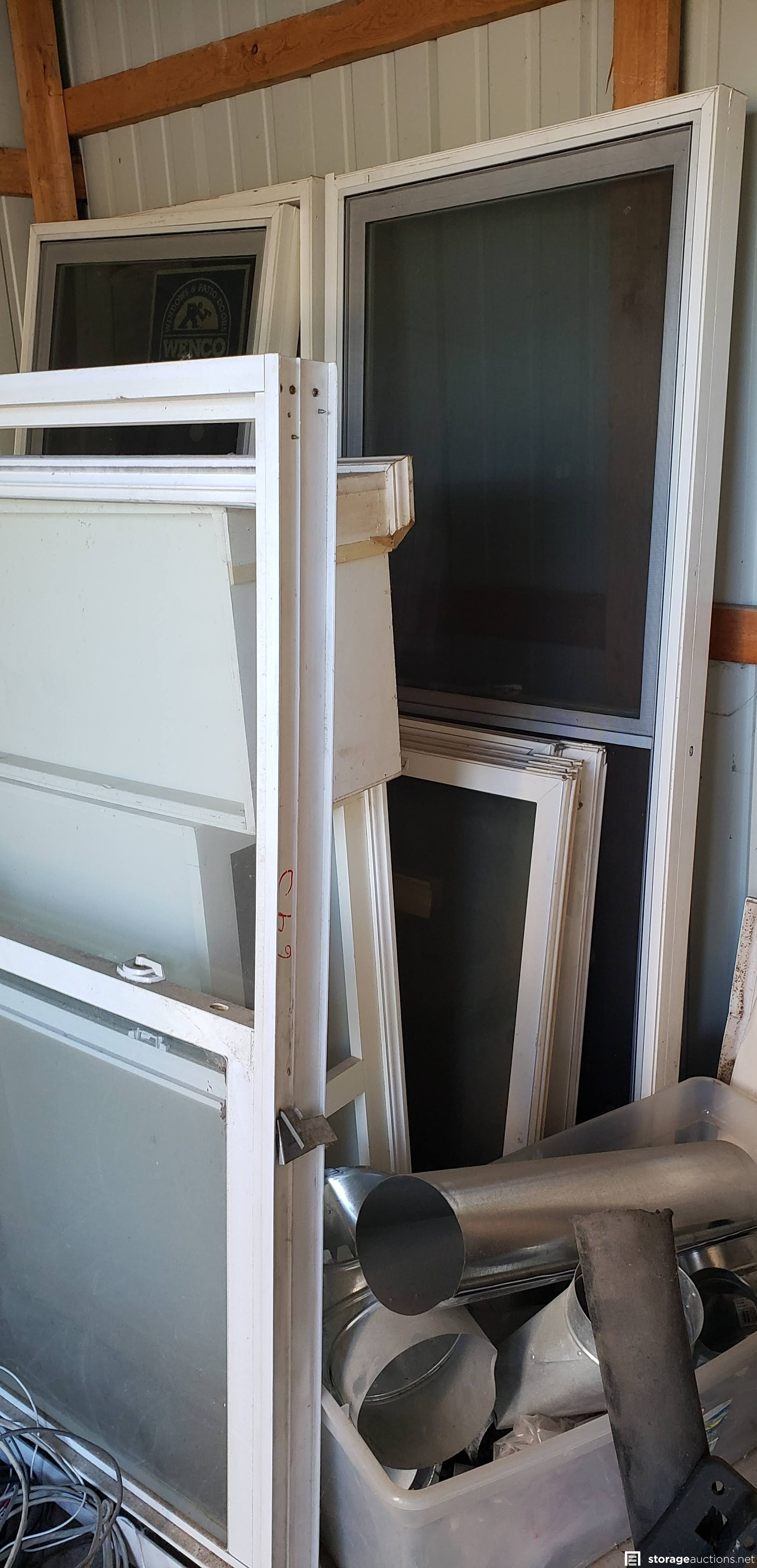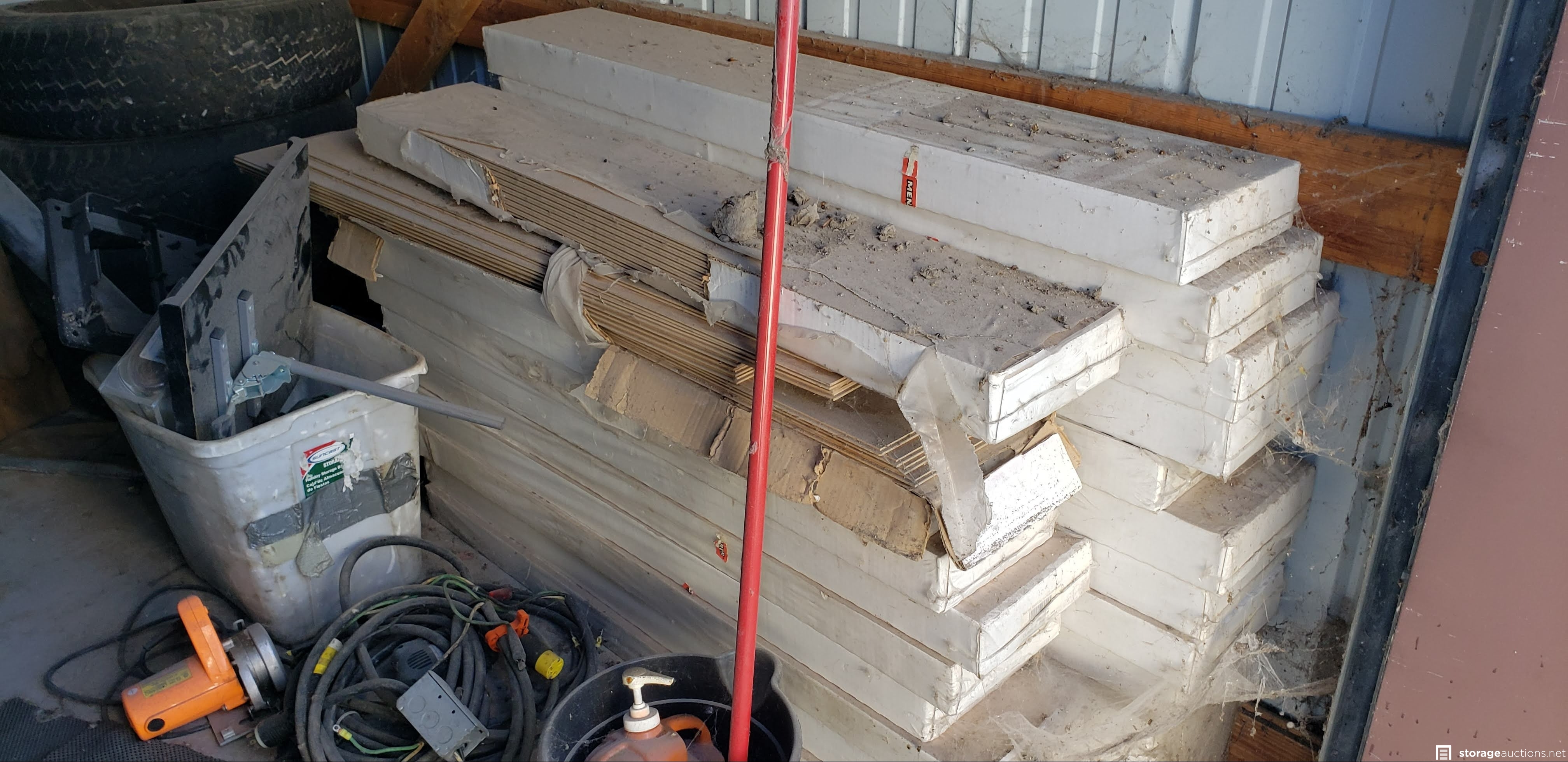 laminate wood flooring, vinyl windows, cabinets, misc tools
