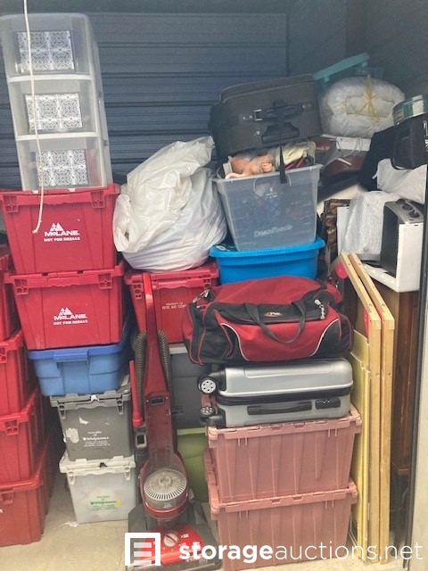 The contents of the unit visibly include but is not limited to: Totes, Vacuums, chair, bags, boxes, toys, heater, luggage, play house.