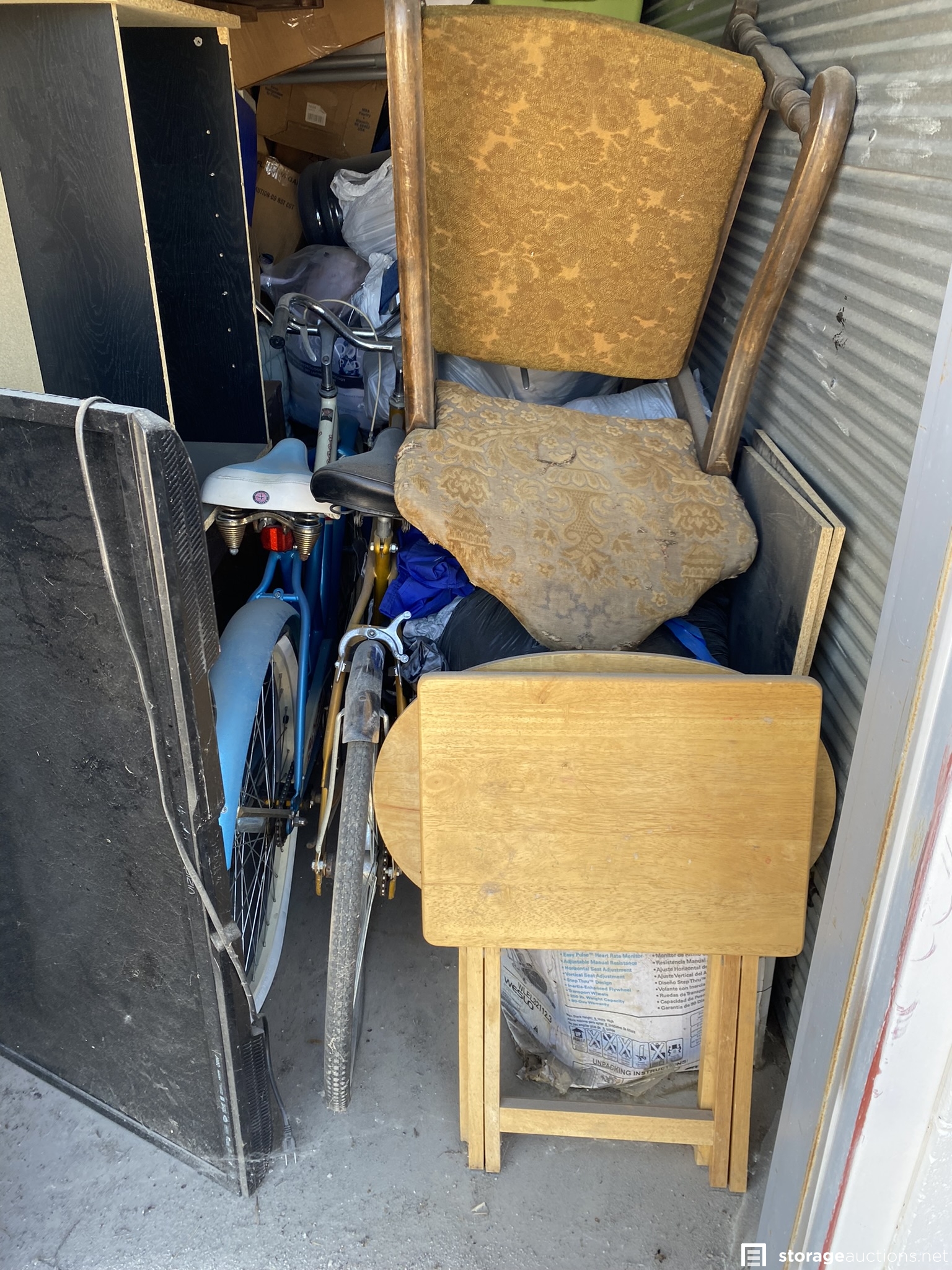 Vizio TV, 2 bikes, some furniture, totes, sleeping bag, lawn chairs and various household goods.
