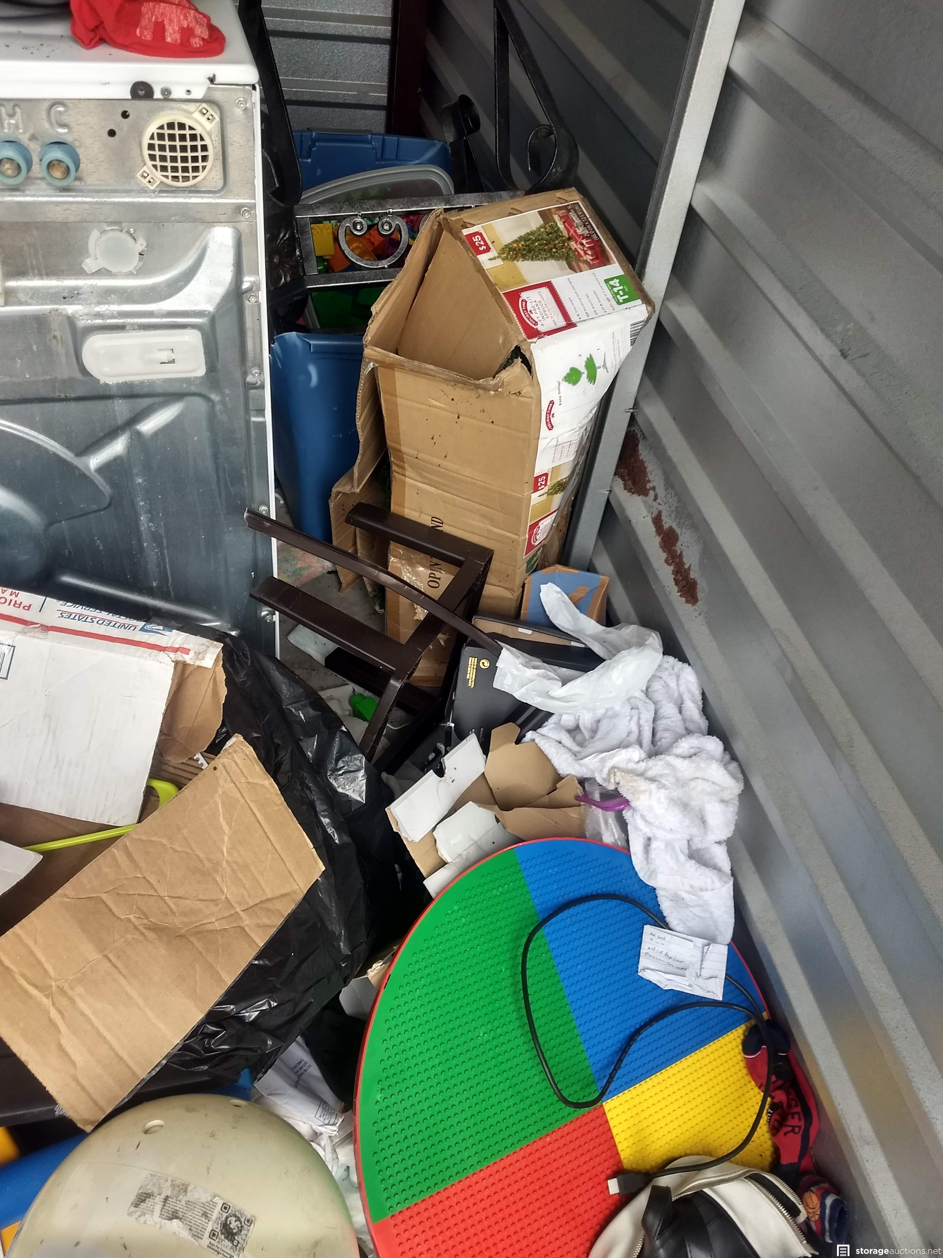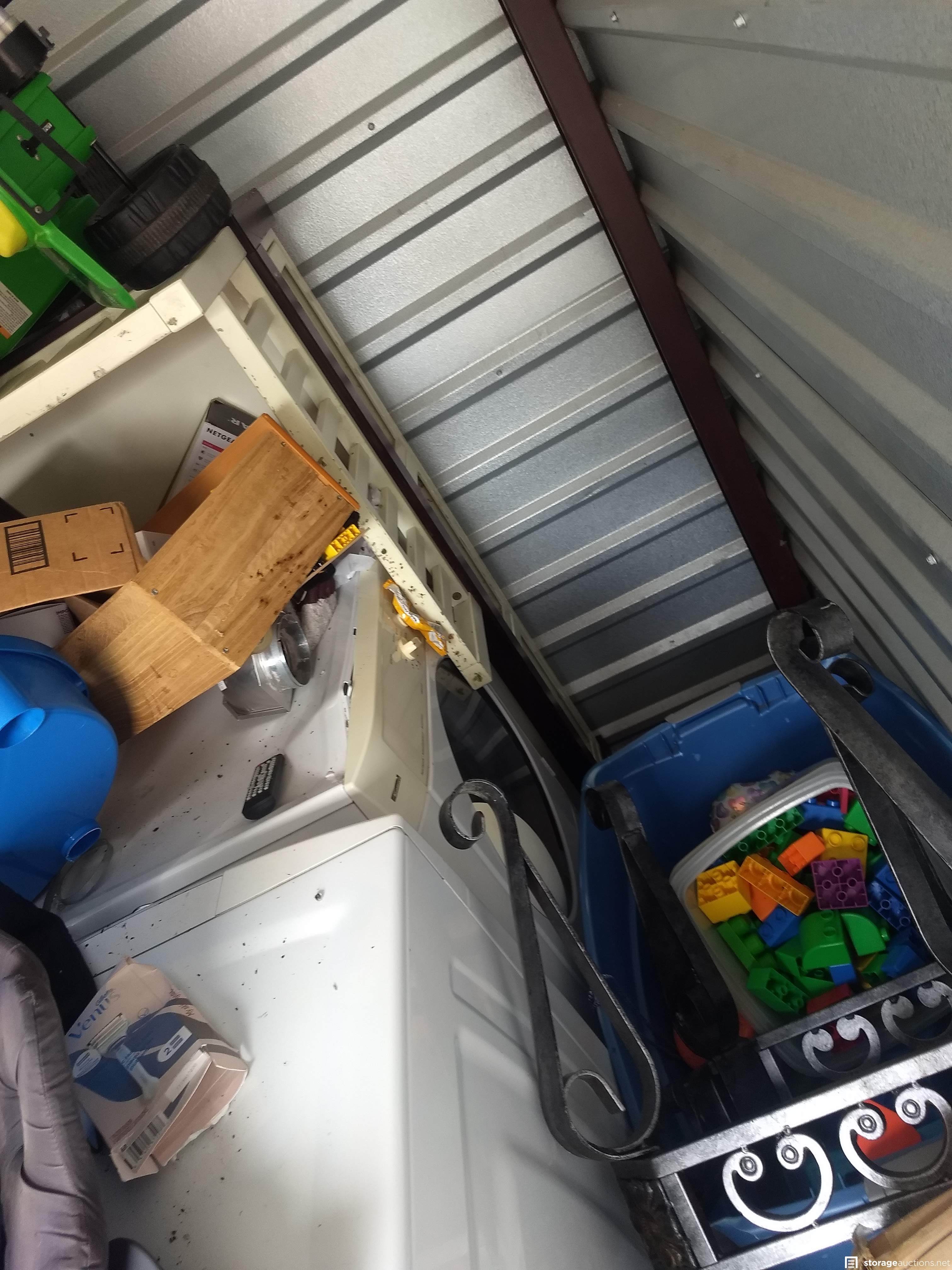 Washer, Dryer, crib/toddler bed, twin mattress, Toys, Clothes, Football helmet, Football pads, Kids battery scooter, Plastic drawers, Boxes, Bags