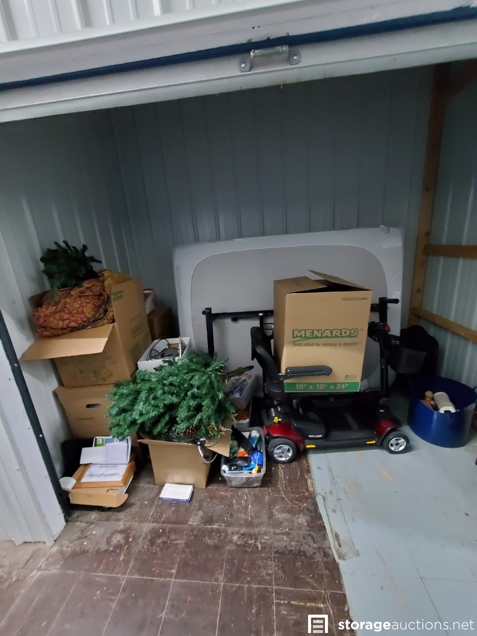 Boxes, totes, misc items, scooter, bed, decorations, totes, luggage, etc.