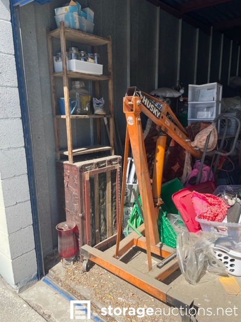 Tool box, engine hoist, mini fridge, chest, wall art, wine rack, trunk, skateboard, CB radio, misc.