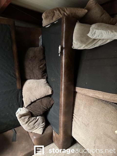 THIS UNIT HAS 3 BED FRAMES WITH HEADBOARDS AND A 2 PIECE COUCH WITH CUSHIONS