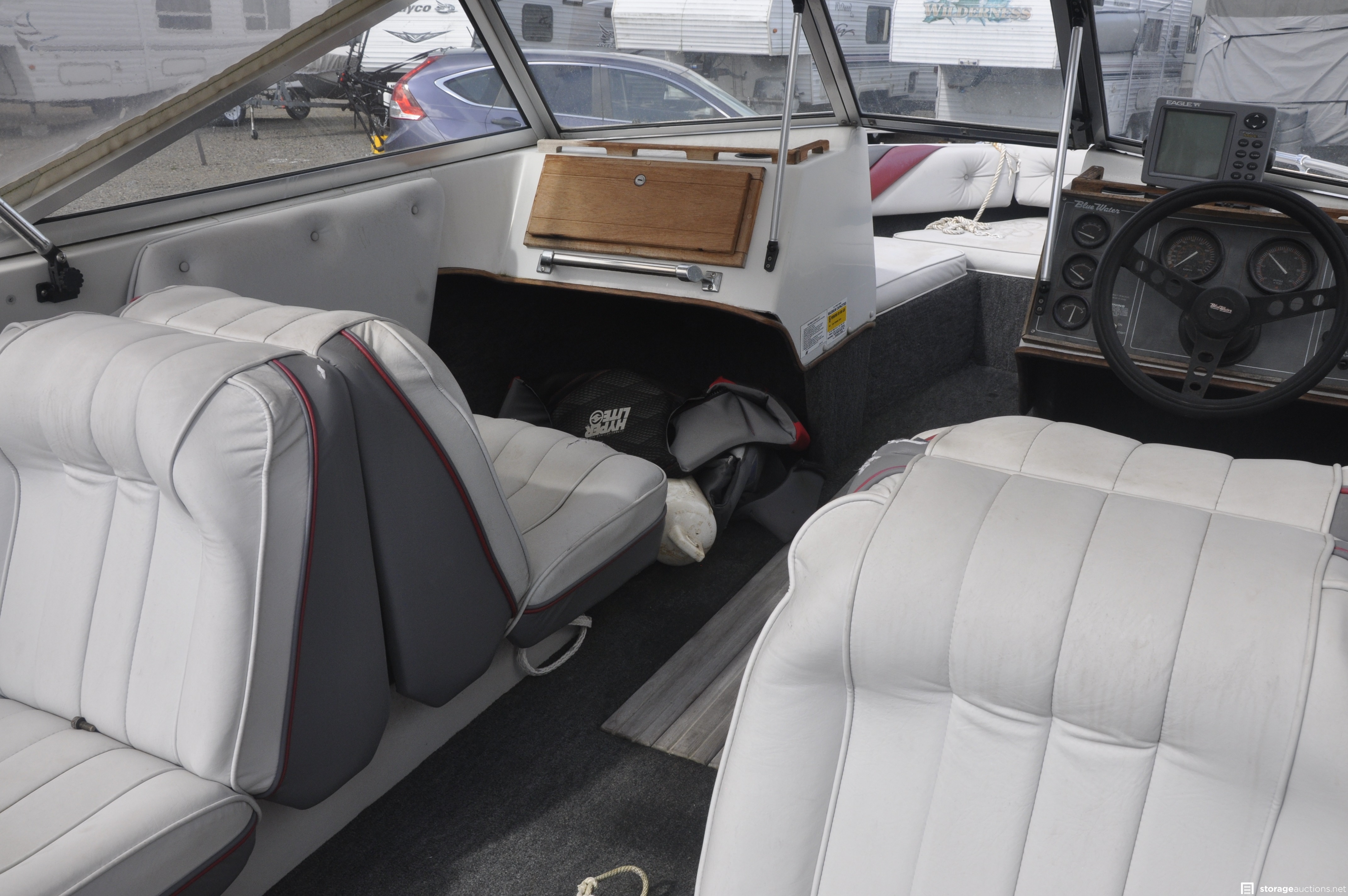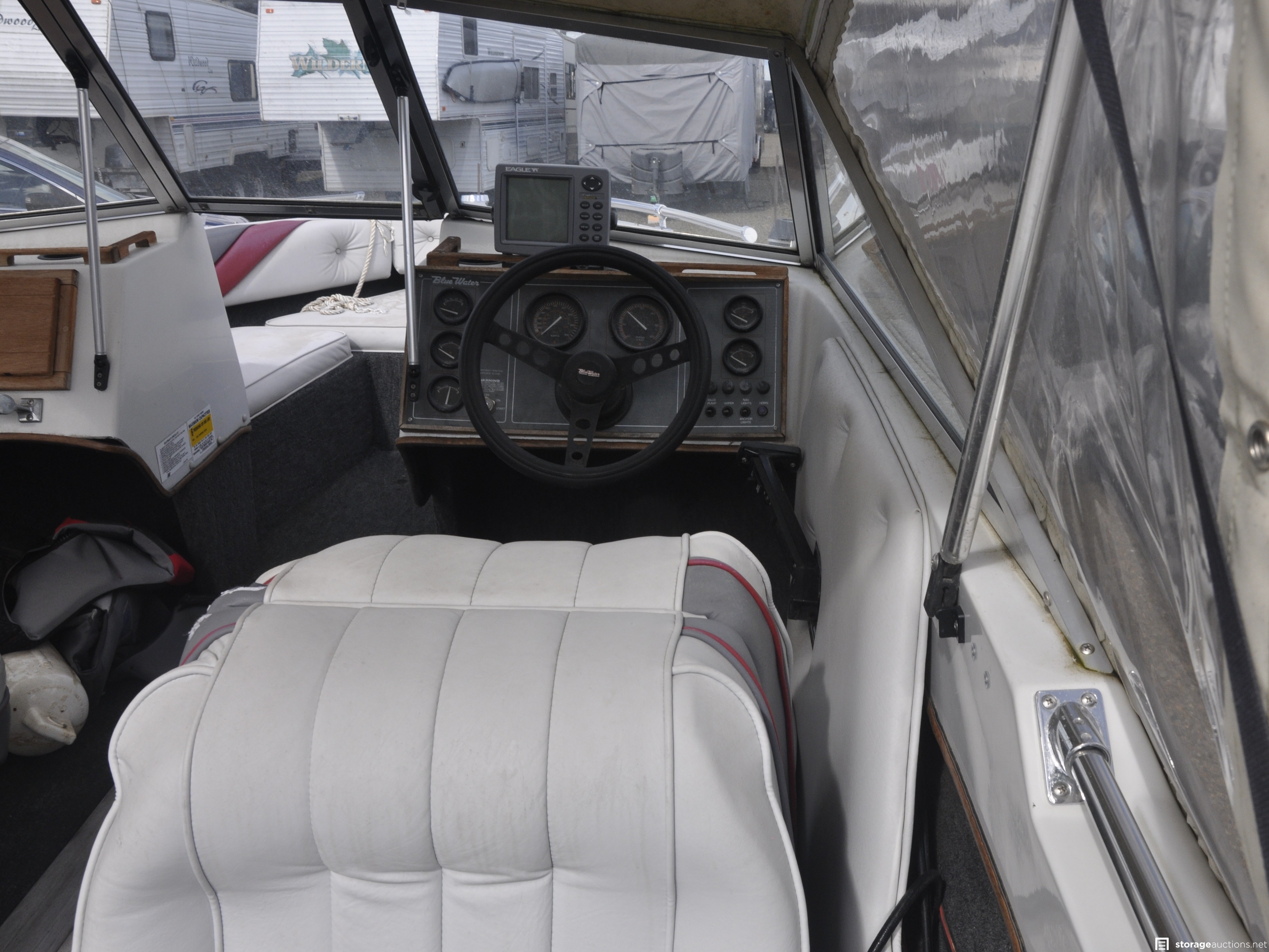 Item appears to be a Blue Water Boat with an Alpha One Motor , Year 1988, 26ft long.