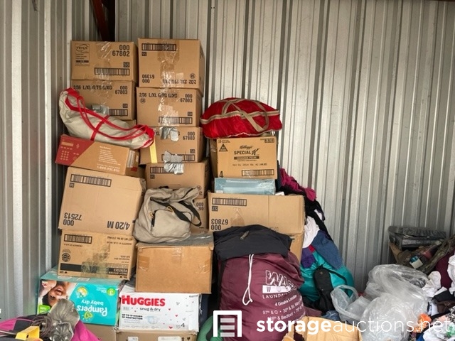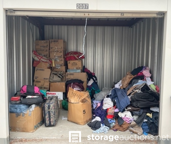 THIS UNIT HAS LOTS OF CLOTHES, SUITCASES, BOXES, AND MAYBE SOME HIDDEN TREASURES!